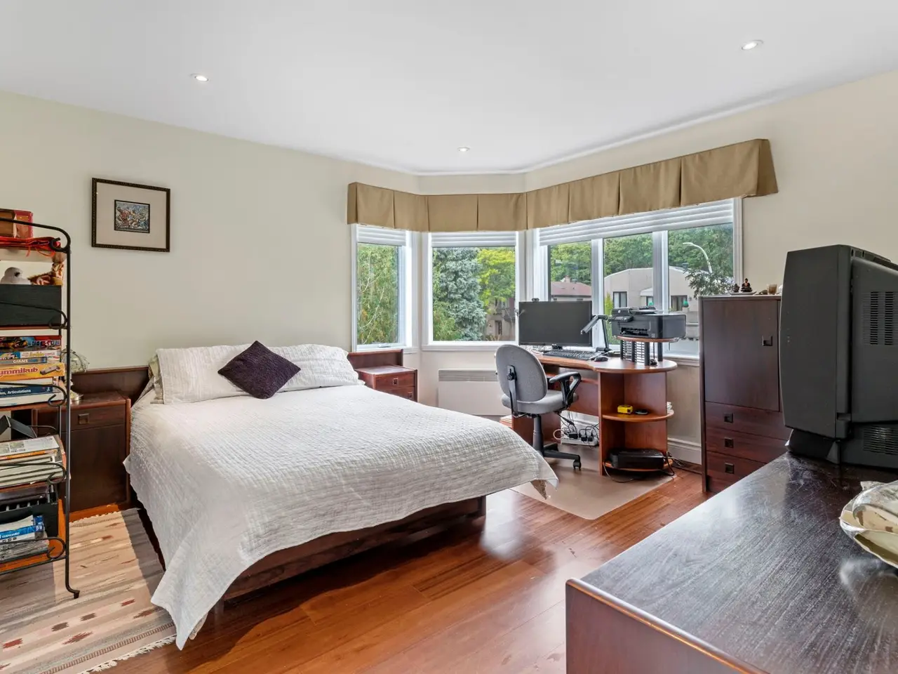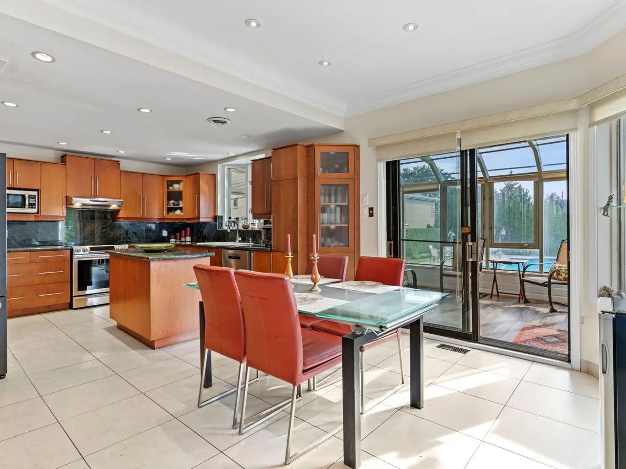 First time on the market in nearly 40 years, spacious 4+1 bedroom home, perfectly situated on a sprawling south-west facing 12,150 sq. ft. double lot. This property boasts a classic kitchen that seamlessly flows into a sun-lit 3-season solarium, perfect for relaxing and entertaining. The backyard is your very own private oasis with an oversized inground 43'x16' saltwater pool with an outdoor shower, bordered by mature hedges for complete privacy. Enjoy a fully finished basement with an additional bedroom, bathroom and wine cellar. Includes an energy-efficient geothermal system ensuring exceptional comfort throughout the year. Don't delay!