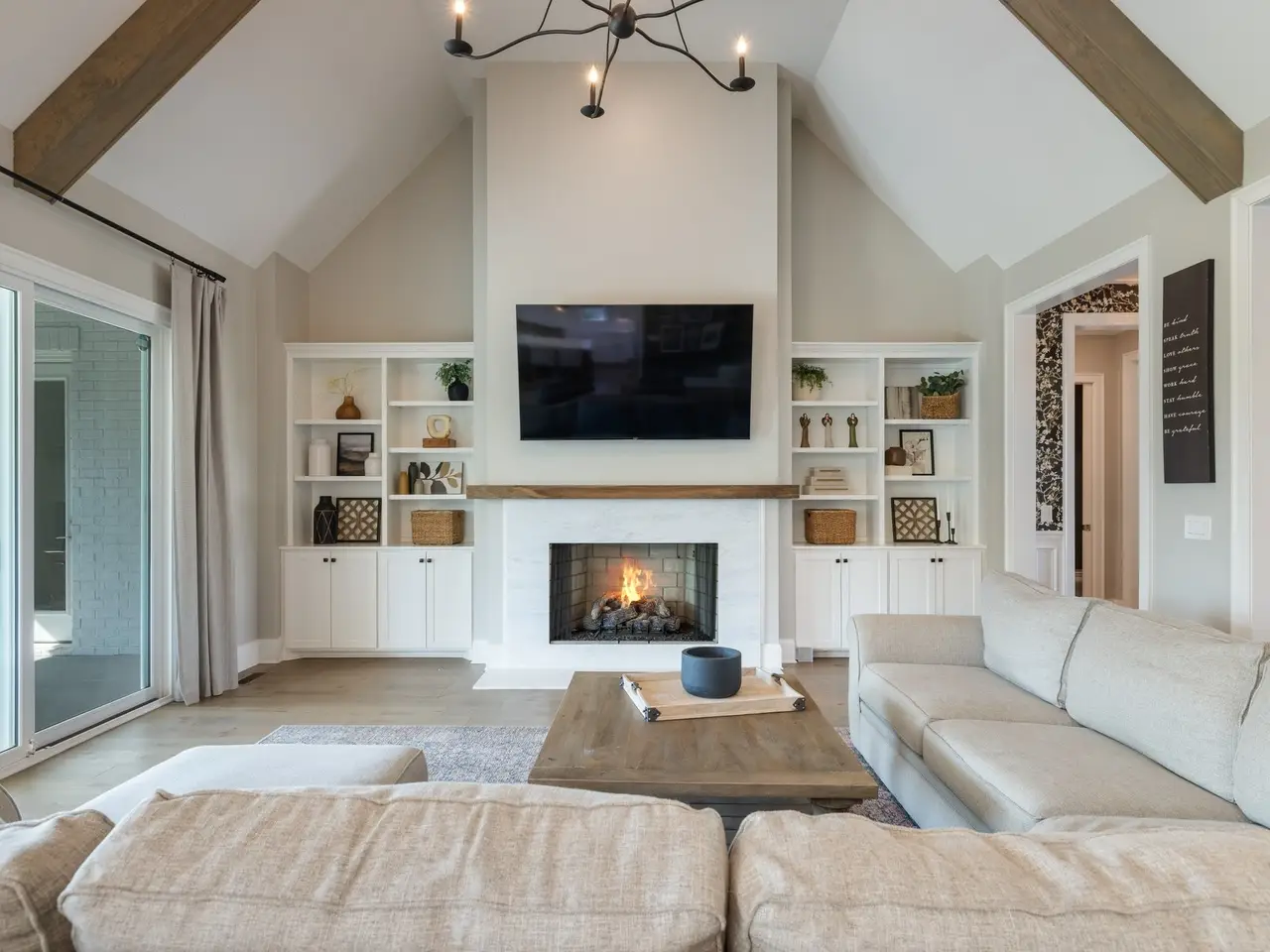 • Exposed wood beams