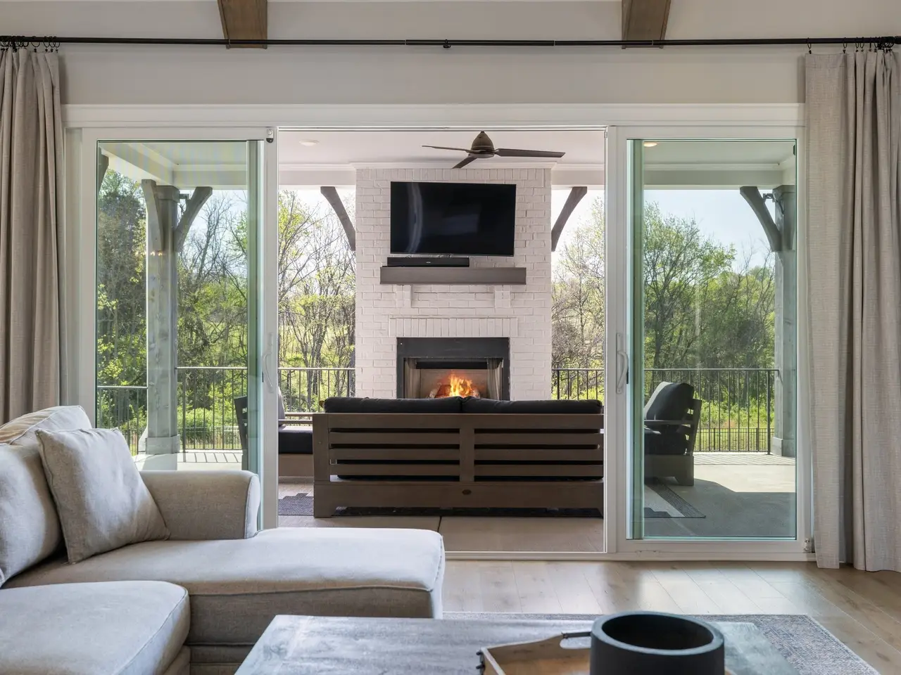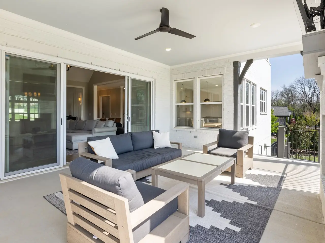• Covered rear porch with fireplace