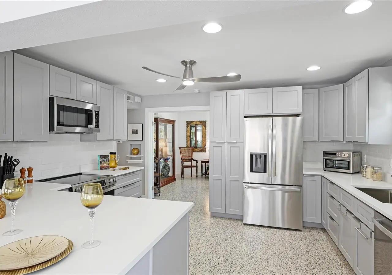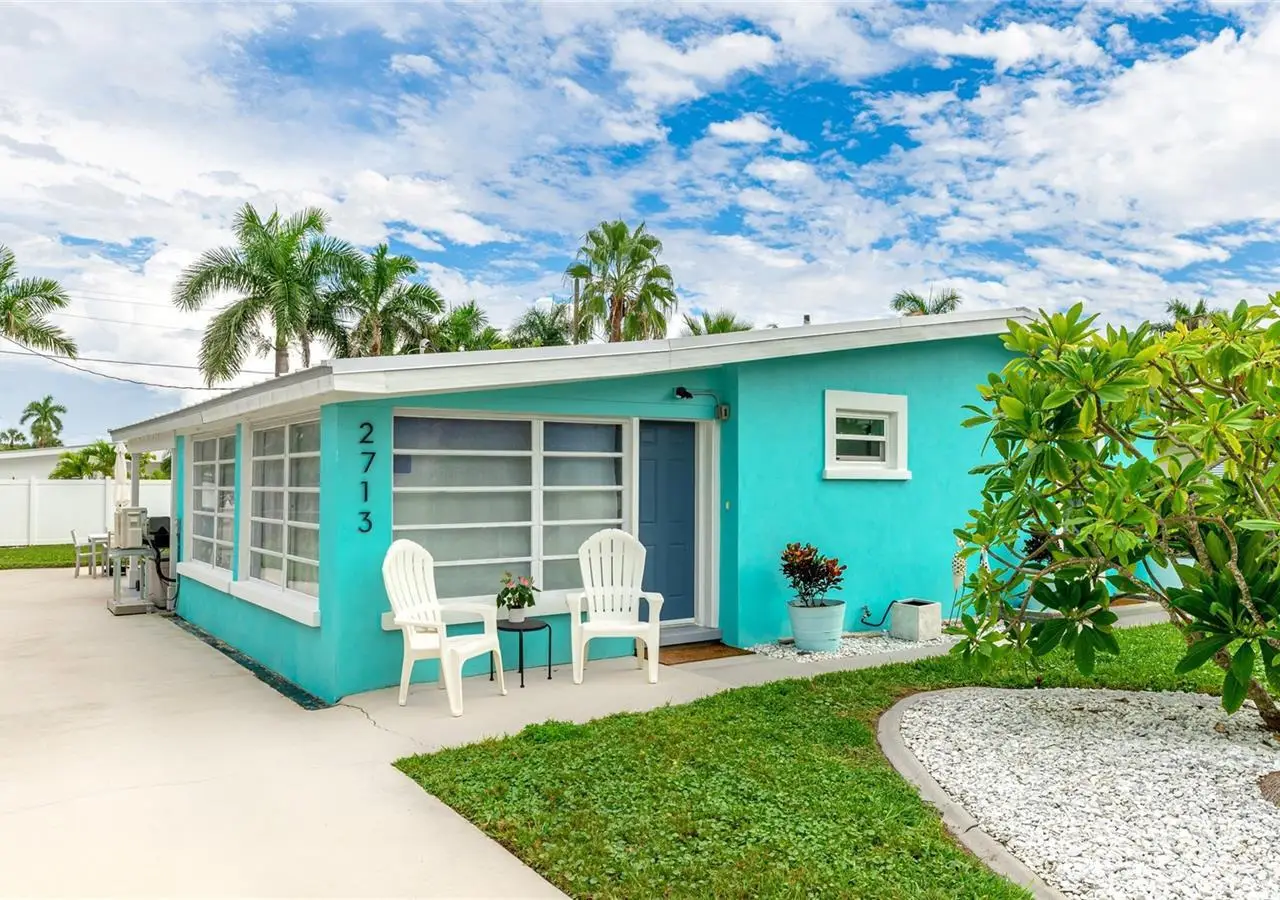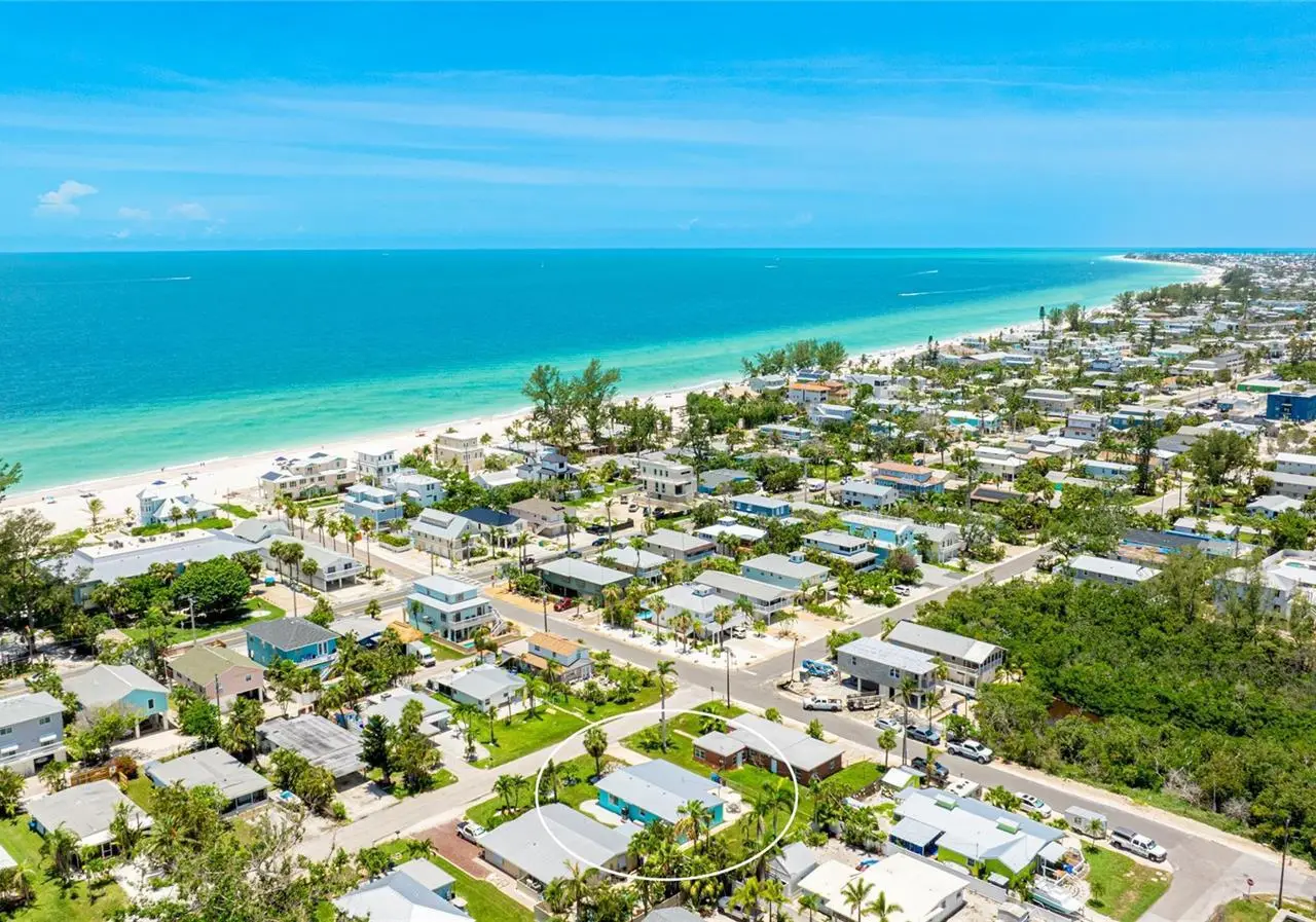 CUSTOM QUALITY HOME REMODEL: Welcome to Turquoise Beach Bungalow - your perfect slice of island life. Completely reimagined inside and out in 2024-2025, this vibrant coastal retreat combines classic island charm with modern comfort and craftsmanship. Every detail has been thoughtfully considered, from the new seamless metal roof and fresh stucco exterior to the all-new appliances, three new AC units, and a tankless water heater. Inside, the home offers timeless terrazzo floors and an expanded layout featuring a new approximately 350-square-foot primary suite with a beautifully appointed ensuite bath and both indoor and outdoor showers - ideal for rinsing off after a day at the beach or enjoying a private open-air experience. The newly remodeled kitchen is a showpiece with quartz countertops, stainless steel appliances, and abundant storage, flowing easily between the family room and a flexible third bedroom currently used as a second living area. The primary bedroom has high quality epoxy floors. The laundry room is conveniently located inside but right off the patio for coming in from the beach. Outdoors, the covered patio invites relaxation or entertaining, and the oversized backyard provides plenty of space to create an expansive pool and lounging area perfect for soaking up the island sunshine. Situated in a peaceful neighborhood just a short stroll from the Gulf beaches and Intracoastal Waterway, this home offers both serenity and convenience. Centrally located between the island's two bridges, you'll enjoy easy access to local shops, dining, and island attractions. An added benefit of this location is the ability to lease boat slips just a block away on Avenue B through the City of Holmes Beach. Being sold turnkey furnished and ready for you to move in and start living your island dream. Schedule your private showing today.