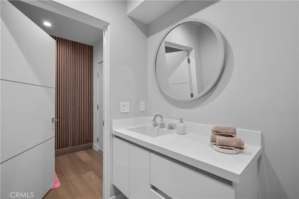 Elevate your everyday experience with this brilliantly designed living space that blends luxury with sleek functionality. Every inch of this home has been thoughtfully designed with custom, European-inspired millwork and architectural wall treatments that balance modern minimalism with depth and texture. The layout is equally impressive, starting with an unmatched entertainment level spanning forty-four feet of soothing ambiance from softly sunlit windows and a statement-making backdrop of white oak slats that adds organic depth to its modern minimalist vibe. An open dining space has room for your biggest dinner gatherings. It flows to a pristine kitchen with European-style slab cabinetry finished in luminescent lacquer for an ultra-modern aesthetic and clean lines, yet also functional with easy cleaning and deep, soft rolling drawers with room for all your favorite chef's toys. Upstairs, you'll find an expansive primary suite and a generous walk-in closet fully outfitted with custom organizers for maximum efficiency, and a luxurious en-suite bath for maximum relaxation. A floating double vanity with a natural wood veneer enhances the airy spa-like vibe and seamless drawers, maintaining the home's minimalistic design. The freestanding oval soaking tub, set against a textured accent wall, creates a spa-worthy focal point that invites long, luxurious soaks. Downstairs, you'll find the perfectly versatile room to be reimagined to that unique space you've been dreaming of; an in-home movie-theatre room, a family fitness gym, a bowling game room with bar, or even a convenient in-home business consult, and the freedom to reimagine it as your needs evolve. The three-car garage wasn't left out of this home's noteworthy design. Featuring EV parking, two entrance options, and a full-view garage door with frosted glass panels for a natural sunlit garage-glow that you never knew you needed. Manicured privacy hedges complete the corner-lot curb appeal, making this home a perfect blend of design and comfort for an elevated lifestyle.