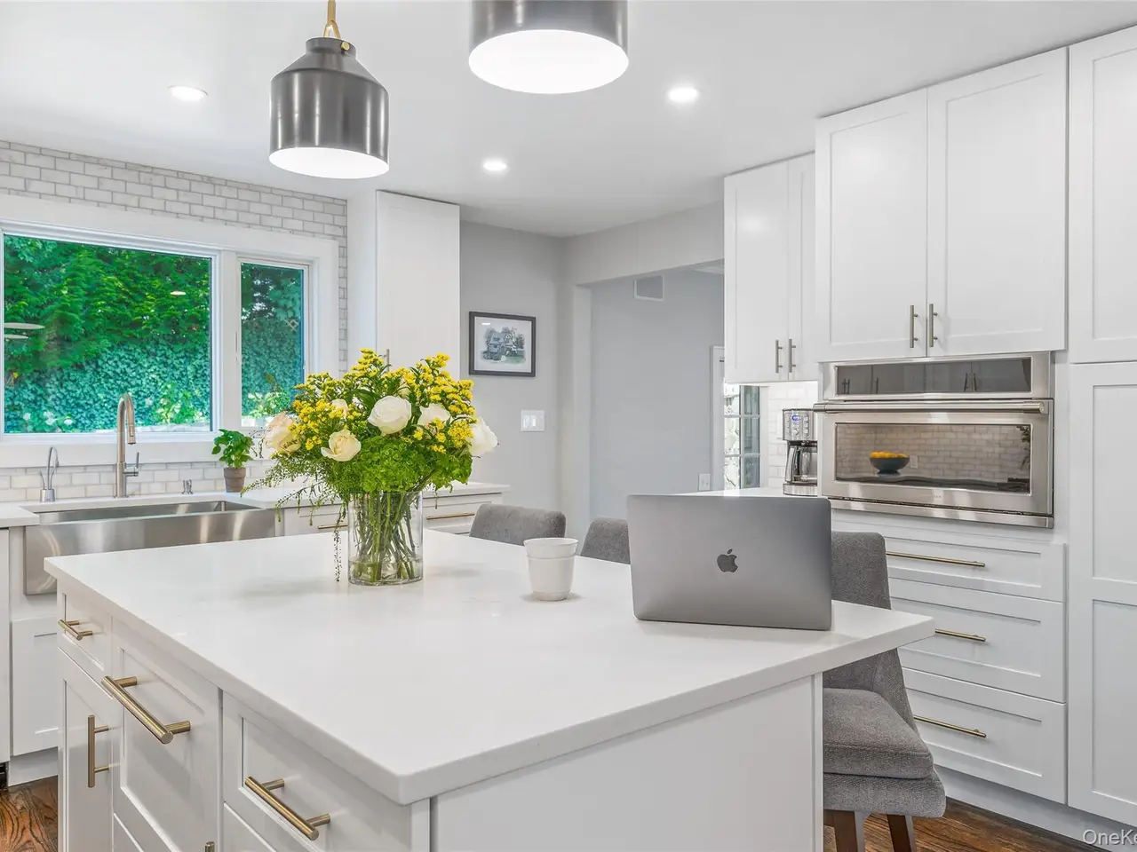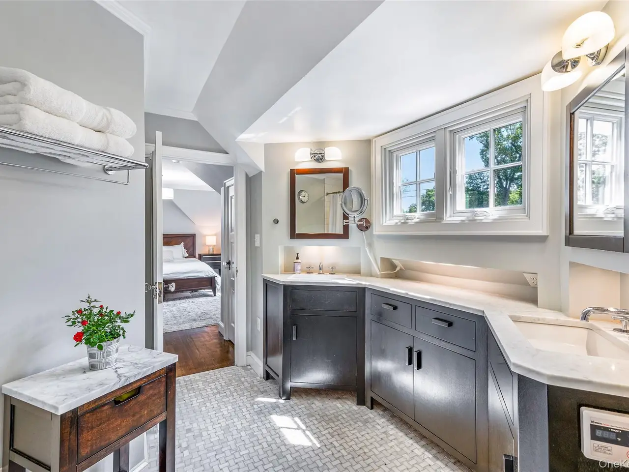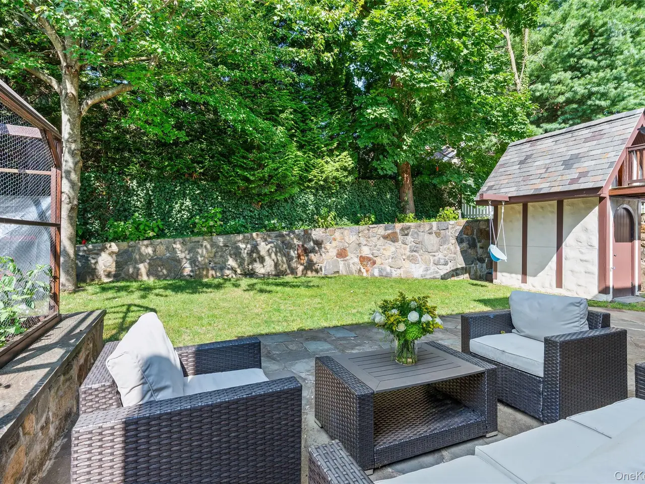 Stunning 1930s Stone Tudor in the Highly Sought-After Aubyn Manor/Hunts Woods Park area. Crafted by the renowned local builder Peter Rhynas, known for his spacious designs, exceptional millwork, and custom finishes, this bright and inviting Stone Tudor is a true masterpiece. Topped with a timeless slate roof, it beautifully blends historic charm with modern updates. Nestled on a picturesque, tree-lined street in the coveted Aubyn Manor enclave, this home offers unparalleled convenience just minutes from Bronxville Village where you'll find an array of restaurants, shops, a movie theater, New York Presbyterian Hospital, and Fleetwood Metro North station. It's the perfect combination of suburban tranquility and easy city access. As you step inside, you'll immediately appreciate the gleaming hardwood floors that flow seamlessly throughout the home. The updated kitchen is designed with today's lifestyle in mind, providing a perfect space for culinary creativity. The reimagined dining room offers a sophisticated setting for effortless entertaining. The sunken living room is a true showstopper, featuring a wood-burning fireplace, soaring ceilings, and French doors that open to a private, landscaped backyard oasis. Enjoy your own enclosed garden and slate patio an ideal retreat for relaxation or gatherings. Upstairs, the serene primary suite serves as your personal sanctuary, complete with a custom walk-in closet and a luxurious bath with double vanity and soaking tub. Two additional spacious bedrooms each boast generous 6-foot-wide closets and share a beautifully appointed full bath. The third floor features a versatile private bedroom suite, perfect for guests, a home office, gym, or even a fourth bedroom. Move right in and experience a home where classic elegance and modern comfort come together in perfect harmony.