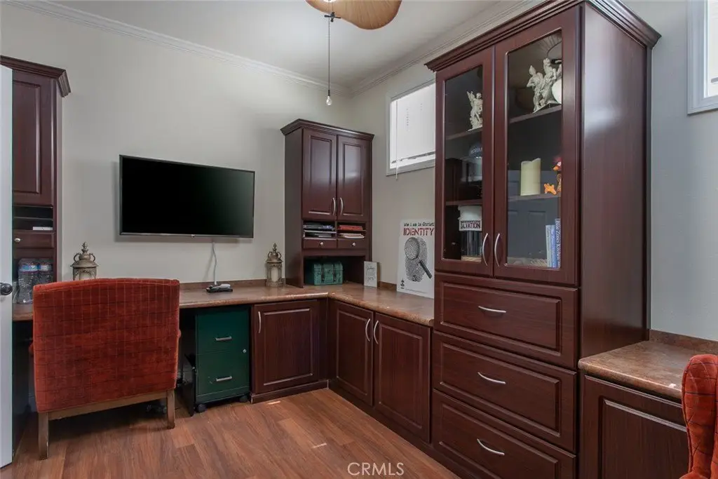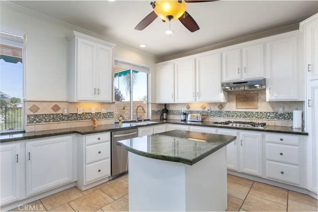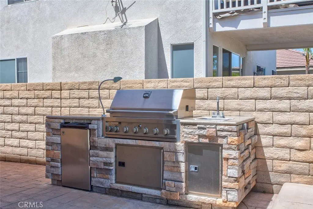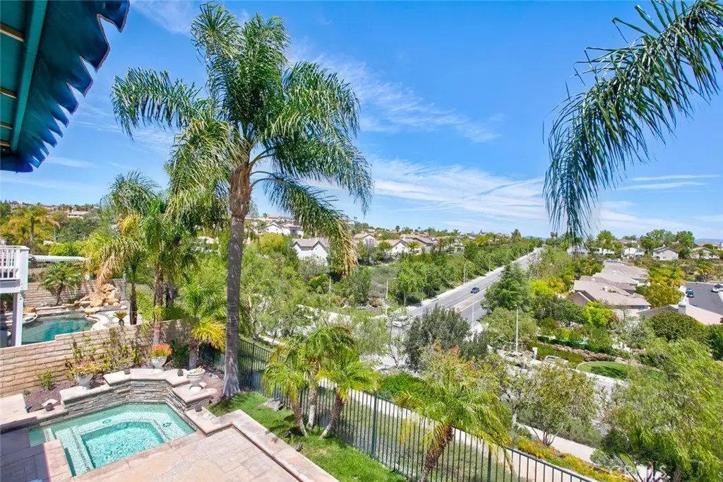 Welcome home a beautifully maintained 4-bedroom, 3-bathroom + office home tucked away on a quiet cul-de-sac in the heart of Stevenson Ranch. Enjoy privacy and panoramic views of the Santa Clarita Valley with no rear neighbors and stunning scenery from the upstairs bedrooms, kitchen, and backyard. From the charming stacked stone exterior and peaceful fountain entry to the spacious front porch, every detail of this home invites you in. Inside, you’ll find custom tile flooring, elegant wrought-iron finishes, and built-ins surrounding the cozy living room fireplace. The bright, open kitchen is perfect for entertaining with abundant cabinetry featuring pull-out racks, generous counter space, and updated stainless-steel appliances including a built-in range. The downstairs office offers beautiful custom wood cabinetry — an ideal work-from-home setup. Upstairs, the primary suite opens to an expansive private balcony with sweeping views and a spa-inspired bathroom featuring dual sinks, soaking tub, and walk-in shower. Additional highlights include a tankless water heater, dedicated laundry room, and leased Tesla solar system for energy efficiency. Step outside to your private backyard oasis, complete with a built-in spa with cascading waterfalls, outdoor fireplace, BBQ island, and low-maintenance landscaping — perfect for relaxing or entertaining under the stars.