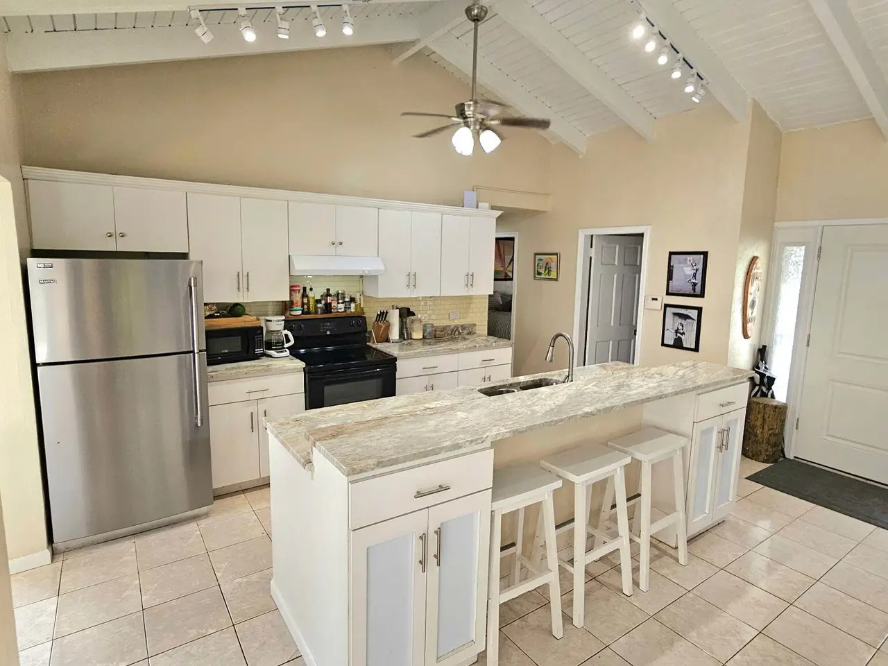 The PERFECT single family home for your family or excellent income property. Park in the flat parking area and walk past the grassy entrance with a fire pit. Beautiful breezes with a pool AND a hot tub and lots of outdoor deck and living space. Even the floorplan makes sense! The house is WALK IN LEVEL. There are 28 solar panels, 2 Tesla Powerwalls and Net Metering. Remodeled kitchen and baths, new electric, new split A/C's, recently recoated roof and pool and an outdoor shower. It even comes with Starlink. This lovely home comes FULLY furnished so just move right in or rent out immediately. There is room to add a separate structure off the driveway if you want additional income. See documents for all extras