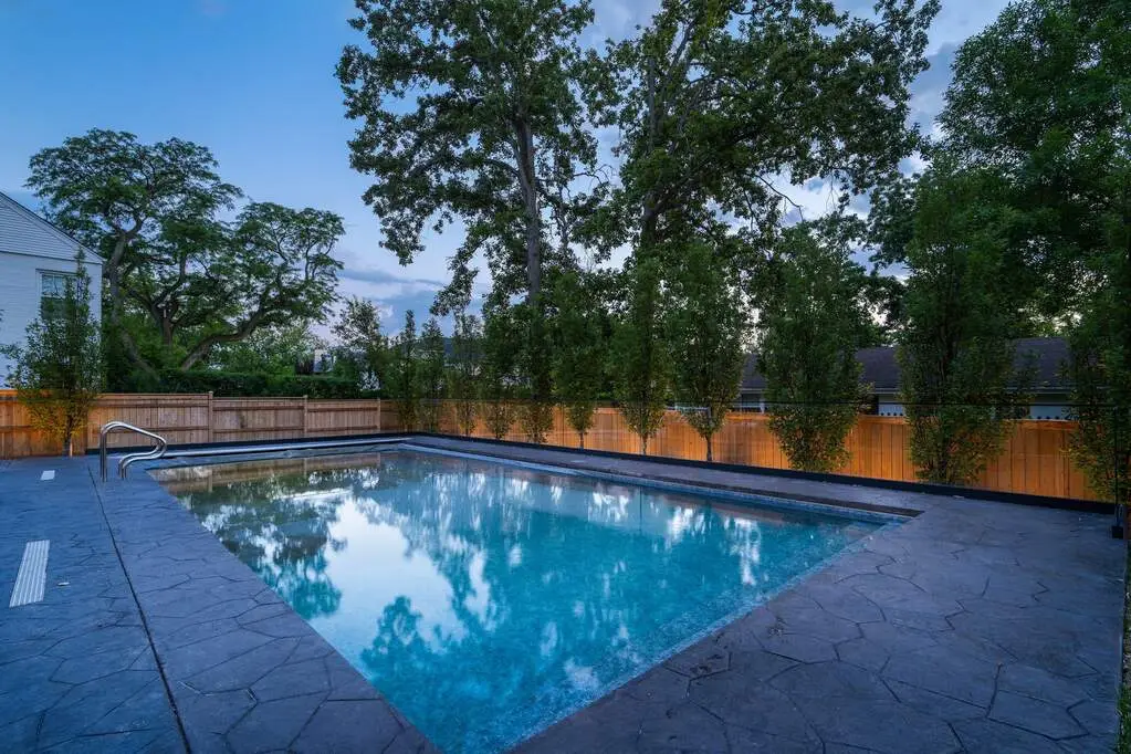 • Heated in-ground pool with fireplace in expansive backyard retreat