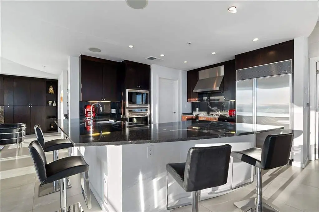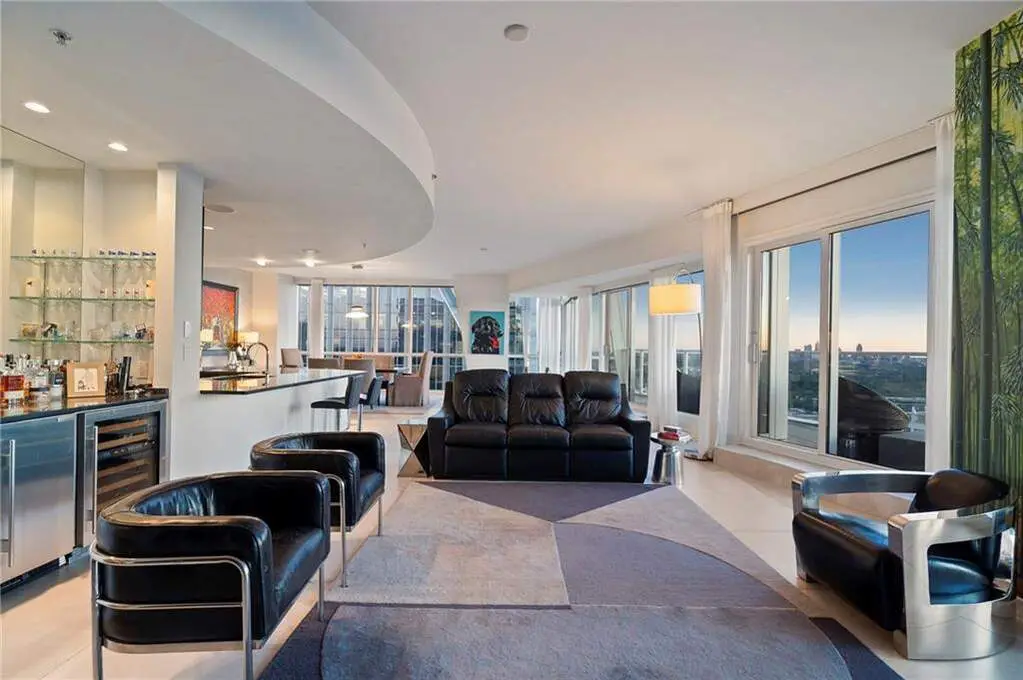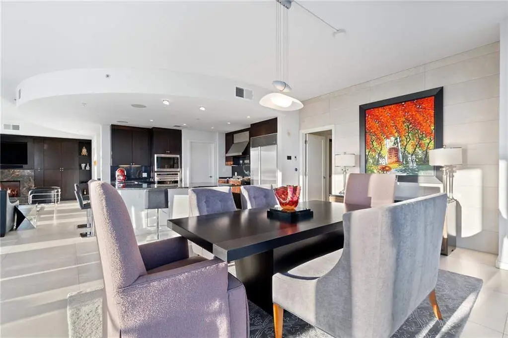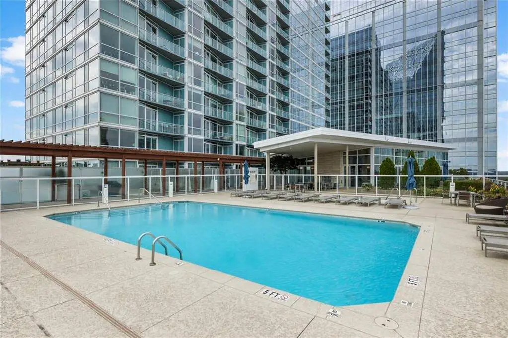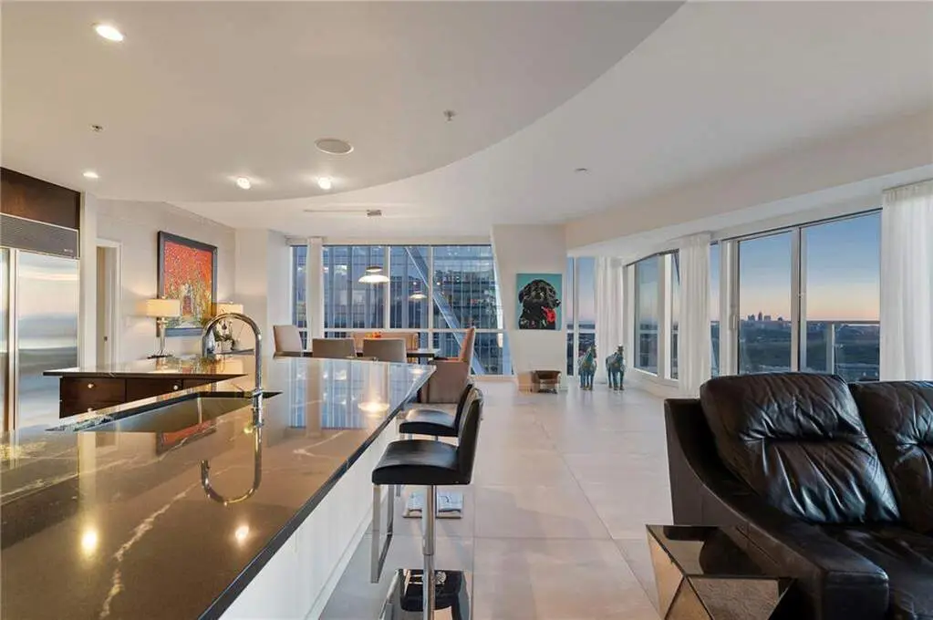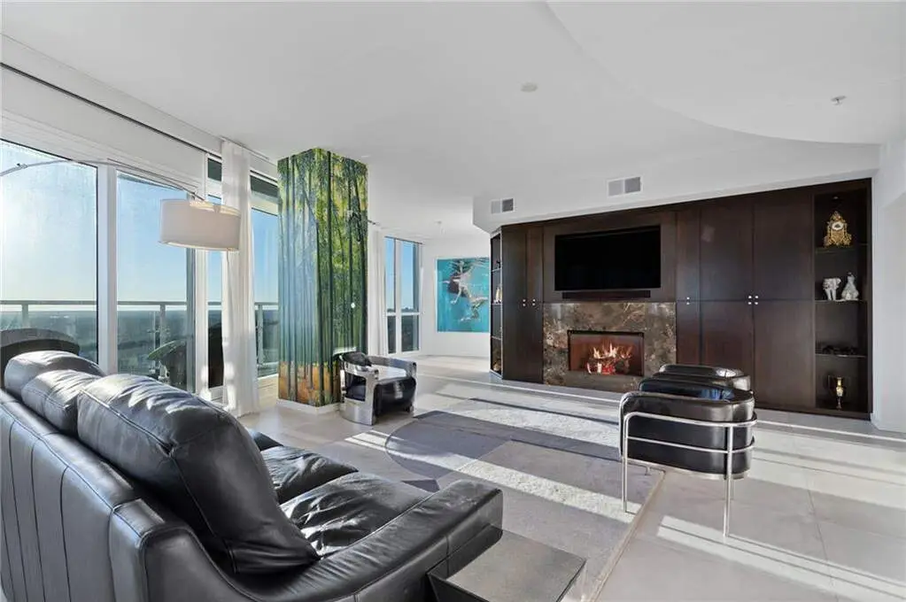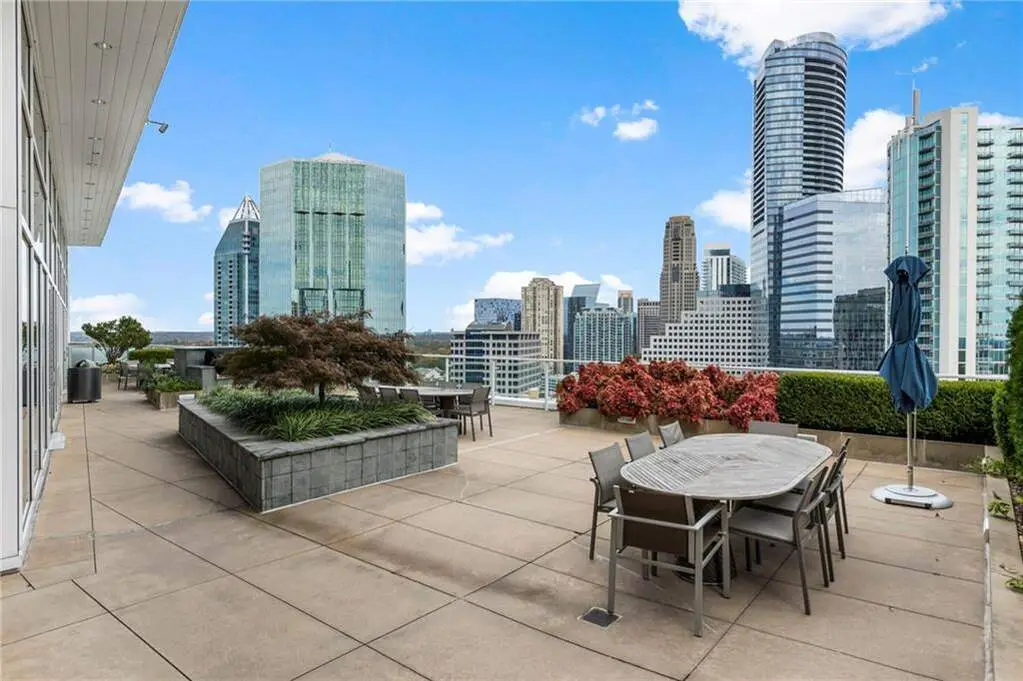 A rare offering in highly sought-after Terminus - one of only three residences with this sexy and coveted floor plan - this impressive corner unit embodies elevated Buckhead living with its expansive layout and nearly 360-degree skyline views from the 3 separate terraces. An entertainer's dream, the open-concept living area features a fireside great room and a sleek bar complete with Sub-Zero wine storage. The adjoining dining and media rooms flow seamlessly into a gourmet kitchen outfitted with top-of-the-line appliances, including Sub-Zero refrigeration, Wolf gas range and warming drawer, and a convenient breakfast bar. A separate catering entrance off the kitchen makes hosting effortless. Step outside to the oversized, covered terrace and take in breathtaking views of both Buckhead and Downtown - the perfect backdrop for dining or entertaining al fresco. Privately situated, the luxurious primary suite with Venetian plaster walls offers a tranquil retreat with a sitting area framed by floor-to-ceiling corner windows, a private covered terrace with views of Stone Mountain and Buckhead, and an expansive custom walk-in closet with a built-in safe. The spa-inspired bath showcases dual vanities and water closets, a soaking tub, and a frameless glass shower - all positioned to capture the home's extraordinary vistas. Two additional guest suites, each with ensuite baths, share a third balcony and are thoughtfully placed off the foyer for privacy. Additional highlights include Famosa Italian tile throughout, motorized shades throughout, leak defense water system, Toto toilets, and a fully integrated Lutron and Control4 smart home system and a 1/2 bathroom. Two deeded, covered parking spaces complete this exceptional offering. Perfectly positioned at Terminus, just steps from Buckhead's finest dining, shopping, and MARTA access.
