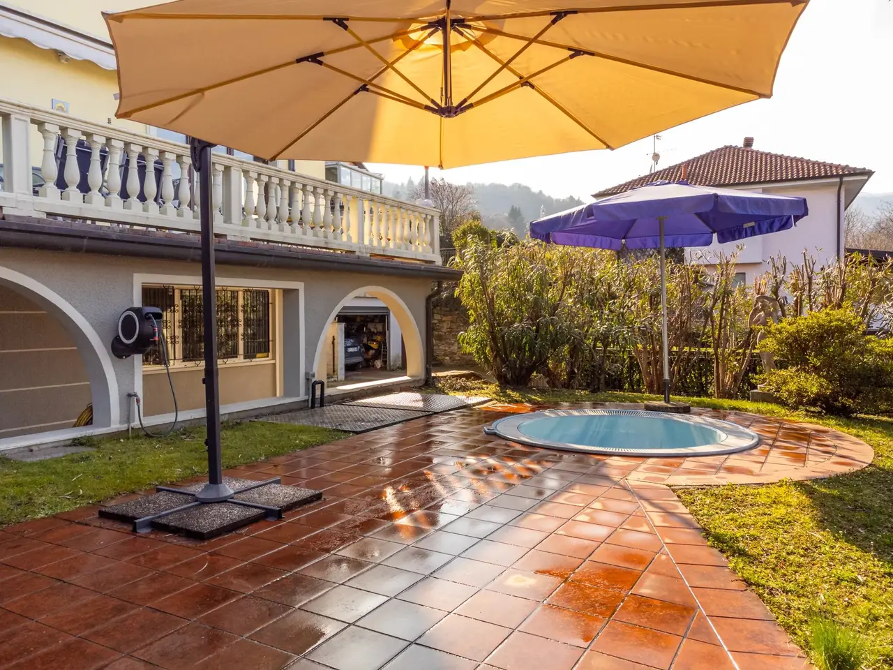 In one of the most sought-after residential areas of the first hill of Stresa, we offer for sale an elegant villa with private garden, ideal for those who want to live in contact with nature without giving up the convenience of the center. In fact, following the pedestrian path placed in front of the villa for sale, you can reach the center of Stresa in just 10 minutes on foot. This property, built in 1999, is part of a small complex of three twin villas and is perfect both as a main residence and as a vacation home. The location, quiet but not isolated, makes it easy to reach the center of Stresa on foot or by mountain bike via a pretty little pedestrian street. The villa is on three levels and is distinguished by the functional layout of the rooms: Basement: single garage, a versatile room (ideal as a guest room, gym or study), laundry, cellar and security area. Ground floor: a large living room with fireplace overlooking the terrace, dining room, eat-in kitchen and guest bathroom. Second floor: three bedrooms, two bathrooms and a refined master suite complete with private bathroom and walk-in closet. Outside, the manicured garden is home to a relaxation area with terracotta flooring, hot tub, sunbathing area and ornamental palm trees that lend an exotic and private touch. The covered terrace is perfect for outdoor dining and relaxing moments overlooking the surrounding greenery. The villa offers excellent sun exposure, bright rooms, and is in perfect condition, ready to be lived in.
