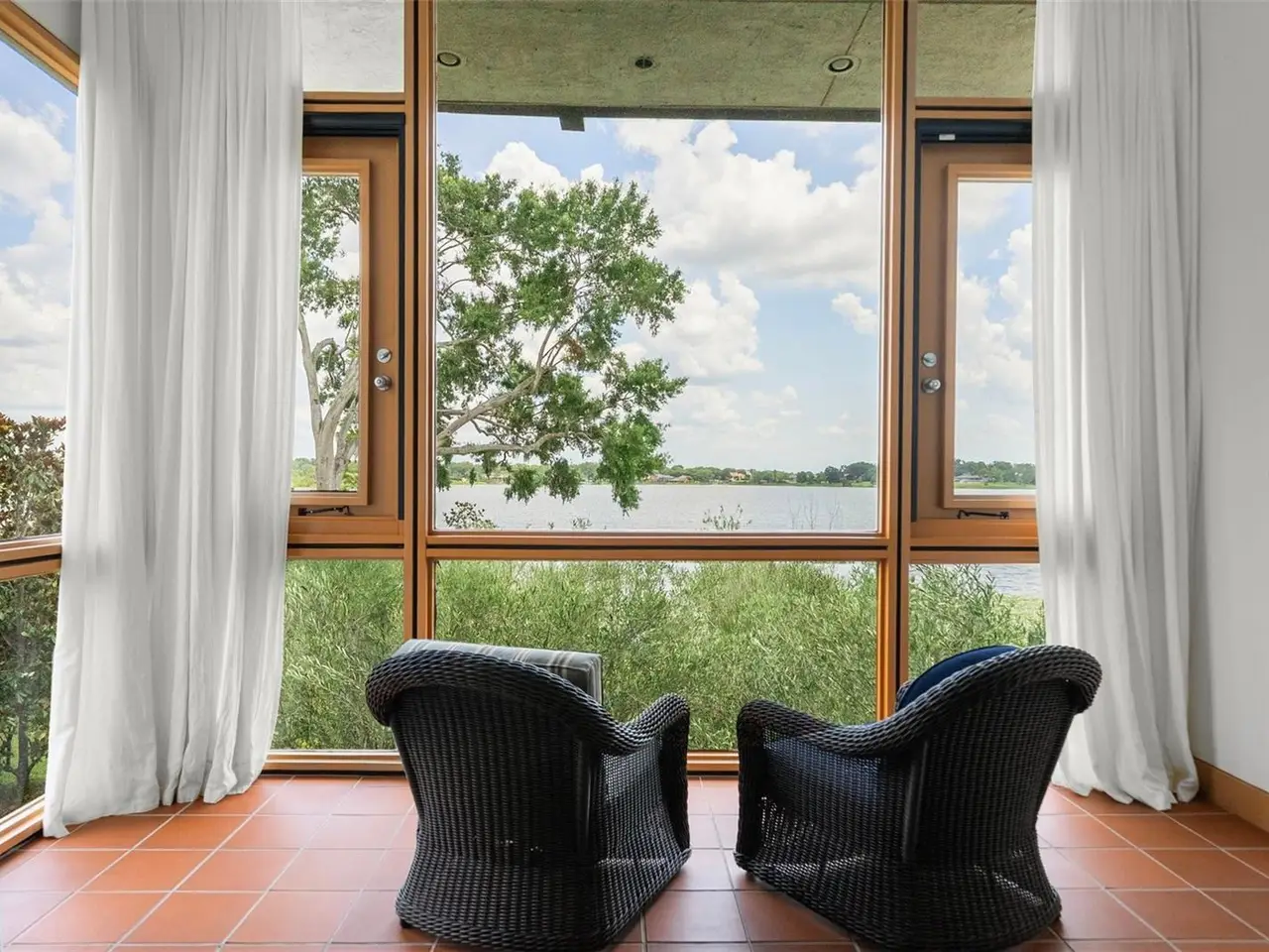 There was a time when homes were designed to last, and this is one of them. Designed by award-winning architect Gene Leedy, this south-facing lakefront residence embodies a legacy of modernism uniquely attuned to Florida's landscape and climate. As a founding voice of the Sarasota School of Architecture, Leedy's vision was ahead of its time, helping to shape a movement that left its mark on architecture around the world. Designed in 2006 for his daughter, this residence reflects decades of innovation; every detail considered, nothing spared. Step inside and you enter the mind of a true visionary, where nothing was done without purpose, and every detail was designed for modern living. From the soaring 15-foot ceilings to the graceful grain of custom woodwork, from ample storage to quietly integrated modern comforts, every detail speaks to Leedy's belief that beauty and function must coexist. Leedy's design masterfully merges indoors and out drawing Florida's natural beauty into the flow of daily life with floor-to-ceiling windows and abundant outdoor living, more than 5,700 square feet, allow light, sky, and greenery to infuse each space. Courtyards and balconies offer a sense of retreat from every main room and bedroom. Built with Gene Leedy's signature cantilevered style, the home is elevated by pre-stressed concrete beams, allowing it to float gracefully above Lake Otis.