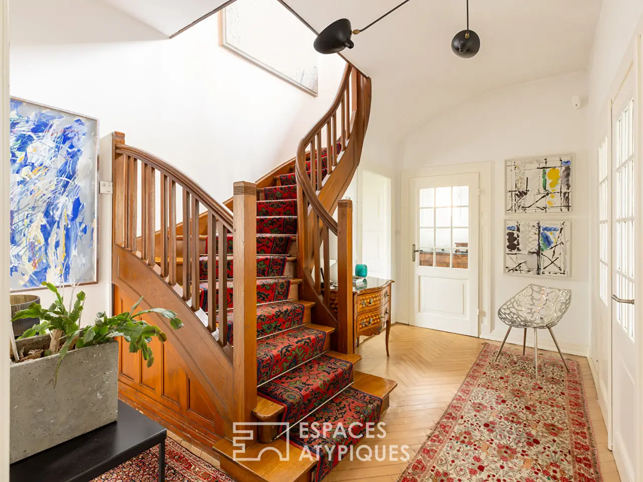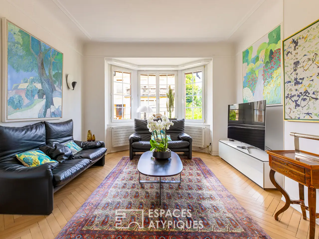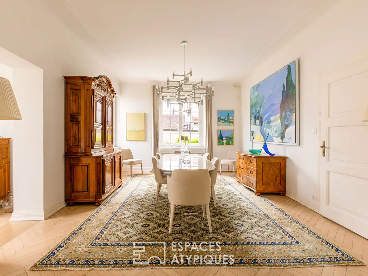 In the heart of Colmar's southern district, just a few steps from the city center, this 1910 mansion exudes all the charm of bourgeois architecture with 2,200 sq ft of living space (2,700 sq ft of floor space) and 5,500 sq ft of enclosed grounds. Designed by architect Paul Maus and formerly the home of Mayor Friedrich Difenbach during the First World War, it embodies the timeless elegance of characterful residences, with its spacious rooms, high ceilings, and tree-lined garden. From the generously proportioned reception hall, the authentic features are captivating: herringbone parquet flooring, moldings, and carefully preserved woodwork. The light-filled living room offers a warm space, extended by a large, convivial living room and a TV room conducive to relaxation. A winter garden adds a refined touch and could easily be converted into a bright office. The spacious and functional kitchen opens onto a utility room with direct access to the garden. The first floor features an elegant bedroom with an adjoining custom-made dressing room and a terrace ideally positioned to enjoy the sunrise, a refined bathroom, and a second bedroom. On the top floor, two additional bedrooms offer welcoming spaces, accompanied by a large bathroom and a mezzanine ideal for a play or reading area. Modern comforts blend seamlessly into this historic home thanks to air conditioning, electric shutters, fiber optics, and an alarm system that ensures the security of the premises and meets the demands of contemporary life while preserving the original character of the house. The 105 m2 basement offers multiple storage rooms, a laundry room, and a boiler room. Outside, the enclosed, tree-lined grounds create a peaceful setting. The detached garage is extended by a two-story annex, offering storage space on the ground floor and potential for conversion on the upper floor according to your needs. Three vehicles can be parked in the paved courtyard, ensuring comfort and convenience.The southern district of Colmar is distinguished by its remarkable architecture and sought-after residential atmosphere, while offering immediate access to schools, shops, transportation, and other amenities.With its prime location in the heart of the city, this mansion, completely renovated with high-quality materials, represents a rare opportunity to acquire a historic property where old-world charm blends harmoniously with modern comfort.Shops 10 minutes' walk awaySchools 2 minutes' walk awayBus 1 minute's walk awayTrain station 3 minutes' drive awayMotorway 7 minutes' drive awayNet seller price: €1,162,0003.27% acquisition fee, i.e. €38,000 including VATREF. 1613Additional information* 9 rooms* 4 bedrooms* 2 bathrooms* Outdoor space : 510 SQM* Parking : 4 parking spaces* Property tax : 2 113 €Energy Performance CertificatePrimary energy consumptiond : 204 kWh/m2.yearHigh performance housing*A*B*C*204kWh/m2.year30*kg CO2/m2.yearD*E*F*GExtremely poor housing performance* Of which greenhouse gas emissionsd : 30 kg CO2/m2.yearLow CO2 emissions*A*B*C*30kg CO2/m2.yearD*E*F*GVery high CO2 emissionsEstimated average annual energy costs for standard use, indexed to specific years 2021, 2022, 2023 : between 2670 € and 3680 € Subscription IncludedAgency fees* Fees charged to the purchaser : 38 000 €MediatorMediation Franchise-Consommateurswww.mediation-franchise.com29 Boulevard de Courcelles 75008 Paris