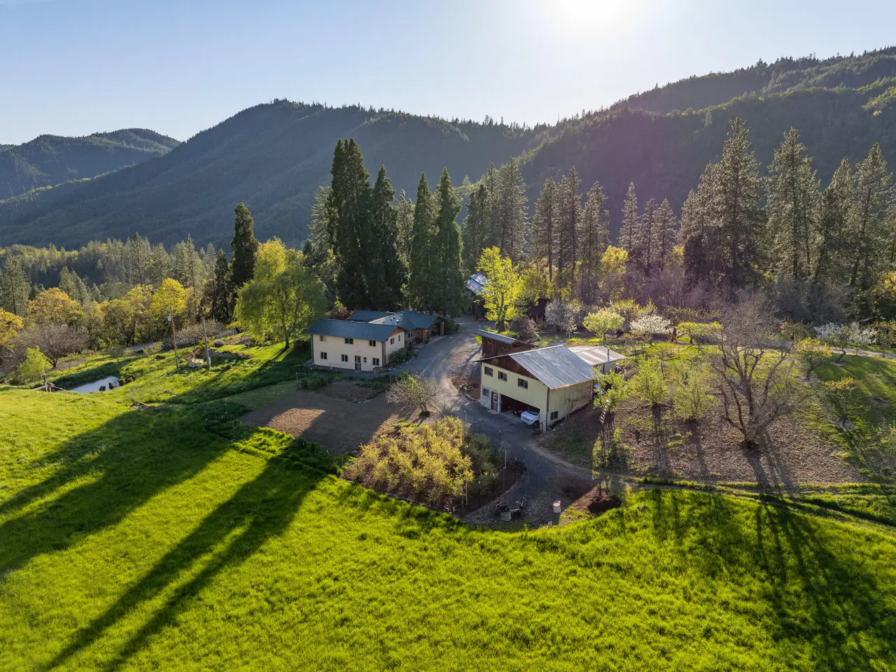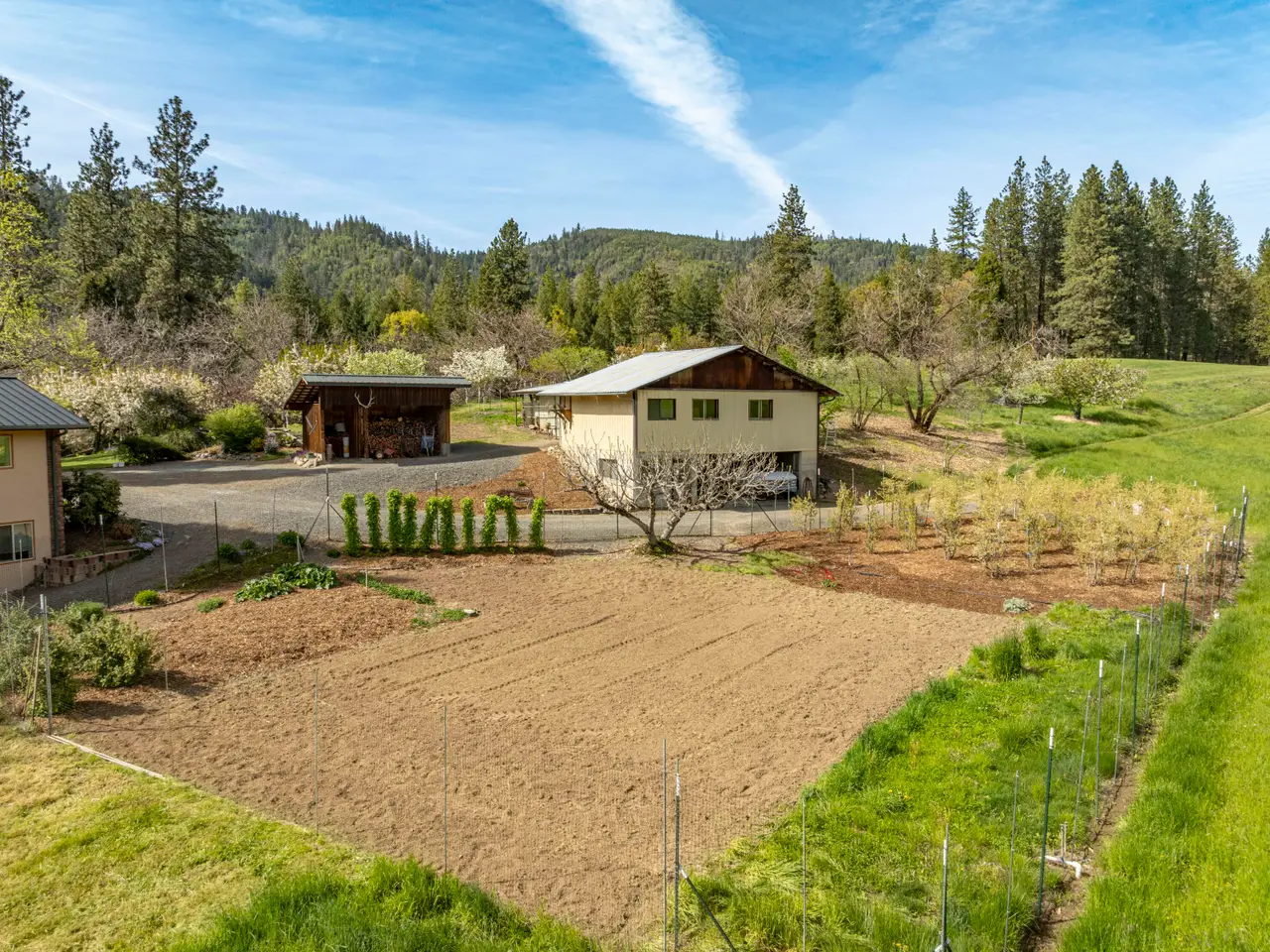 Situated at approximately 2,000 feet in elevation, this ranch enjoys a peaceful setting above the valley floor, providing stunning views and a sense of privacy that is increasingly hard to find. Spanning 127 acres, the property features livewater, rolling pastures, forests, and direct access to public lands. Water features include Price Reservoir, two creeks, and additional ponds. Timber inventory is estimated at 1.39 million board feet with a net value of over $400,000. The well-maintained home features an open-concept floor plan, updated kitchen, expansive views, and great indoor/outdoor living. Outbuildings include a versatile farm building with a licensed kitchen and walk-in cooler, barns, plus many more improvements. Operated as a niche market farm, the property has established orchards, gardens, and pastures. Recreational opportunities abound with hunting, fishing, hiking, & horseback riding on site and nearby. Located +/- 20 miles from Medford & the Rogue Valley Int' Airport.
