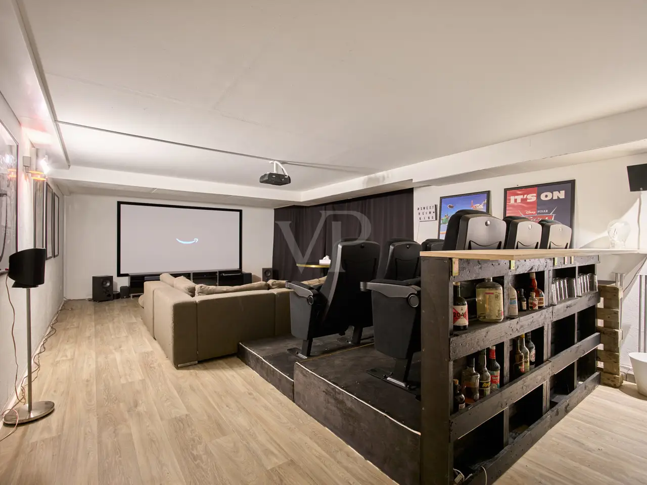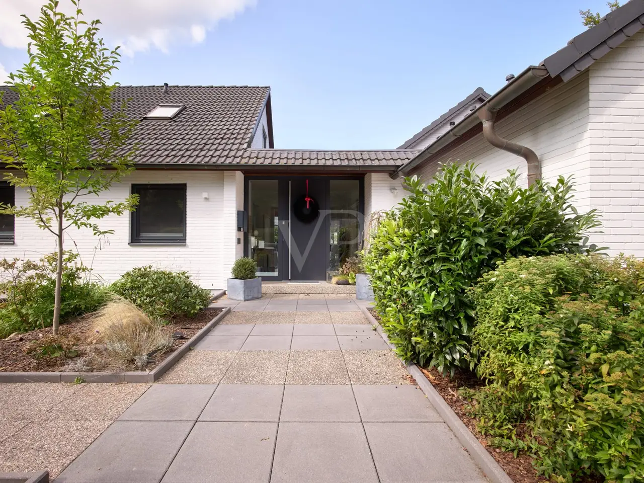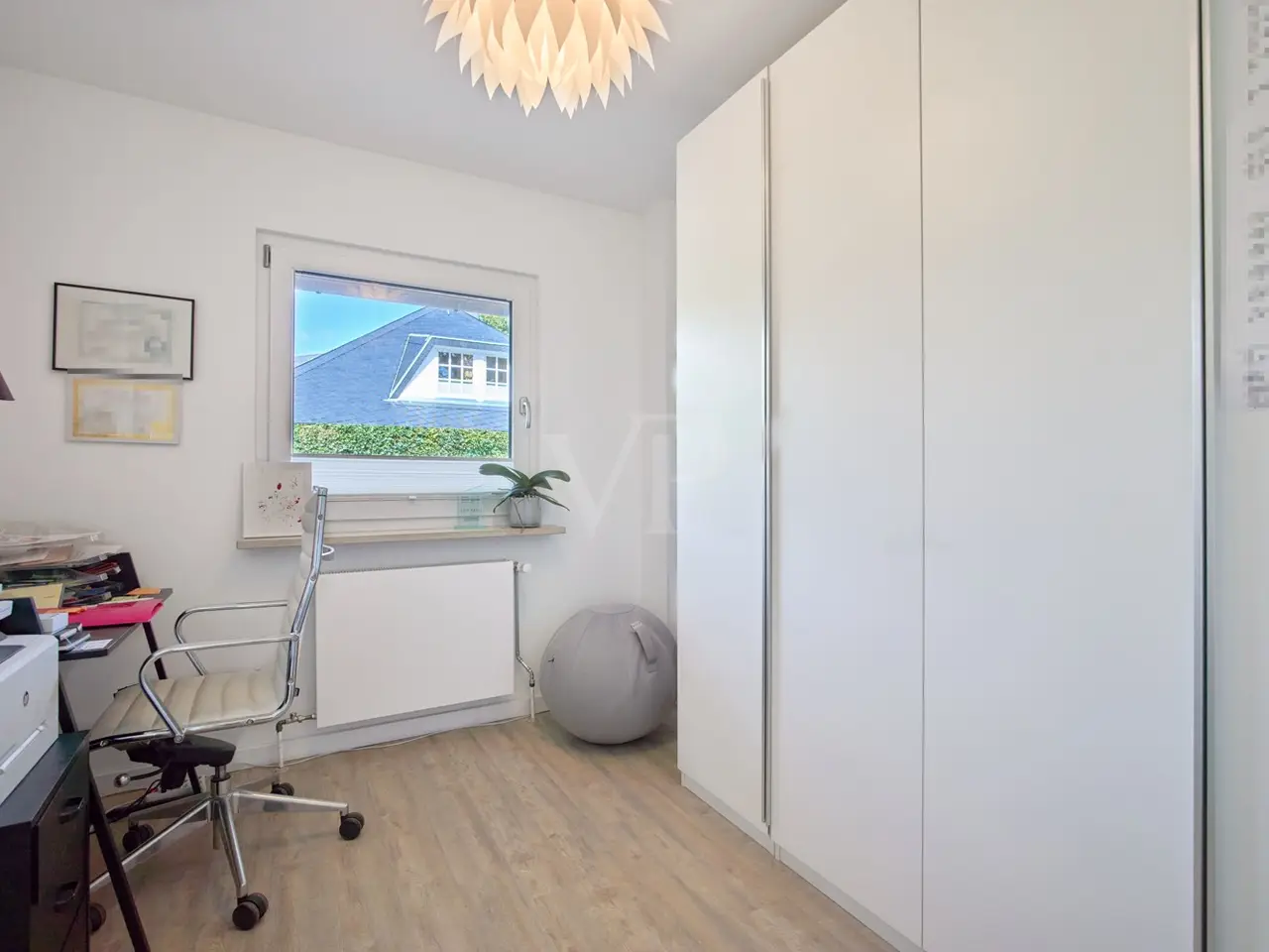 Let us convince you of the advantages of this property during a viewing! In a prime location, completely renovated and modernized? Give us a call. We have the perfect home for you! The house was built in 1974 on a 1,330 m² plot - continuously maintained - and extensively and extensively renovated from 2017 until now. Today it presents itself as an ideal family idyll with approx. 303 m². Thanks to the many possible uses of the rooms, "living and working" is just as interesting an option here as young and old living together under one roof. The house is also suitable for a family with an au pair. The outdoor area has been redesigned and impresses with its minimalist style! Everything is well thought out and reduced to clear forms. Modern and elegant! The west-facing property invites you to enjoy and relax with its large south-west-facing terrace and impressive outdoor fireplace. An ideal place for the whole family. The entire house impresses with an optimal room layout, lots of light and convertible rooms that are second to none. You enter the ensemble via a spacious, covered entrance area and first reach the stylish, light-flooded hallway with a small, chic guest WC. To the right is the modern, large bedroom with a separate dressing room. A special highlight is the new en-suite bathroom with exquisite sauna and XXL shower. Pure luxury! Continue into the modern music room. From here you have direct access to the south-west-facing terrace. The large trampoline set into the floor is the perfect children's oasis - it's not just children's eyes that will light up! A modern, disused swimming pool is also hidden here, which could be put back into operation at any time with a little effort. To the left is the trendy shower room in black and white tones. A well-designed room and an office are adjacent. The heart of the house is the open-plan, large L-shaped living area with a separate lounge corner and eat-in kitchen with cooking island: modern, practical and multifunctional. Here, cooking is combined with living, creating structure and quickly becoming the focal point of the home. There is room for the whole family at the long dining table. A stylish fireplace provides crackling warmth. The large window front with patio door creates a seamless connection to the terrace and connects the inside and outside in the most beautiful way. From here you have a wonderful view of the garden. A charming wooden staircase leads to the upper floor. Here there are three rooms with different layouts and a modern bathroom. The entire ground floor and second floor are covered with high-quality JOKA design flooring. The walls are painted in light pastel shades. In the basement there are further living rooms with large windows, some of which can be used as an office, guest room or hobby room. A special highlight is the large cinema room with a screen, projector and real cinema seats on two levels. With a bag of popcorn in your hand, you can experience the best movie moments here! A large double garage with a new roller shutter door and wallbox, which leads directly into the basement, completes this offer. This house has an incredible number of possible uses. We look forward to showing you this house in a prime location during a viewing. You can find our entire offer at https://www.von-poll.com