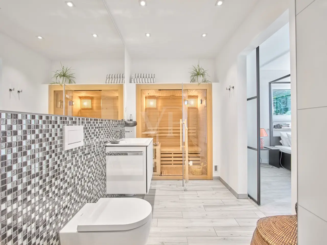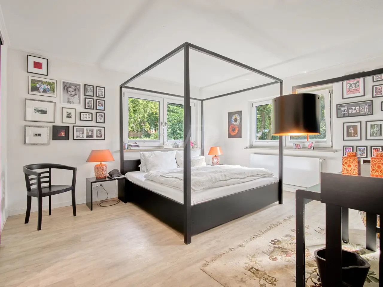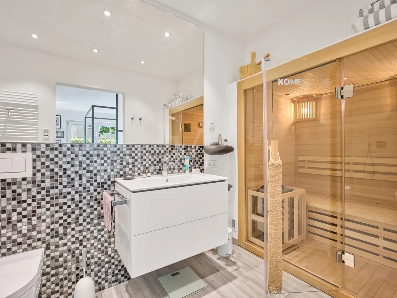 Let us convince you of the advantages of this property during a viewing! In a prime location, completely renovated and modernized? Give us a call. We have the perfect home for you! The house was built in 1974 on a 1,330 m² plot - continuously maintained - and extensively and extensively renovated from 2017 until now. Today it presents itself as an ideal family idyll with approx. 303 m². Thanks to the many possible uses of the rooms, "living and working" is just as interesting an option here as young and old living together under one roof. The house is also suitable for a family with an au pair. The outdoor area has been redesigned and impresses with its minimalist style! Everything is well thought out and reduced to clear forms. Modern and elegant! The west-facing property invites you to enjoy and relax with its large south-west-facing terrace and impressive outdoor fireplace. An ideal place for the whole family. The entire house impresses with an optimal room layout, lots of light and convertible rooms that are second to none. You enter the ensemble via a spacious, covered entrance area and first reach the stylish, light-flooded hallway with a small, chic guest WC. To the right is the modern, large bedroom with a separate dressing room. A special highlight is the new en-suite bathroom with exquisite sauna and XXL shower. Pure luxury! Continue into the modern music room. From here you have direct access to the south-west-facing terrace. The large trampoline set into the floor is the perfect children's oasis - it's not just children's eyes that will light up! A modern, disused swimming pool is also hidden here, which could be put back into operation at any time with a little effort. To the left is the trendy shower room in black and white tones. A well-designed room and an office are adjacent. The heart of the house is the open-plan, large L-shaped living area with a separate lounge corner and eat-in kitchen with cooking island: modern, practical and multifunctional. Here, cooking is combined with living, creating structure and quickly becoming the focal point of the home. There is room for the whole family at the long dining table. A stylish fireplace provides crackling warmth. The large window front with patio door creates a seamless connection to the terrace and connects the inside and outside in the most beautiful way. From here you have a wonderful view of the garden. A charming wooden staircase leads to the upper floor. Here there are three rooms with different layouts and a modern bathroom. The entire ground floor and second floor are covered with high-quality JOKA design flooring. The walls are painted in light pastel shades. In the basement there are further living rooms with large windows, some of which can be used as an office, guest room or hobby room. A special highlight is the large cinema room with a screen, projector and real cinema seats on two levels. With a bag of popcorn in your hand, you can experience the best movie moments here! A large double garage with a new roller shutter door and wallbox, which leads directly into the basement, completes this offer. This house has an incredible number of possible uses. We look forward to showing you this house in a prime location during a viewing. You can find our entire offer at https://www.von-poll.com