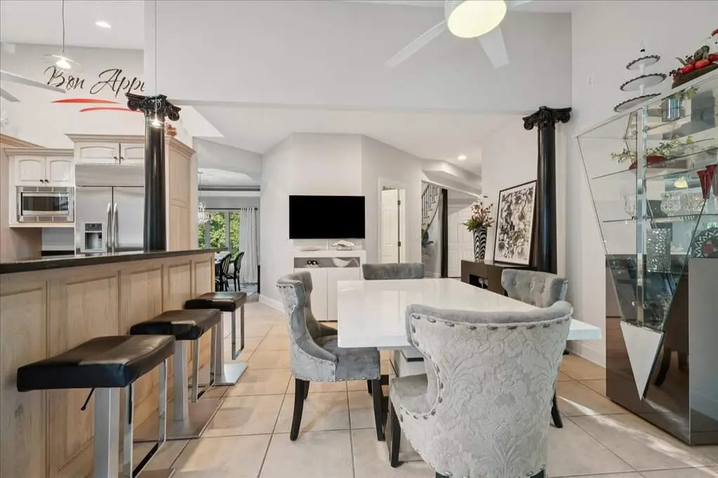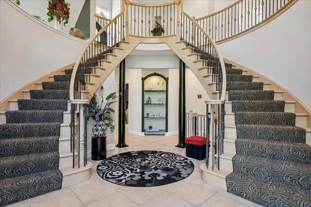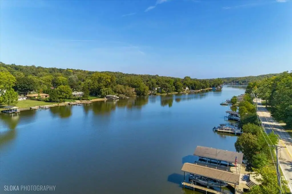 Year-round resort living & entertaining can be yours in this stunning 4 bed, 5.1 bath home with elevated lot on 1.67 acres, offering privacy, a gated entry, mature trees, 1.5 boat slips and seasonal views of the Fox River. This extraordinary property offers an unmatched blend of luxury, recreation, functionality and limitless possibilities to enjoy for years to come! With three levels of living space, the residence boasts 6800 SF above grade and an additional 2163 SF in the walk-out lower level, totaling almost 9000 SF. For the hobbyist or collector there is garage space for up to 12 cars and your own boat storage which includes a 4-car primary garage, a 4-car tandem garage (8 spaces), plus a workshop and 28 x 26 storage/exercise room. The 2200 SF above the secondary garages includes a 64 x 34 Bonus Room has in-line skating flooring and a golf simulator. There is also a large office for WFH and a full bathroom. Step inside to the open concept interior and take in the natural light and soaring volume ceilings. The grand two-story entry with a dual staircase which leads you into the dramatic Great Room with walls of glass, a large fireplace and adjacent wet-bar. The heart of the home is a beautifully appointed kitchen featuring 42" cabinets, granite counters, high-end stainless appliances and a walk-in pantry. The adjacent dining room is perfect for hosting unforgettable dinners and gatherings, while the sunroom is the perfect spot to enjoy your morning coffee or casual evenings grilling out. The tiered concrete patios offer great outdoor space including a built-in fire pit. A mudroom & separate laundry room complete the main level. The spacious primary suite is a private sanctuary, featuring a spa-inspired bathroom with whirlpool tub, walk-in shower, double vanity and excellent closet space. A second ensuite bedroom on the main level is ideal for family or guests while the upper level includes two spacious bedrooms with vaulted ceilings, a tandem bedroom/loft (currently set up as a nursery) and a full bathroom. The lower level was designed for ultimate entertainment and is fun and versatile, with plush seating arranged around a large flat-screen TV, perfect for game nights or movie marathons. A centerpiece of the lower level is a custom cherry wood bar featuring all the essentials. The game room beckons...the pool table is included and there is extra space for a game table and seating. Radiant heat flooring is an excellent add-on feature to enjoy this fun space. At the river there is a total of 85 feet of frontage with concrete docks and decking. The full pier is shared 50/50 with neighbors providing 1.5 boat slips per residence and shared decking. Your portion will include 1 full covered boat slip with an electric lift and room for a wave runner too. The home located on a small shared lane just minutes from downtown Algonquin's shops, restaurants, and small-town charm, and with easy boat access to Port Edwards, The Broken Oar, Kief's Reef, and the Chain of Lakes, this is more than just a home-it's a lifestyle. Bring your boat and embrace the river life today!