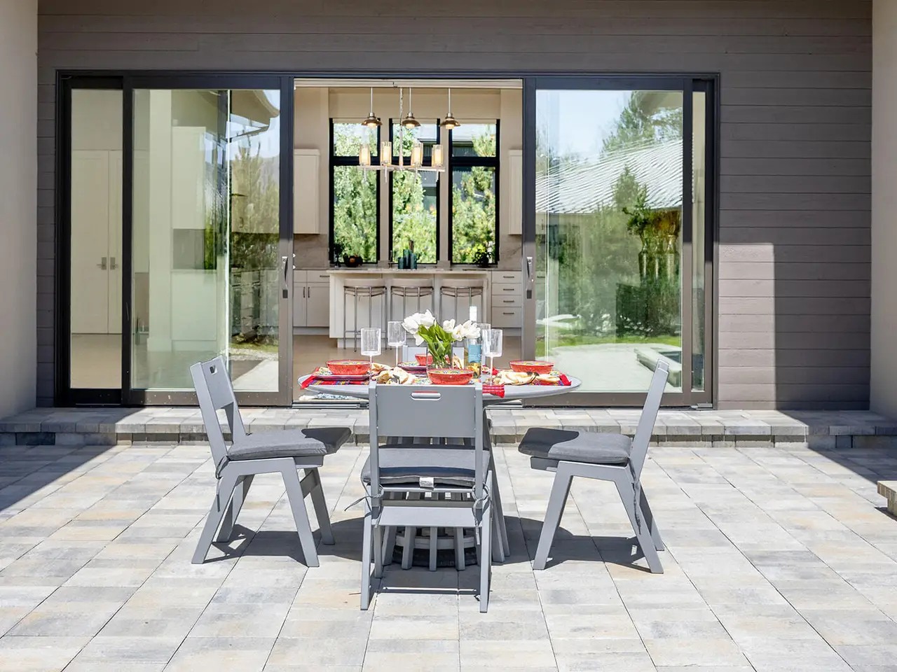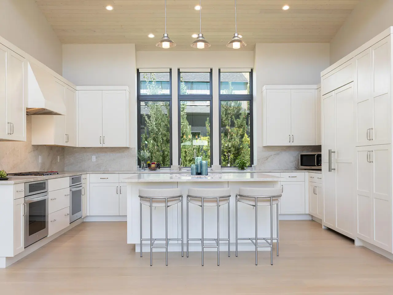 Stunning Contemporary Home. Sunlit single-level sanctuary with open floor plan, vaulted ceilings, and premium upgrades. White oak floors, Taj Mahal quartz counters, and Wolf cooktop create a chef's dream kitchen. Luxury Features: Wine cooler, custom closets, heated bathroom floors, heated two-car garage, plus heated driveway and walkways. Luxury contemporary design meets everyday comfort.