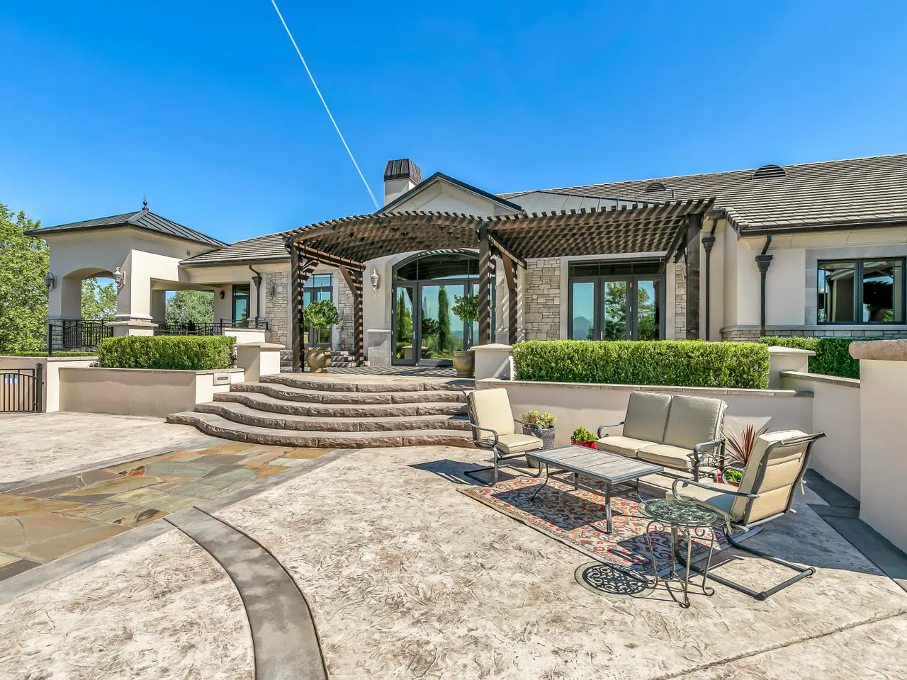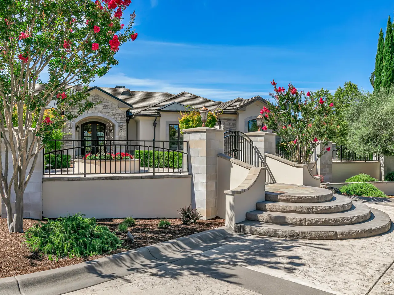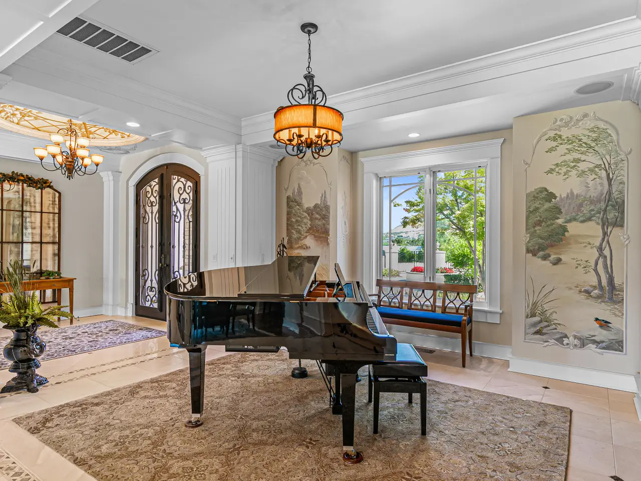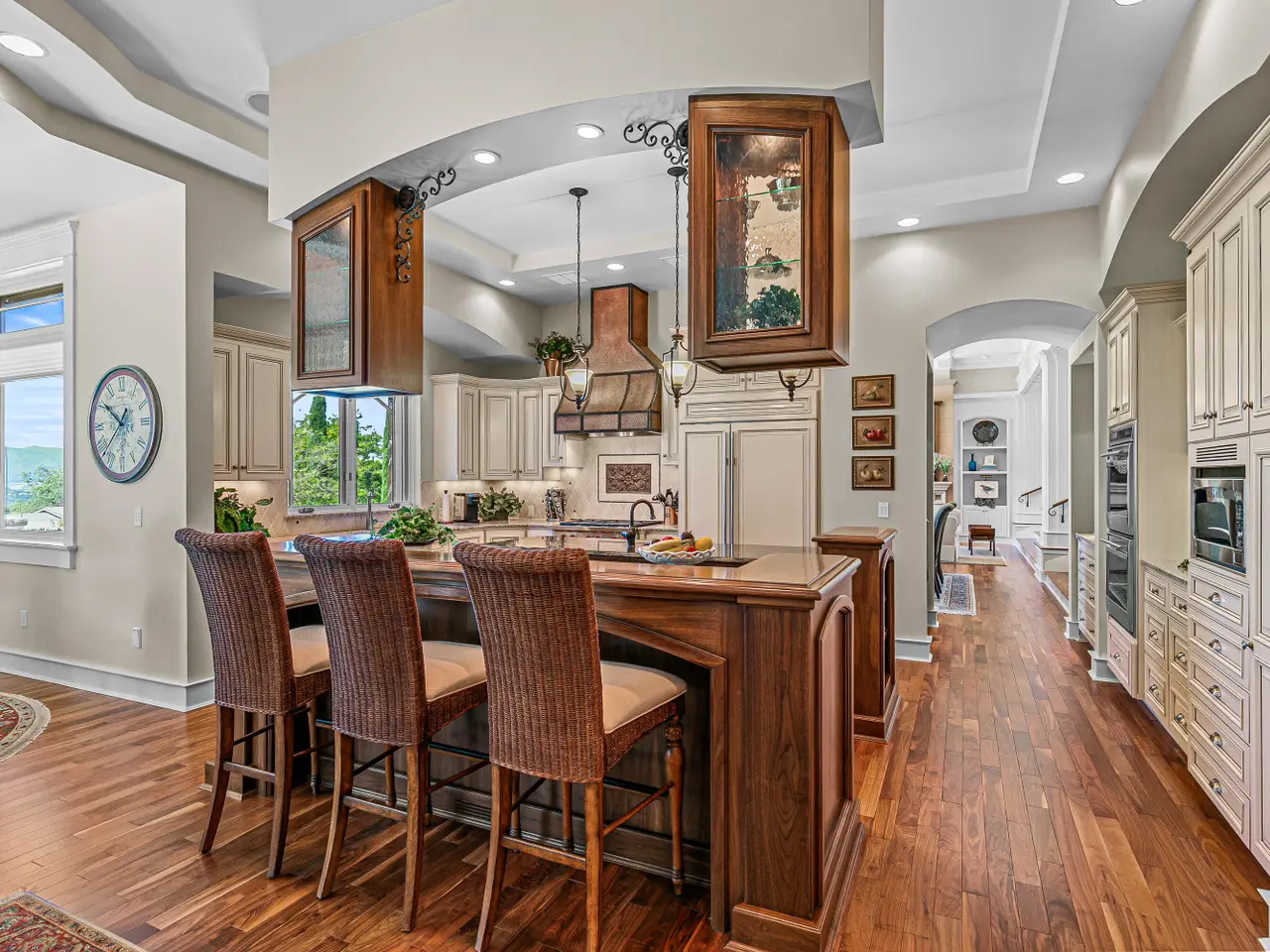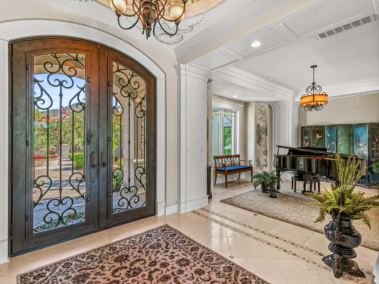 Enter across the threshold of this luxurious estate's grand custom iron and glass doors into a realm of refined class and sophistication. The entrance exemplifies the masterful design, boasting luminous windows with stunning valley views, gorgeous walnut flooring, one-of-a-kind ceiling art, and outstanding light fixtures that create a truly majestic ambiance of elegance and warmth with each room you enter. From the large spectacular gourmet kitchen with magnificent custom detail to the large lush outdoor living space perfect for entertaining, this gorgeous home is sure to captivate and impress the most discerning luxury buyer.