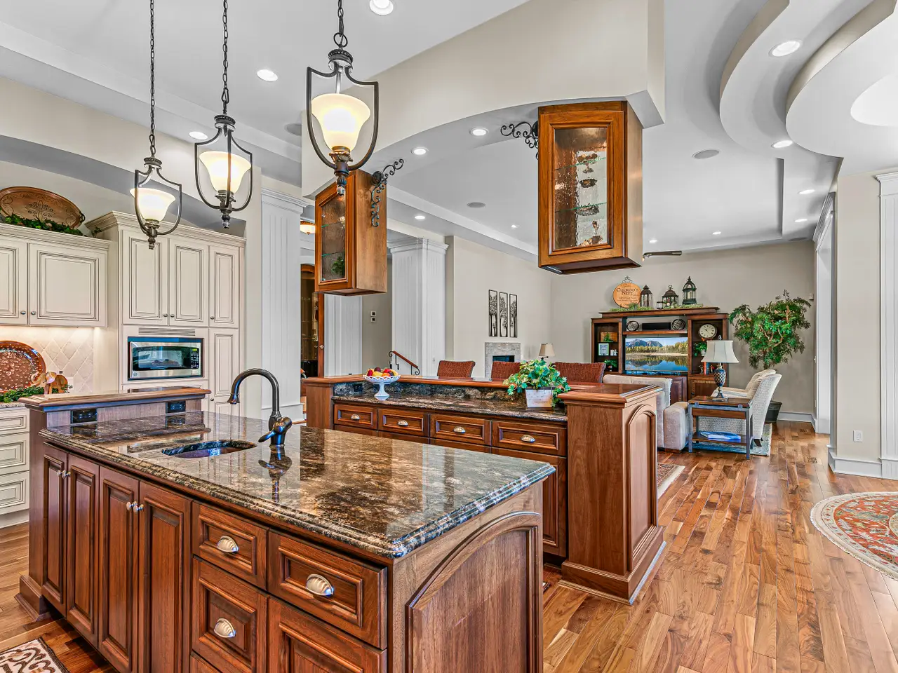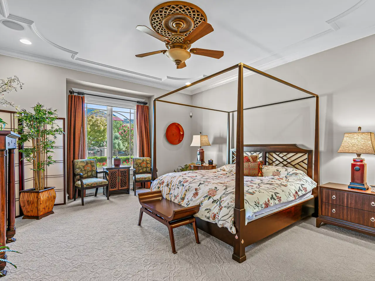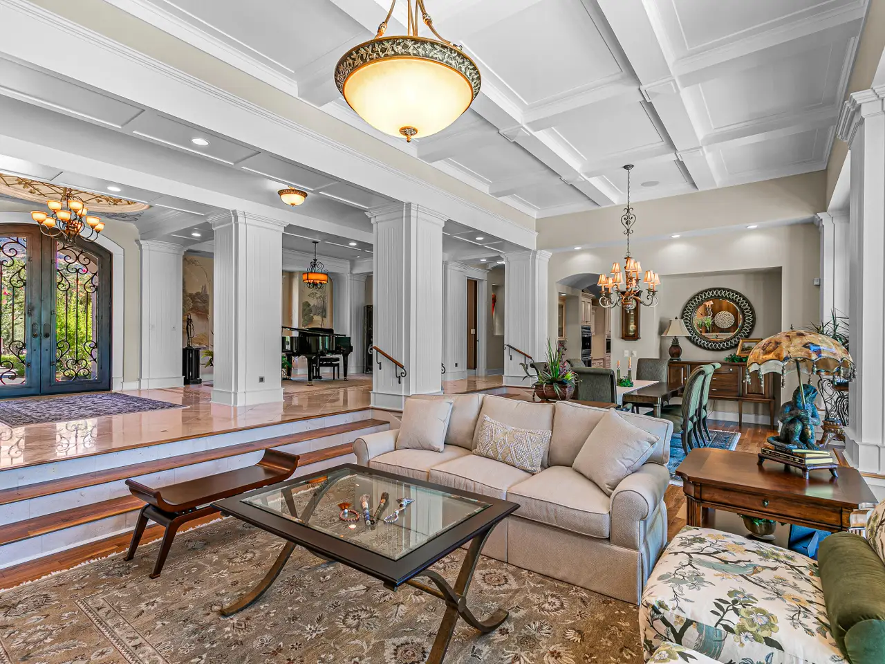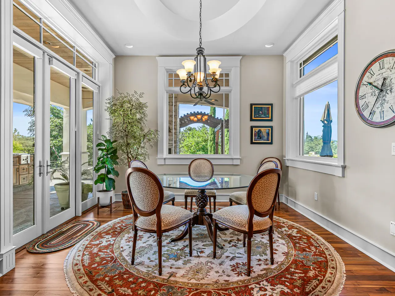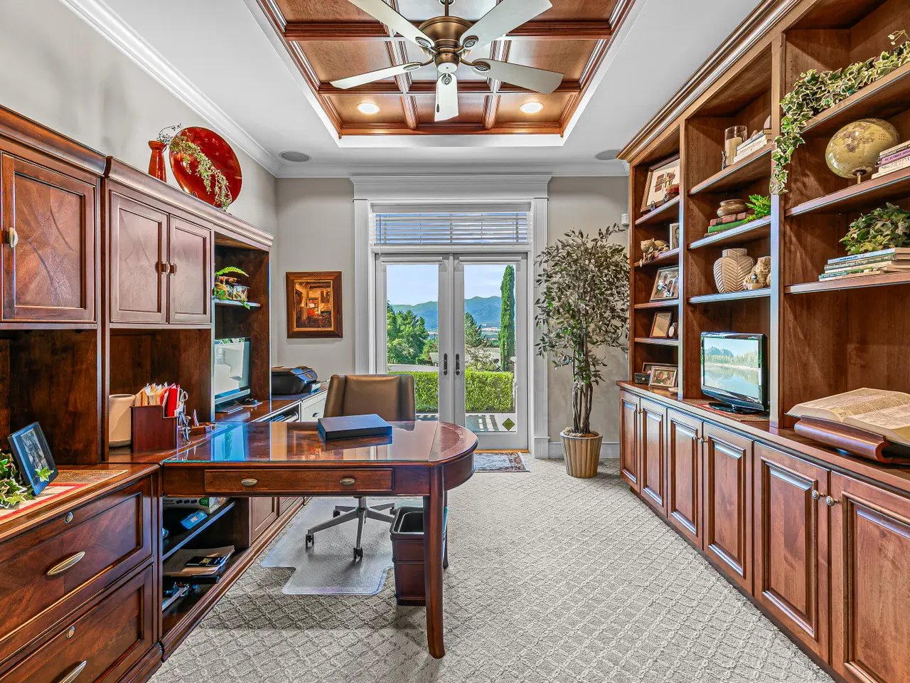 Enter across the threshold of this luxurious estate's grand custom iron and glass doors into a realm of refined class and sophistication. The entrance exemplifies the masterful design, boasting luminous windows with stunning valley views, gorgeous walnut flooring, one-of-a-kind ceiling art, and outstanding light fixtures that create a truly majestic ambiance of elegance and warmth with each room you enter. From the large spectacular gourmet kitchen with magnificent custom detail to the large lush outdoor living space perfect for entertaining, this gorgeous home is sure to captivate and impress the most discerning luxury buyer.