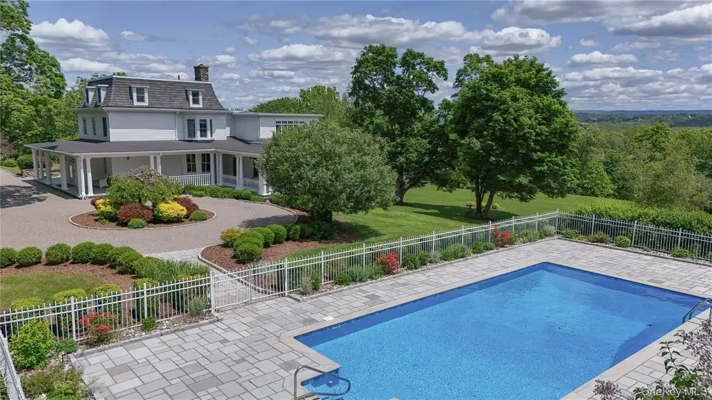 Twin Oaks is a one-of-a-kind gem located on one of the most picturesque roads in Orange County. Situated on a park-like 8.3 acre estate on the border of the Village of Goshen, the 5250sqft Victorian residence features 6 bedrooms, 5.5 bathrooms and recently has been extensively renovated and updated - while very tastefully maintaining its original charm and character. Receive and entertain your guests in the impressive living room. Enjoy a hot summer day in the pool area. Play a game of tennis or basketball on the tennis court. Relax on the front porch. Take time to reflect down by the fountain. Unwind on the rear patio overlooking the backyard. Have a refreshment from the bar. Retire to the primary suite with views overlooking this beautiful property. The exterior and interior of the residence have been extensively renovated and refurbished within the past 7 years. Please ask for a copy of the detailed list of renovations. Some of the updates include: The swimming pool area has been converted to a salt water system. The pool area, patios and walkways have been renovated and updated with new stone work and landscaping. The primary suite has been fully renovated. All new composite siding, corner boards, cornices, soffits and window trims. All new flat roofs and composite slate style mansard roof installed. New oversized aluminum gutters throughout the house, 25 new Anderson windows and 5 new exterior doors. The front porch floors, ceilings and beams have been rebuilt, repaired and refinished. New Mitsubishi mini-split AC and Heat systems located in most rooms. Electric Vehicle charger installed by the front porch. Two new complete heating boiler systems for multi-zone hot water baseboard heating throughout the house. New whole-house security system includes fire and smoke alarms, motion sensors and front door camera. New dual-canister water filtration system with water softening tank. A short distance from the center of the Village of Goshen and its parks, library, shops and restaurants. Close to the highways Route 17 (future Interstate I-86), Interstate highways I-87 (NYS Thruway) and I-84, and a little over an hour to New York City by car, bus or train.