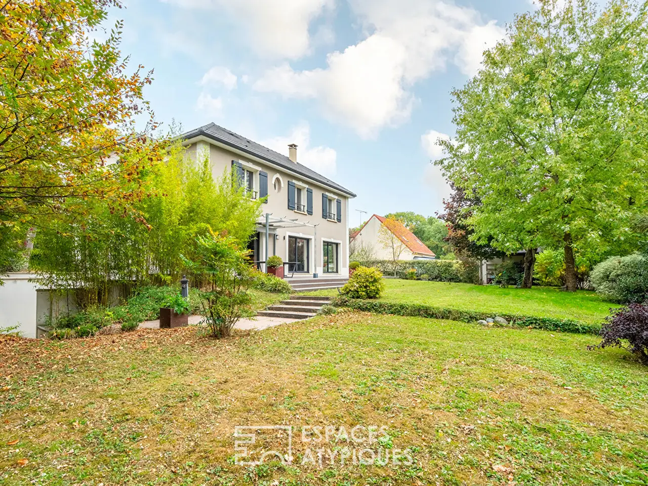Located in the heart of the Arbres district, the most sought-after area of Montfermeil, this architect-designed Berval residence, built in 2013, offers 330 m2 of usable space, including 209 m2 of living space.It enjoys a privileged setting, at the end of a cul-de-sac, on a landscaped 1,423 m2 plot bordered by forest.Built to BBC RT 2012 standards, the house benefits from meticulous technical features: low-temperature gas heating, central vacuum system, water softener, triple-filtered reverse osmosis system, and outdoor charging stations for electric vehicles.From the entrance, spaciousness and light are evident. The hall leads to a welcoming eat-in kitchen, extended by an adjoining pantry. A contemporary glass roof reveals the perspective of a vast 47 m2 double living room bathed in light, punctuated by four large sliding glass doors. These open onto the terrace and then the garden, inviting nature inside, providing a sense of tranquility and space.The ground floor also offers a bedroom with a walk-in closet, a bathroom with built-in storage, an office, a vestibule, and a separate toilet.Upstairs, a landing with a closet and a long hallway lead to four bedrooms, each with a walk-in closet, as well as a spacious bathroom with a shower and separate toilet.The 125 m2 basement completes this property with a large laundry/boiler room, a cellar, a separate studio with a shower room, and a triple garage that can accommodate up to three vehicles.A 20 m2 tiled lean-to with a wooden frame enhances this property: it could be used as an office, an artist's studio, a wellness area, or a spa, depending on your wishes.A rare address, where contemporary architecture, the serenity of the setting, and the proximity to nature create a most pleasant family life.Bus 604 400 m awayBus 643 700 m awayREF. 13190Additional information* 7 rooms* 5 bedrooms* 1 bathroom* 2 shower rooms* 1 floor in the building* Outdoor space : 1423 SQM* Property tax : 5 384 €Energy Performance CertificatePrimary energy consumption: 79 kWh/m2.yearHigh performance housing*A*B*C*D*E*F*GExtremely poor housing performance* Of which greenhouse gas emissionsc : 16 kg CO2/m2.yearLow CO2 emissions*A*B*16kg CO2/m2.yearC*D*E*F*GVery high CO2 emissionsEstimated average amount of annual energy expenditure for standard use, established from energy prices for the year 2021 : between 1180 € and 1660 €Agency feesThe fees include VAT and are payable by the vendorMediatorMediation Franchise-Consommateurswww.mediation-franchise.com29 Boulevard de Courcelles 75008 ParisInformation on the risks to which this property is exposed is available on the Geohazards website : www.georisques.gouv.fr
