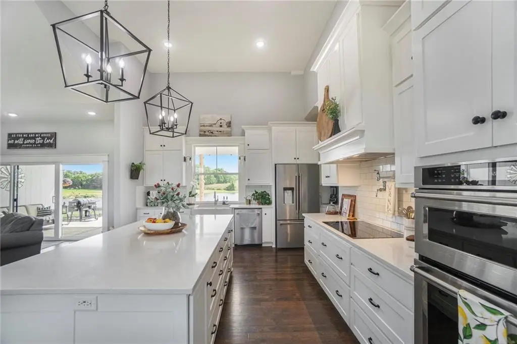 Welcome to your dream retreat! Nestled on just over 10 pristine acres with a private pond, this stunning custom-built home offers the perfect blend of luxury, comfort, and natural beauty! From the moment you pull into the drive, the charming front porch and serene setting set the tone for what awaits inside. Step through the front door into an open floor plan filled with soaring ceilings, walls of windows, and abundant natural light. The great room is the heart of the home, featuring a dramatic floor-to-ceiling stone fireplace flanked by built-ins, ideal for cozy evenings or large gatherings. The chef’s kitchen is a showstopper, designed with high-end finishes including a 9 island, quartz countertops and backsplash, farmhouse sink, pot filler, stainless steel appliances, coffee bar, double oven, and walk-in pantry. The kitchen flows seamlessly into the dining area, making entertaining effortless while overlooking breathtaking views of the pond and treed landscape. The main-level primary suite is a true retreat, offering a spa-like bathroom with soaking tub, walk-in shower, dual vanities, and an expansive walk-in closet. Also on the main floor are two additional bedrooms with a Jack-and-Jill bath, plus a convenient mudroom and laundry room located just off the suite. Upstairs, you’ll find a versatile bonus room, perfect for a home office, playroom, or creative space. The recently finished walkout lower level provides even more living space, complete with a large family room, kitchenette, full bath, fourth bedroom, and generous storage. Step outside to enjoy multiple outdoor living spaces, including an oversized patio with a hot tub that stays, perfect for relaxing, dining, or simply soaking in the sunsets over your private pond. Additional highlights include an oversized three-car garage with plenty of extra parking, and a location that offers peace and privacy while still being close to top-rated schools and conveniences. Schedule an apt for your dream home today!