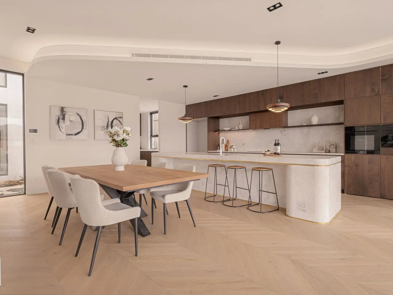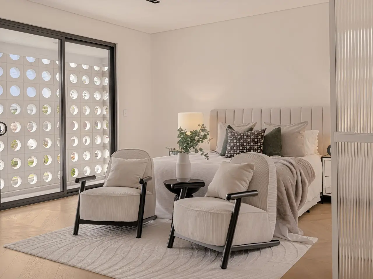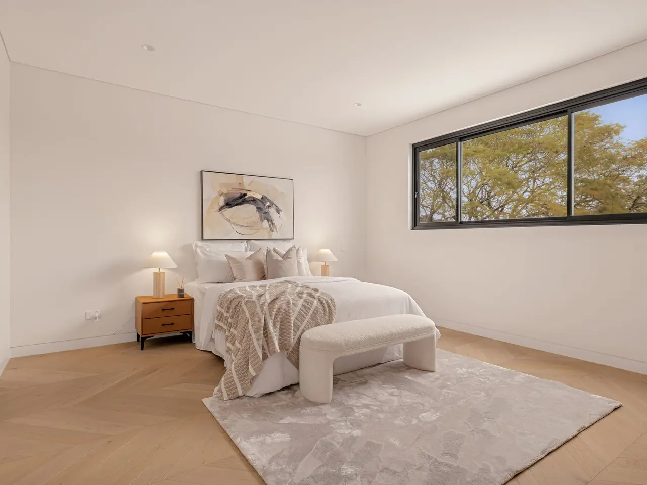 A statement of undeniable luxury, this remarkable home sets a new standard of sophistication and functionality. Meticulously crafted with top-tier finishes, it offers an impressive fusion of elegance and practicality that surpasses all expectations of family living. Its sleek interiors are awash with natural light and promote boundless space for entertaining, living and socializing on a grand or intimate scale. Set within 750 meters of Majors Bay dining and boutiques, the property is also mere footsteps from Concord Park. - Brand new luxury residence on a large 627square meters land parcel in convenient locale - Free-flowing design unveils a bright lounge/dining area with in-built cabinetry - Seamless indoor/outdoor flow to a covered alfresco terrace with a built-in barbecue - Elevated entertainer's deck includes a sparkling in-ground concrete pool - Unique secluded and private landscaped central garden/open atrium - Stone kitchen features stainless steel Miele gas appliances and walk-in pantry - Five generous bedrooms each with built-ins, two of the bedrooms are masters - Three bedrooms include ensuite bathrooms, bed one enjoys a private balcony - Custom-appointed main bathroom with floor-to-ceiling tiles and a rain shower - Upstairs study, bar area, ducted air-conditioning, down/sky lighting throughout - Double automatic garage with internal access, linen and under-stairs storage - Short walk to public transport, set within 1.6km from schools and Bayview Park