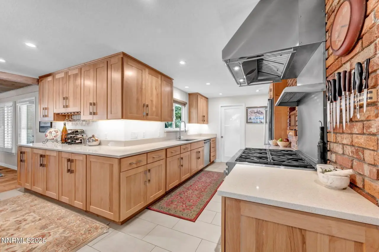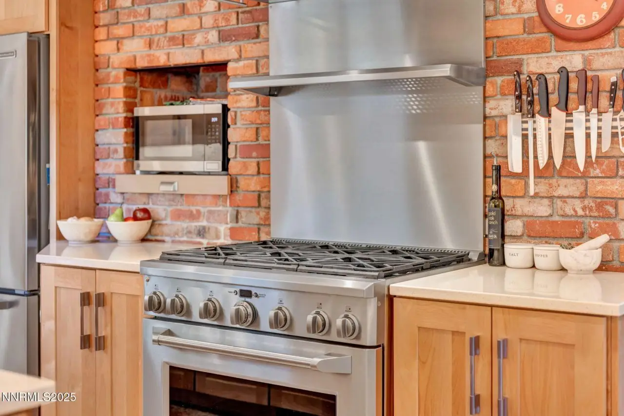 Tucked away in the heart of Old Southwest Reno, this updated gem blends timeless character with modern comfort. Set on a private .78-acre lot, the home offers space, privacy, and the charm of days gone by. The chef's kitchen takes center stage with Thomasville soft-close cabinetry, quartz countertops, and premium GE Monogram appliances-including a six-burner dual-fuel range, commercial-grade vent hood with warming shelf, built-in microwave drawer, and counter-depth KitchenAid French door refrigerator. The 9' x 44 island with wine fridge anchors the space, perfect for entertaining or casual dining. Inside, you'll find a Heat & Glo furnace-rated fireplace with a custom wood mantle, tile surround, and stone hearth. White-washed beams and tongue-and-groove ceilings add warmth to the family room, complemented by real hardwood flooring that extends into the office. The primary and second bathrooms have been fully and tastefully updated with tankless Toto toilets, Hansgrohe faucets, and flooring. The primary bath features a tiled shower, while the secondary bath offers an extra-deep soaking tub ideal for unwinding at the end of the day. The laundry/mudroom includes backyard access, additional Thomasville cabinetry, and butcher block counter and cabinet for extra storage. Major renovations throughout the home include electrical (The electrical panel was upgraded to a 120 amp panel - The Main is upgradable to 200 amps,) sheetrock, flooring, and more-there are simply too many interior updates to list, as this home was taken down to the studs and rebuilt with quality and craftsmanship in mind. Additional improvements include a tankless water heater and two furnaces and 2 A/C units-one furnace and both A/C systems were replaced just three years ago. Ceiling fans in the living room and all bedrooms, cove molding, and upgraded lighting throughout enhance both comfort and style. The primary suite opens to the serene backyard, offering a peaceful private retreat that captures the perfect balance between nostalgia and modern living. Out back, there's no lack of extra storage-a large storage container and multiple sheds provide ample space for tools and toys. For the gardener, raised garden containers with a drip system and a compost bin make homegrown living easy. Enjoy cool fall days and evenings gathered around the propane fire pit under the wide Nevada sky. In front, a paved patio with a tranquil Zen water feature adds charm and curb appeal. There's plenty of RV parking either in front of the custom decorative double-gated fence or along the large paved circular driveway-ensuring there's no shortage of parking for guests or recreational vehicles. Located just minutes from both US 395 and I-80, this home offers effortless access to ski resorts, Lake Tahoe, and Reno's best amenities. Enjoy nearby shopping, MidTown's eclectic charm, and Downtown Reno's vibrant food and entertainment scene. Outdoor lovers can take in the beauty of the Truckee River-whether enjoying a stroll on its scenic paths, casting a line, or rafting its lively waters. This lovingly renovated home truly offers it all: quiet space, low property taxes, and the best of Reno's timeless charm-just minutes from everything the city has to offer. Note: Seller is a licensed NV real estate agent.