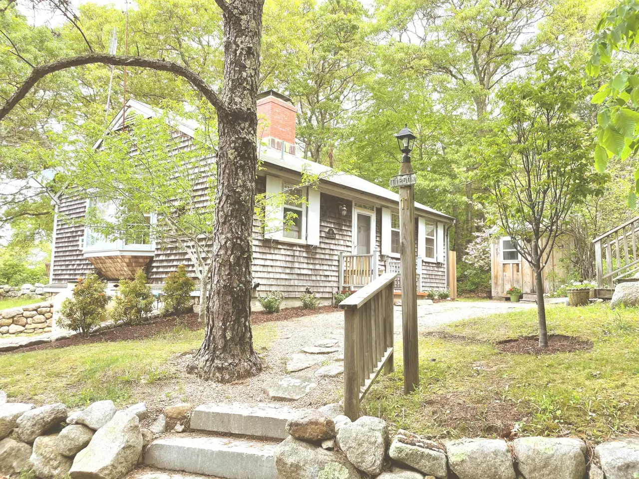 Charming cottage with spectacular water views across stone walls and rolling meadows to Vineyard Sound and the Elizabeth Islands. Set on 1.2 acres, this custom-built home was thoughtfully designed to embrace its serene surroundings, with wood and tile floors, a recent roof (2023), and an open-plan kitchen, dining, and living area framing commanding views of the water. Perched at the edge of the Cedar Tree Neck Sanctuary, miles of walking trails wind through cedar groves and down to the Sound, offering endless opportunities to explore nature. The home features a primary bedroom with waterviews, a den furnished as a bedroom, a 3 bedroom septic system, and an open floor plan with ample space to gather, plus an outdoor shower for rinsing off after beach days. A brick patio provides the perfect setting for morning coffee or al fresco dining. Two storage sheds add practicality for Vineyard living, while ownership includes access to West Tisbury's town beach, the coveted Lambert's Cove Beach for daily swims and unforgettable sunsets. A rare offering that combines natural beauty, privacy, and timeless Vineyard character.
