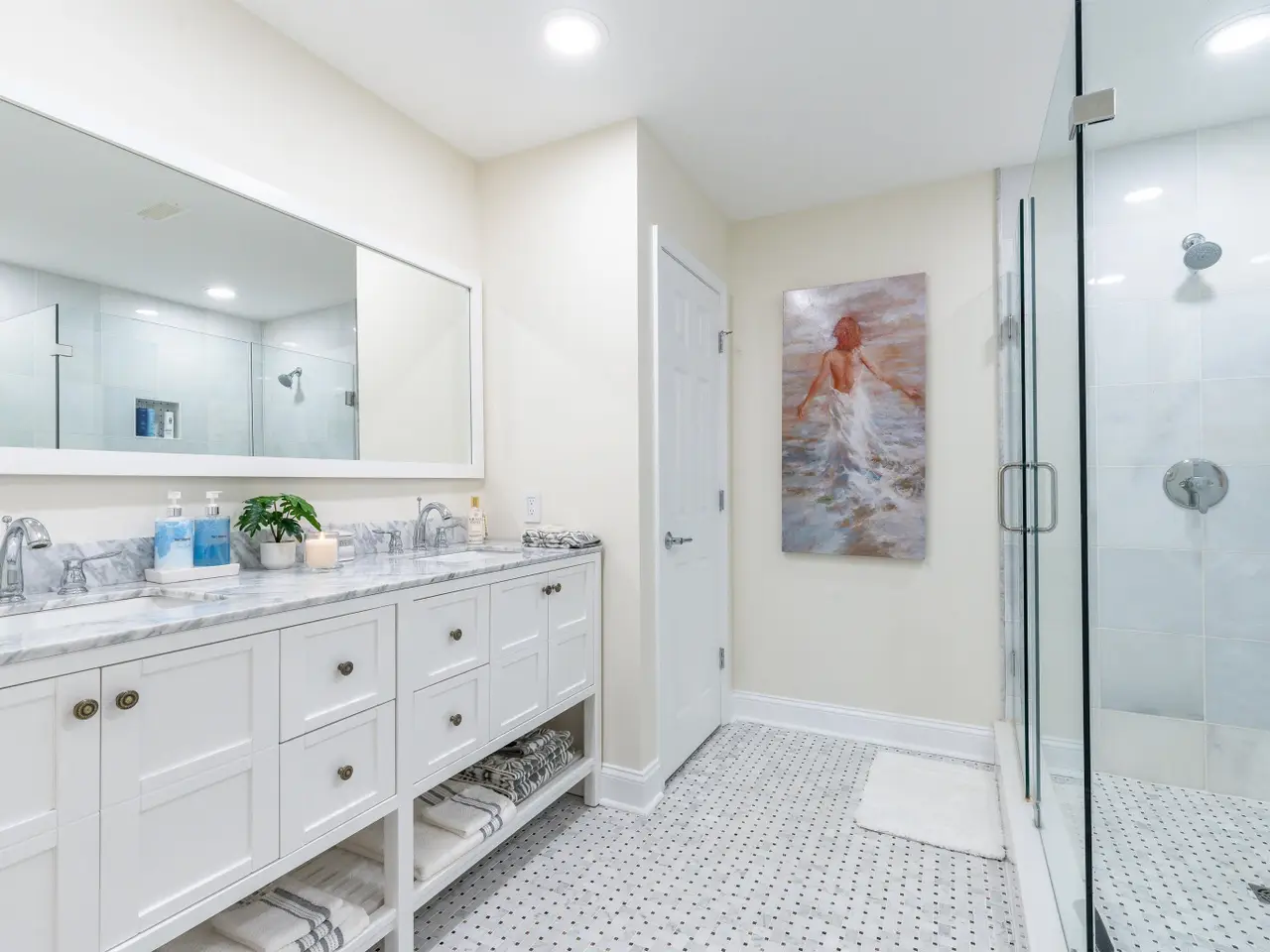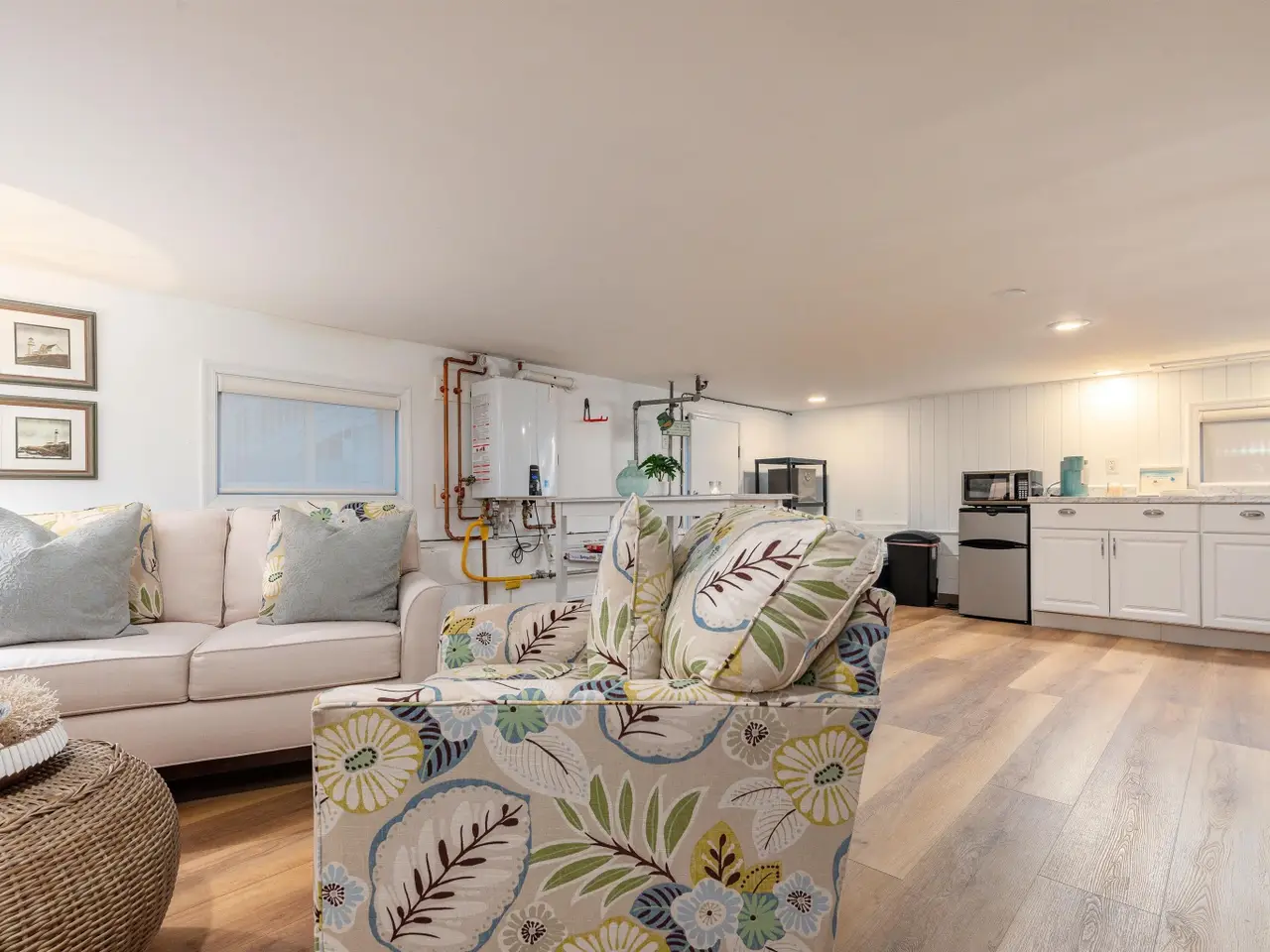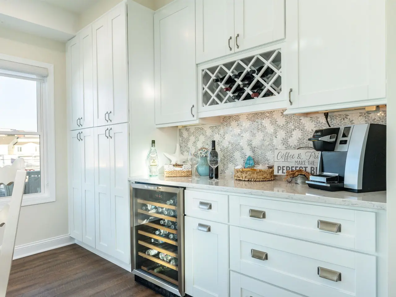 Your North Wildwood Sanctuary by the Sea! Step inside and feel the calm of coastal living wash over you. This stunning, fully updated North Wildwood retreat perfectly captures the magic of life by the ocean - where morning sunlight glimmers off the waves, the scent of salt air drifts through open doors, and every day feels like a seaside escape. For the current owners, this has been a peaceful haven - a place to gather with family, unwind after long days, and wake up to the soft sound of the surf. With 4 spacious bedrooms (including 2 luxurious master suites), 3 full baths, and 2 powder rooms, plus a finished lower-level suite with kitchenette and private entrance, this home blends comfort, elegance, and functionality in every square foot. The heart of the home - a bright, white chef's kitchen - is an entertainer's dream, featuring a 7.5' quartz island, Frigidaire Professional appliances, double pantries, an exquisite designer backsplash, and a coffee bar with a plumbed-in Keurig and wine fridge. It's the perfect place to cook, connect, and create memories. Open the sliders and let the sea breeze in as you relax on one of four expansive decks - three with sweeping ocean views - where sunrises are breathtaking, and Friday night fireworks feel close enough to touch. Upstairs, the primary suite is your private retreat in the sky, with panoramic ocean views and a marble spa bath designed for pure indulgence. Every detail of this home speaks of quality and care - from the gas fireplace with full stone surround to the custom window treatments, luxury vinyl flooring, and beautifully updated marble baths. The fenced backyard is ideal for entertaining, featuring a built-in stone dining table, outdoor shower, and lush new sod with irrigation. You'll love starting your mornings with coffee on the back deck, strolling across the street to Russo's Market, and being just steps from the beach and boardwalk. This is where luxury meets laid-back coastal charm - where every moment feels like vacation and every breeze reminds you, you're home. Don't miss this rare opportunity to own a piece of paradise. Come experience your private beachside oasis - your North Wildwood dream home awaits!