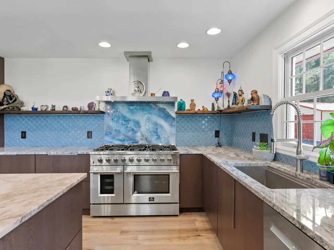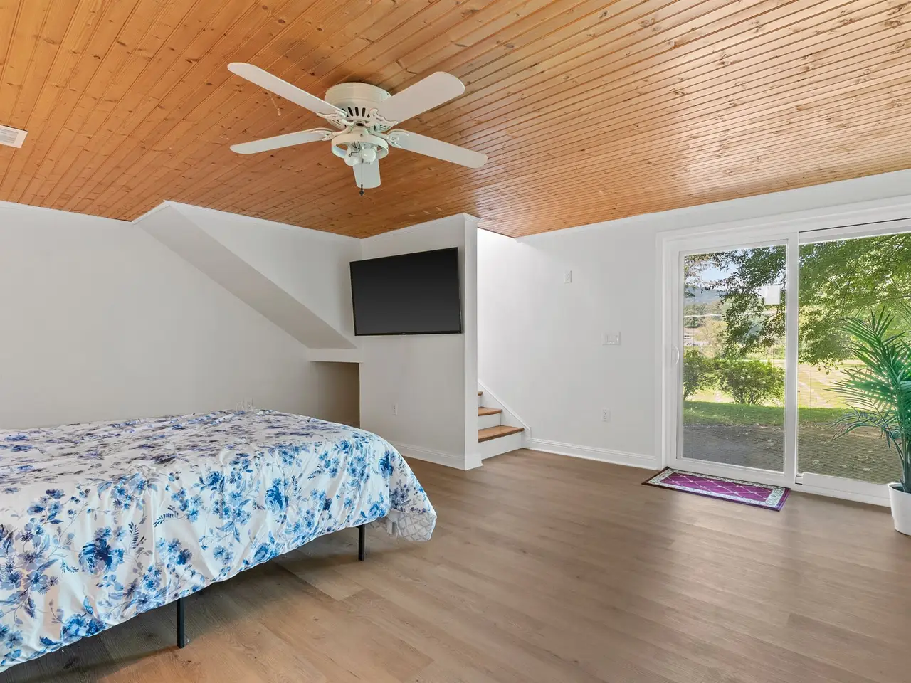 Unique and rare opportunity for riverfront living in Arden. Completely remodeled in 2024, this home offers a rare blend of modern design, versatile living spaces, and 226 feet of pristine French Broad River frontage?all on a subdividable 2.5-acre lot. With over 4,700 square feet, 4 bedrooms, and 4 baths, it's perfectly suited for both full-time living and entertaining. The home's open floor plan showcases soaring 14-foot ceilings and more than 20 windows that bathe the interiors in natural light. Facing west, the residence is perfectly positioned to capture breathtaking sunsets pouring into the main living spaces. At the heart of the home, a chef's kitchen features premium finishes and flows seamlessly into the dining and living areas, then out to a private deck overlooking the expansive backyard and riverfront.The lower level, with a separate address (213 Pinner Road) and its own entrance and full kitchen, offers an ideal in-law suite, guest quarters, or rental opportunity. A permitted detached 2-car garage provides convenience and flexibility, while a new whole-house generator with a 500-gallon propane tank ensures peace of mind.Outdoors, enjoy level acreage that leads gently to the river's edge?perfect for kayaking, fishing, or simply relaxing by the water. The property's size and subdivision potential make it a truly unique investment. With no HOA restrictions and legal approval for short-term rentals, this home presents exceptional income potential as well as lifestyle flexibility.Located just minutes from Asheville, Hendersonville, and Brevard?and only 5 minutes from the airport?this property combines accessibility with the tranquility of true riverfront living. A rare opportunity to own a move-in-ready estate that blends modern luxury, investment potential, and timeless mountain charm.