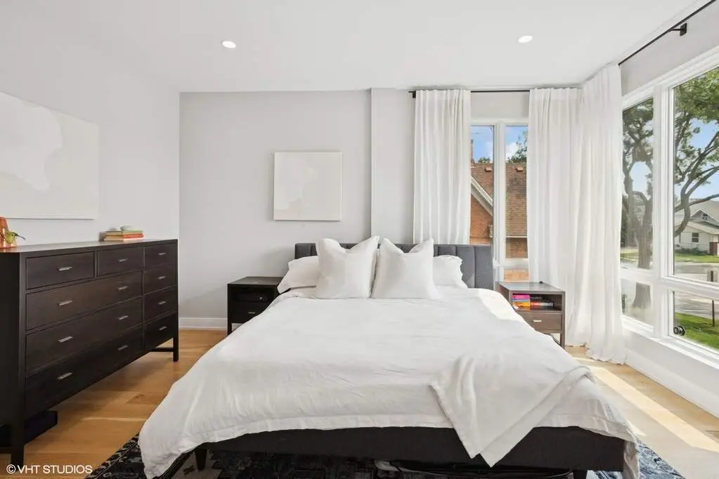 Refined living in this beautifully designed townhome, ideally located just steps from the vibrant center of Elmhurst. This expansive residence offers over 4,000 square feet of thoughtfully designed space, blending modern style with timeless comfort across four finished levels. The first floor welcomes you with a spacious foyer, a flexible office or bonus room, a powder room, and is elevator ready for added convenience. Continue into the open-concept main level featuring a chef's kitchen with high-end Thermador stainless steel appliances, quartz waterfall countertops, designer finishes, and a 9-foot island perfect for gathering. The kitchen flows seamlessly into the dining area and family room with a stunning gas fireplace, leading out through sliding doors to a private fenced yard with artificial turf - a low-maintenance outdoor retreat ideal for pets and entertaining. A well-organized mudroom with full closet connects to the attached two-car garage. Upstairs, the second floor hosts a relaxing primary suite with floor-to-ceiling windows, a spacious walk-in closet, and a beautifully appointed bath with dual sinks and an oversized shower. Two additional bedrooms, another full bath, and a generously sized laundry room complete this level. This is not your average laundry room. Thoughtfully designed for both function and style, it features ample cabinet storage, a deep utility sink, sleek retractable metal drying racks, a built-in retractable clothesline, and a professional Rowenta garment steamer. Say goodbye to ironing boards in the hallway or last-minute trips to the cleaners - this laundry space makes everyday tasks feel effortless. The third level is a standout feature - a 19' x 32' great room with 13 FOOT CEILINGS - dramatic windows, hardwood floors, a wet bar and a half bath. This flex space offers both an east-facing balcony for morning light and city views, and a west-facing covered rooftop terrace for entertaining and spectacular sunset views. The newly finished lower level offers a spacious family room, a fourth bedroom, a fully roughed-in bath and loads of storage. - perfect for a guest suite, second home office, home gym - endless possibilities. A rare opportunity to own a fabulous townhome in a vibrant downtown with modern energy and family-friendly charm."