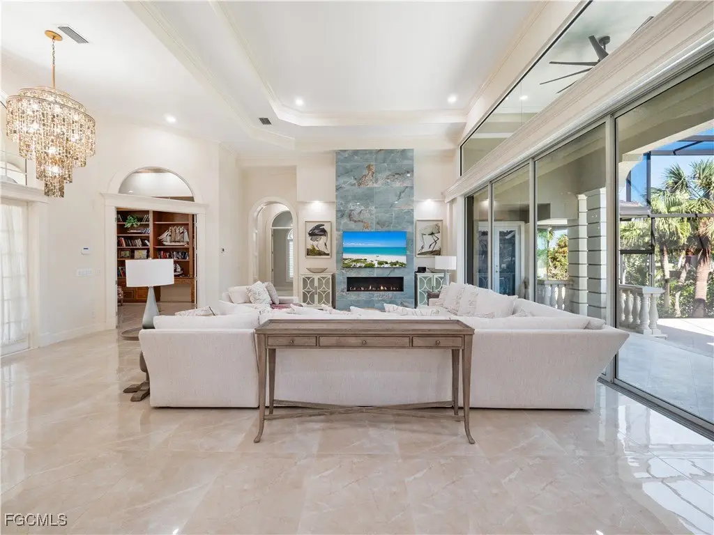 Experience coastal luxury in this elevated ground-level 4-bedroom, 4-bath pool home, designed for both comfort and style. The home features a dining room, den, eat-in kitchen with a breakfast bar, laundry room, and an oversized two-car garage and a NEW ROOF was installed in 2024. Step outside to a stunning outdoor pool area perfect for soaking up the sun. Inside, every detail has been updated with top-of-the-line finishes, including new kitchen cabinets, exquisite Taj Mahal quartz countertops, high-end appliances, and a whole-house music system. Enjoy porcelain tile flooring,push-button living room screens, and a captivating fireplace feature. Additional upgrades include new chandeliers,push-button fans, impact windows and doors, and fresh landscaping with lush plants and palm trees. Located in the coveted Beachview Estates, you'll have exclusive access to one of only two private beach entry points, whether you choose to walk or park your car nearby. Don't miss this exceptional home!