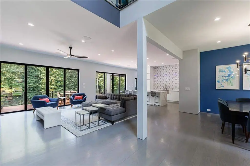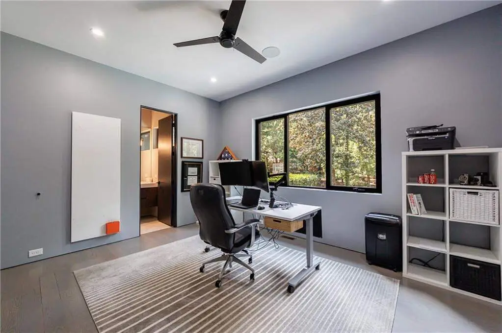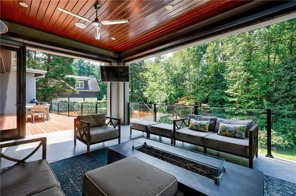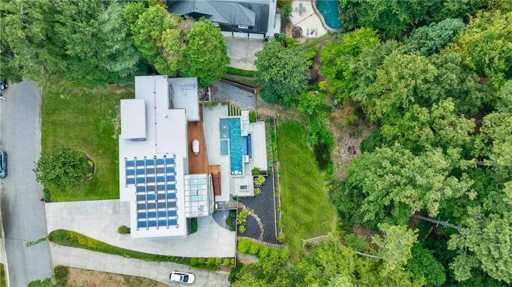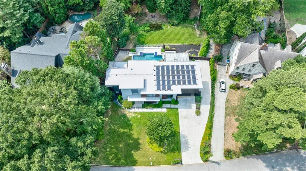 Tucked away on a quiet, tree-lined street in the heart of Buckhead, this exceptional modern residence sits on a private and expansive 0.83+/-acre lot-just minutes from top-rated schools, premier shopping, PATH 400, and all that Atlanta has to offer. From the moment you enter, the home captivates with its light-filled, open-concept main level, soaring ceilings, and clean, contemporary lines. The spacious great room seamlessly flows into a stunning chef's kitchen, featuring a dramatic quartz waterfall island, top-of-the-line Miele and Sub-Zero appliances, custom soft-close cabinetry, and double ovens, including a steam oven. The main level offers a formal dining room, a dedicated home office, and a private guest suite with a full bath. A spacious two-car garage with soaring 16-foot ceilings is also located on this level, the garage already has an indoor basketball hoop but could also be transformed into a car lift system, making it a perfect fit for automotive enthusiasts or collectors. The two car garage is complete with two electric car chargers. Another feature of the home is a total of seven electric shades throughout the house, the electric shades on the main living area doors can remain open while keeping out the sun, insects etc. The two electric shades on the covered outdoor deck on the main level can transform the space from an open-air setting to a fully enclosed screened porch - a truly impressive and versatile feature. A modern staircase leads to the upper level, where you'll find three generously sized en-suite bedrooms, plus a versatile bonus room ideal as a second office or a fourth upstairs bedroom. The primary suite is a true retreat with a spacious walk-in closet and a luxurious spa-inspired bathroom, complete with a steam shower and Japanese insulated soaking tub-perfect for hot/cold plunge therapy. The finished terrace level includes a guest bedroom, home gym, media room, and an oversized single garage-an ideal setup for an au pair or in-law suite with private exterior access. Each level of the home offers seamless indoor-outdoor living, with over 2, 000 square feet of deck and patio space. Step outside to your resort-style backyard oasis, where you'll find a breathtaking infinity-edge pool with waterfalls, integrated spa, fire pit, and a level lawn-perfect for play, entertaining, or simply relaxing in total privacy. Designed with sustainability and quality in mind, this home features a solar array with battery backup, spray foam insulation, and energy-efficient windows for optimal comfort and efficiency. Premium materials include a durable TPO roof, IPE wood cladding and decking, modern solid wood doors, architectural hard plank, and stucco exterior-blending cutting-edge design with timeless craftsmanship.