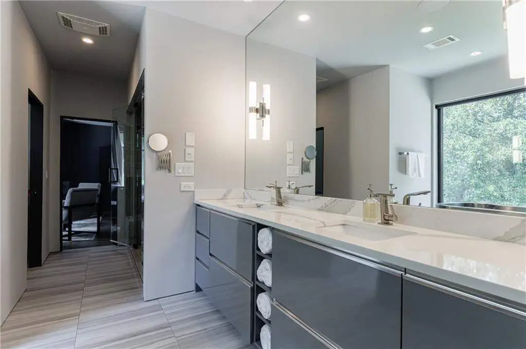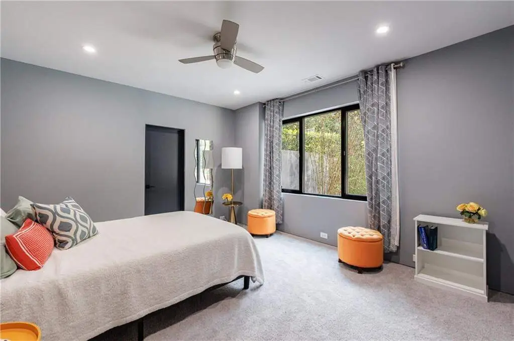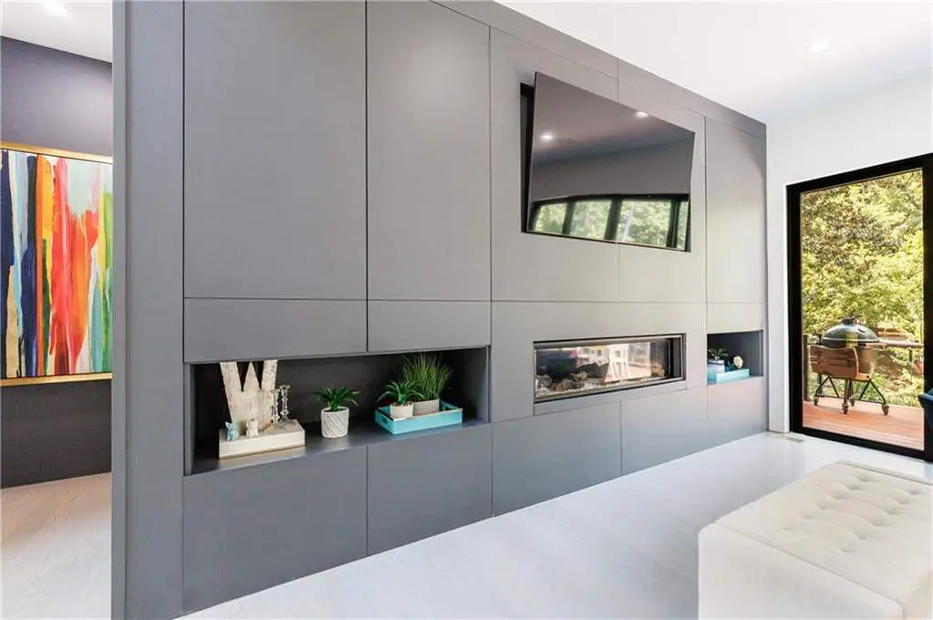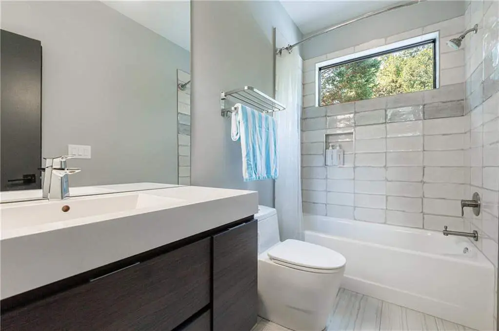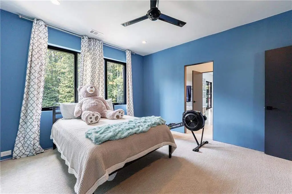 Tucked away on a quiet, tree-lined street in the heart of Buckhead, this exceptional modern residence sits on a private and expansive 0.83+/-acre lot-just minutes from top-rated schools, premier shopping, PATH 400, and all that Atlanta has to offer. From the moment you enter, the home captivates with its light-filled, open-concept main level, soaring ceilings, and clean, contemporary lines. The spacious great room seamlessly flows into a stunning chef's kitchen, featuring a dramatic quartz waterfall island, top-of-the-line Miele and Sub-Zero appliances, custom soft-close cabinetry, and double ovens, including a steam oven. The main level offers a formal dining room, a dedicated home office, and a private guest suite with a full bath. A spacious two-car garage with soaring 16-foot ceilings is also located on this level, the garage already has an indoor basketball hoop but could also be transformed into a car lift system, making it a perfect fit for automotive enthusiasts or collectors. The two car garage is complete with two electric car chargers. Another feature of the home is a total of seven electric shades throughout the house, the electric shades on the main living area doors can remain open while keeping out the sun, insects etc. The two electric shades on the covered outdoor deck on the main level can transform the space from an open-air setting to a fully enclosed screened porch - a truly impressive and versatile feature. A modern staircase leads to the upper level, where you'll find three generously sized en-suite bedrooms, plus a versatile bonus room ideal as a second office or a fourth upstairs bedroom. The primary suite is a true retreat with a spacious walk-in closet and a luxurious spa-inspired bathroom, complete with a steam shower and Japanese insulated soaking tub-perfect for hot/cold plunge therapy. The finished terrace level includes a guest bedroom, home gym, media room, and an oversized single garage-an ideal setup for an au pair or in-law suite with private exterior access. Each level of the home offers seamless indoor-outdoor living, with over 2, 000 square feet of deck and patio space. Step outside to your resort-style backyard oasis, where you'll find a breathtaking infinity-edge pool with waterfalls, integrated spa, fire pit, and a level lawn-perfect for play, entertaining, or simply relaxing in total privacy. Designed with sustainability and quality in mind, this home features a solar array with battery backup, spray foam insulation, and energy-efficient windows for optimal comfort and efficiency. Premium materials include a durable TPO roof, IPE wood cladding and decking, modern solid wood doors, architectural hard plank, and stucco exterior-blending cutting-edge design with timeless craftsmanship.