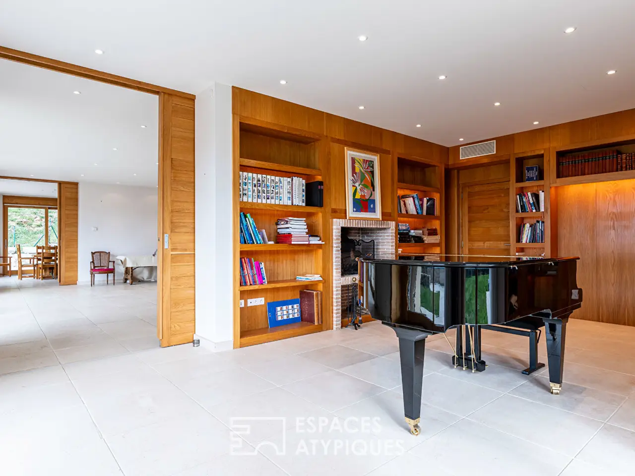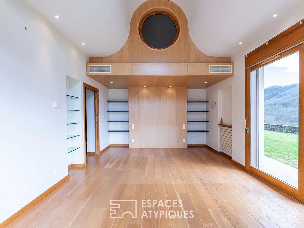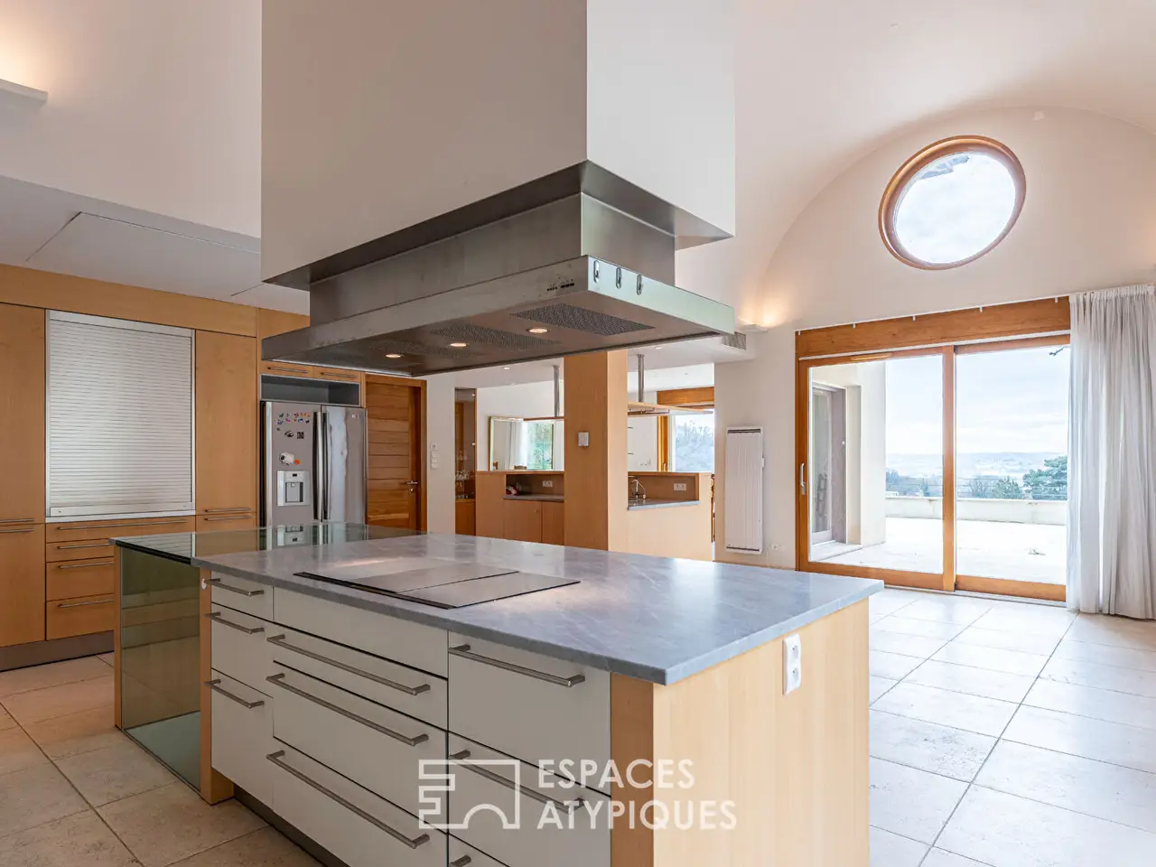 Architect-Designed House with Swimming PoolNestled in a preserved environment near Saint-Genix-sur-Guiers, this architect-designed property of approximately 600 m2 blends harmoniously into a private estate of about 4.5 hectares.Designed to offer generous spaces and abundant natural light, it features high-end amenities, including an elevator, a pool house, and numerous outbuildings. Its fluid layout and multiple relaxation areas make it a truly exceptional property.Upon entering, a vast hall sets the tone and leads to a living room with an open fireplace, a dining room adjoining a fully equipped kitchen with a pantry, and a cozy, more intimate lounge. A study with a mezzanine, as well as a bedroom with a dressing room and en-suite bathroom, complete this level.Upstairs, the night area consists of three bedrooms with private bathrooms, an office, and a refined master suite featuring two dressing rooms and an elegant bathroom.The top floor, entirely dedicated to well-being, offers a relaxation space with a jacuzzi, a rest area, and a shower.The basement houses a cinema room, a music room, a wine cellar, and a photography lab, along with an underground garage accessible via a tunnel.The outdoor setting is enchanting, with lush greenery and a peaceful ambiance, where multiple terraces provide privacy and serenity. A swimming pool with a fully equipped pool house enhances the enjoyment of warm days.Several outbuildings totaling nearly 500 m2 complete the estate, including garages, an orangery, wood storage areas, and technical and storage facilities.Just minutes from amenities, schools, and major roads, this property offers an exceptional living environment where nature and contemporary architecture blend seamlessly.ENERGY CLASS: D / CLIMATE CLASS: DEstimated average annual energy costs for standard use, based on 2021 energy prices: between €6,060 and €8,240.REF. 1938EAAdditional information* 24 rooms* 5 bedrooms* 4 bathrooms* 2 shower rooms* Outdoor space : 45695 SQM* Parking : 10 parking spaces* Property tax : 6 421 €Energy Performance CertificatePrimary energy consumptiond : 131 kWh/m2.yearHigh performance housing*A*B*C*131kWh/m2.year37*kg CO2/m2.yearD*E*F*GExtremely poor housing performance* Of which greenhouse gas emissionsd : 37 kg CO2/m2.yearLow CO2 emissions*A*B*C*37kg CO2/m2.yearD*E*F*GVery high CO2 emissionsEstimated average amount of annual energy expenditure for standard use, established from energy prices for the year 2021 : between 6060 € and 8240 €Agency fees* Fees charged to the purchaser : 80 000 €MediatorMediation Franchise-Consommateurswww.mediation-franchise.com29 Boulevard de Courcelles 75008 ParisInformation on the risks to which this property is exposed is available on the Geohazards website : www.georisques.gouv.fr