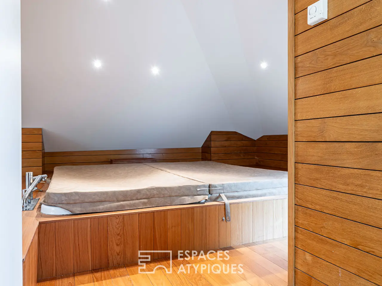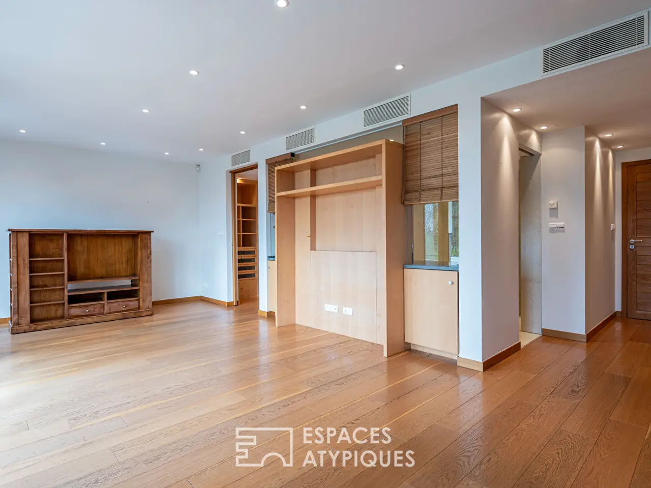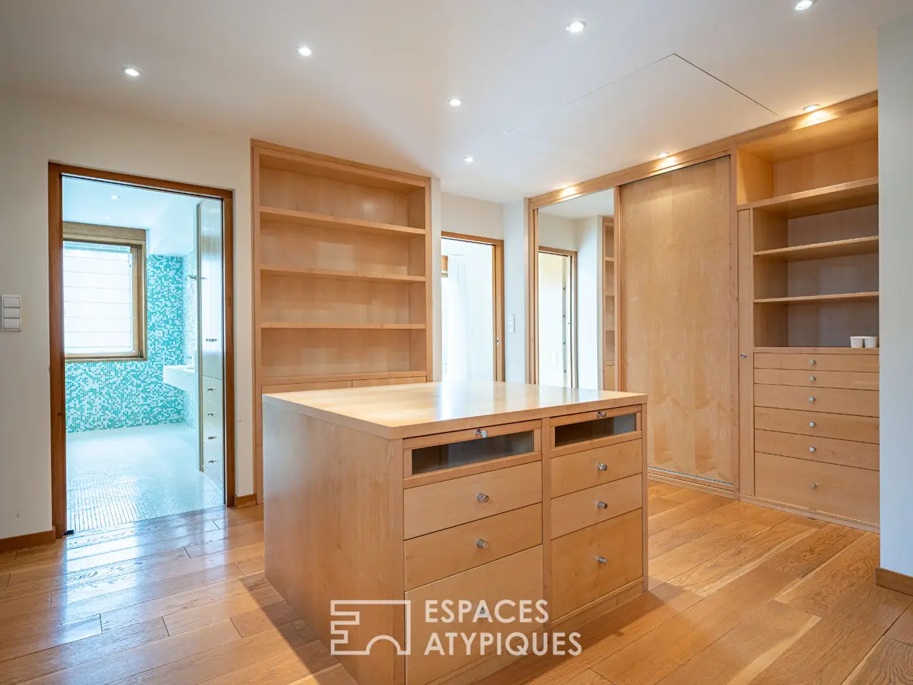 Architect-Designed House with Swimming PoolNestled in a preserved environment near Saint-Genix-sur-Guiers, this architect-designed property of approximately 600 m2 blends harmoniously into a private estate of about 4.5 hectares.Designed to offer generous spaces and abundant natural light, it features high-end amenities, including an elevator, a pool house, and numerous outbuildings. Its fluid layout and multiple relaxation areas make it a truly exceptional property.Upon entering, a vast hall sets the tone and leads to a living room with an open fireplace, a dining room adjoining a fully equipped kitchen with a pantry, and a cozy, more intimate lounge. A study with a mezzanine, as well as a bedroom with a dressing room and en-suite bathroom, complete this level.Upstairs, the night area consists of three bedrooms with private bathrooms, an office, and a refined master suite featuring two dressing rooms and an elegant bathroom.The top floor, entirely dedicated to well-being, offers a relaxation space with a jacuzzi, a rest area, and a shower.The basement houses a cinema room, a music room, a wine cellar, and a photography lab, along with an underground garage accessible via a tunnel.The outdoor setting is enchanting, with lush greenery and a peaceful ambiance, where multiple terraces provide privacy and serenity. A swimming pool with a fully equipped pool house enhances the enjoyment of warm days.Several outbuildings totaling nearly 500 m2 complete the estate, including garages, an orangery, wood storage areas, and technical and storage facilities.Just minutes from amenities, schools, and major roads, this property offers an exceptional living environment where nature and contemporary architecture blend seamlessly.ENERGY CLASS: D / CLIMATE CLASS: DEstimated average annual energy costs for standard use, based on 2021 energy prices: between €6,060 and €8,240.REF. 1938EAAdditional information* 24 rooms* 5 bedrooms* 4 bathrooms* 2 shower rooms* Outdoor space : 45695 SQM* Parking : 10 parking spaces* Property tax : 6 421 €Energy Performance CertificatePrimary energy consumptiond : 131 kWh/m2.yearHigh performance housing*A*B*C*131kWh/m2.year37*kg CO2/m2.yearD*E*F*GExtremely poor housing performance* Of which greenhouse gas emissionsd : 37 kg CO2/m2.yearLow CO2 emissions*A*B*C*37kg CO2/m2.yearD*E*F*GVery high CO2 emissionsEstimated average amount of annual energy expenditure for standard use, established from energy prices for the year 2021 : between 6060 € and 8240 €Agency fees* Fees charged to the purchaser : 80 000 €MediatorMediation Franchise-Consommateurswww.mediation-franchise.com29 Boulevard de Courcelles 75008 ParisInformation on the risks to which this property is exposed is available on the Geohazards website : www.georisques.gouv.fr