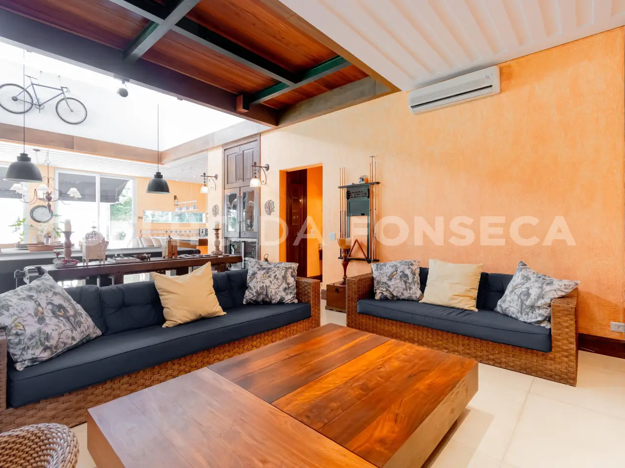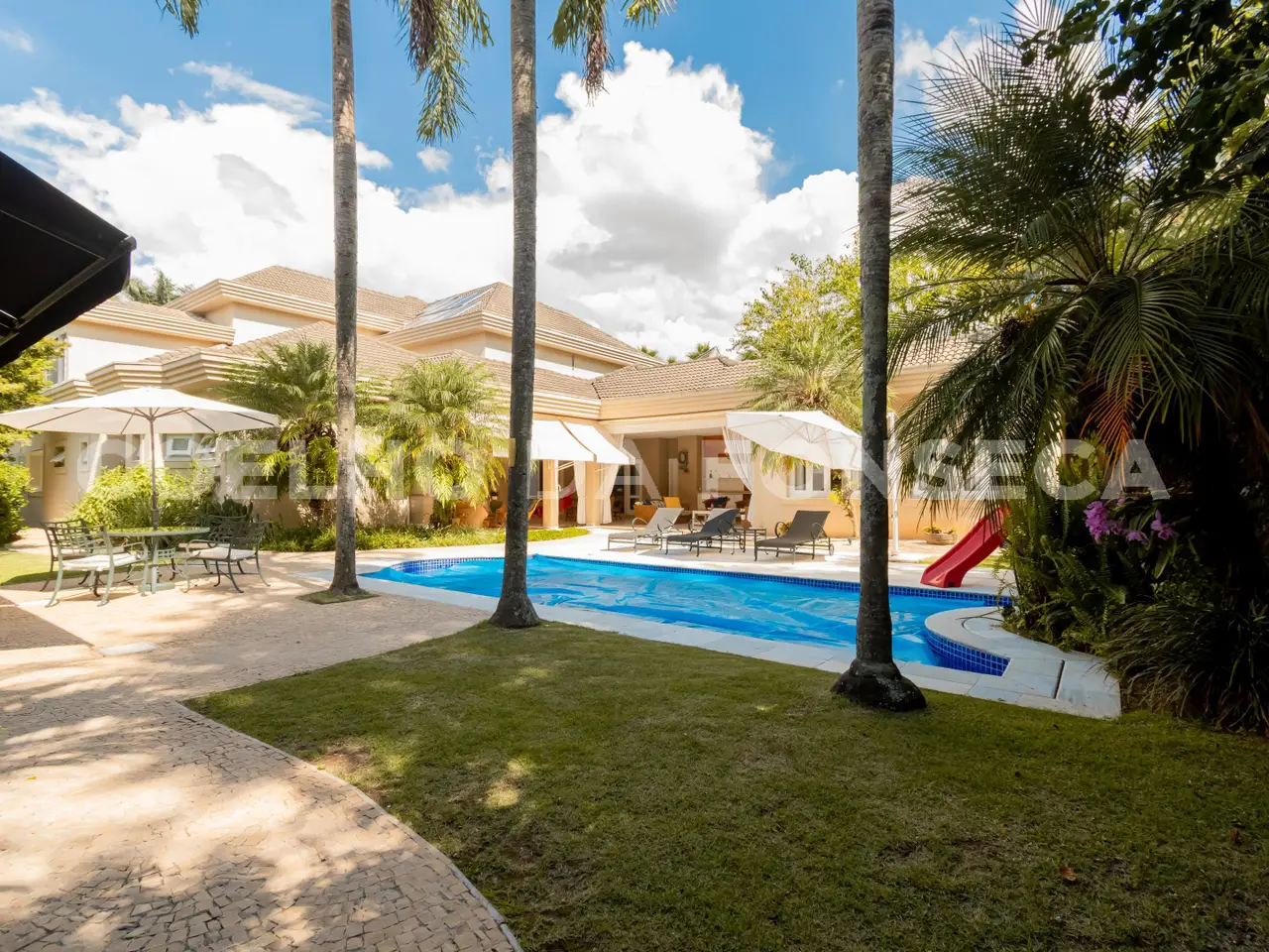 House on a quiet street, with a large garden and framed by large balconies, giving it a country house feel. There are 4 large suites with walk-in closets on the ground floor, and the other two are located on the upper floor, ideal for families with adult children who share the same address. Since the functional part of the house is on the ground floor, the house becomes very functional. Social space with large home theater, living room with double height ceiling and vaulted ceiling, which gives style to the architecture of the house and plenty of natural light. Kitchen and dining room next to the gourmet balcony equipped with pizza oven and playroom. Swimming pool surrounded by lush tropical landscaping and plenty of sun. Very large party room with several rooms with full gourmet space, games room and a large balcony, ideal for families who enjoy socializing with friends and seek sophistication and privacy. Underground garage for 10 cars. Privileged location in the condominium, close to tennis and beach tennis courts. Complete condominium with modern gym, sports courts and many squares for outdoor walking. Tambore III is one of the best and most valued condominiums in Alphaville, providing security and quality of life for your family. House in the TAMBORÉ III condominium, with 1000m² built area, 6 bedroom(s), 6 suite(s), 16 parking space(s), 8 bathroom(s).