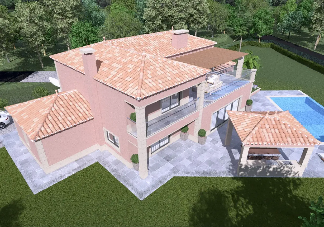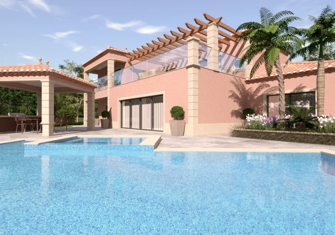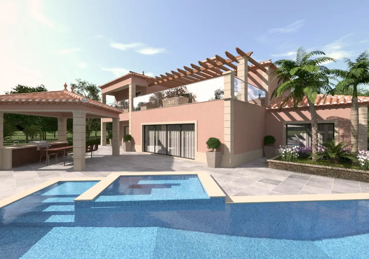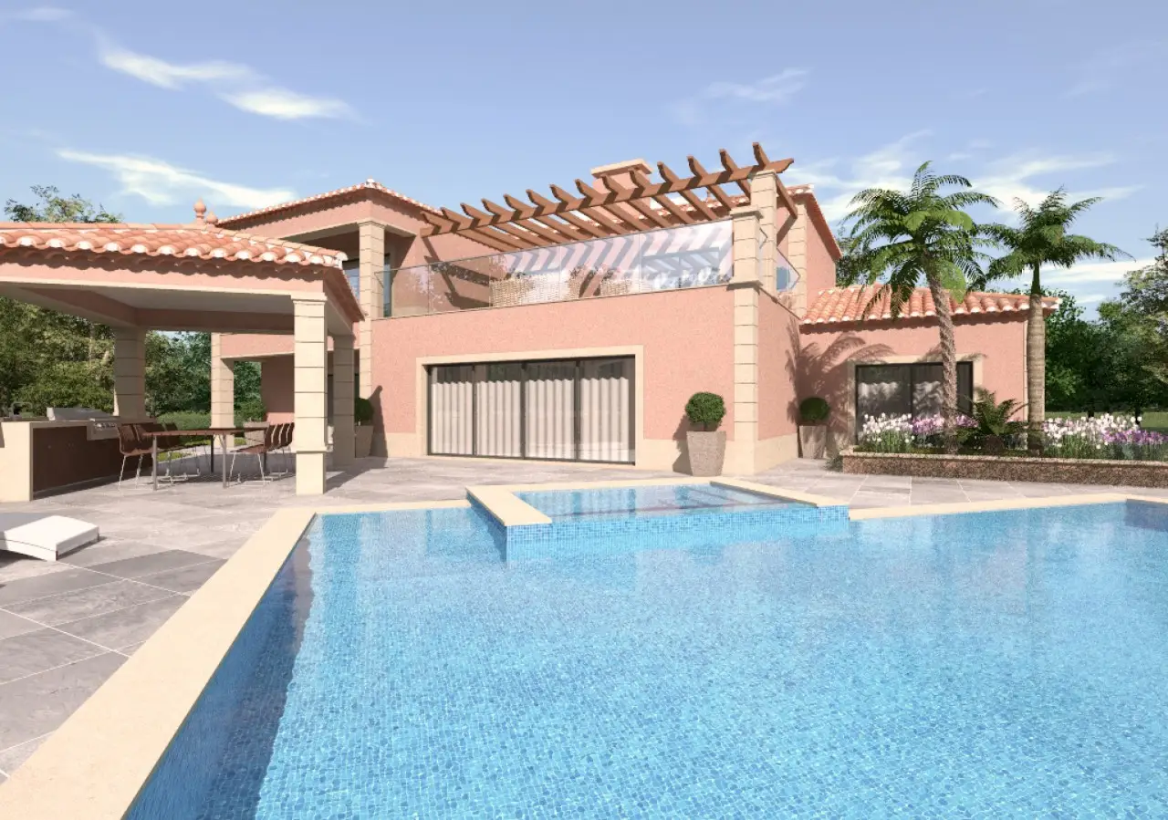 Luxury 4 bedroom villa, in construction phase, located in the highly sought after area of Alvor, near to the golf course of Penina Hotel & Golf Resort. The property boasts traditional style with all the modern conveniences, from underfloor heating to domotics system and photovoltaic panels. The property is fitted with air conditioning system throughout, aswell as a central vacuum system. Distributed over two floors, located on the ground floor, is a spacious living room with contemporary fireplace in open plan style with dining area. From here, there is direct access to the modern fitted kitchen, which offers access to a covered terrace perfect for outdoor dining. From the kitchen, there is also access to the laundry room and to the garage. Located on the ground floor are two large bedrooms, both with walk in closets and en suite bathrooms. On this floor there is also a service bathroom. On the first floor are located two more bedrooms, both with walk in closets, en suite bathrooms, and their own private, covered terraces, which are south facing. On the exterior of the property, there is a large garden, a heated infinity pool, a jacuzzi, a barbecue area, as well as space for additional parking. Only a few minutes by car to both the quaint fishing village of Alvor and the city of Portimão, stunning beaches, golf courses, shopping and leisure activities are all easily accessible. Approximately 50 minutes to Faro International Airport, with clear access to the A22 and N125. CHARACTERISTICS: Plot Area: 1 360 m2 | 14 639 sq ft Area: 350 m2 | 3 767 sq ft Building Area: 350 m2 | 3 767 sq ft Bedrooms: 4 Bathrooms: 5 Garage: 2 Energy efficiency: A FEATURES: Four en suite bedrooms Fully equipped kitchen Heated swimming pool Jacuzzi Barbecue Air conditioning Central vacuum Underfloor heating Home automation system Photovoltaic panels Covered terraces