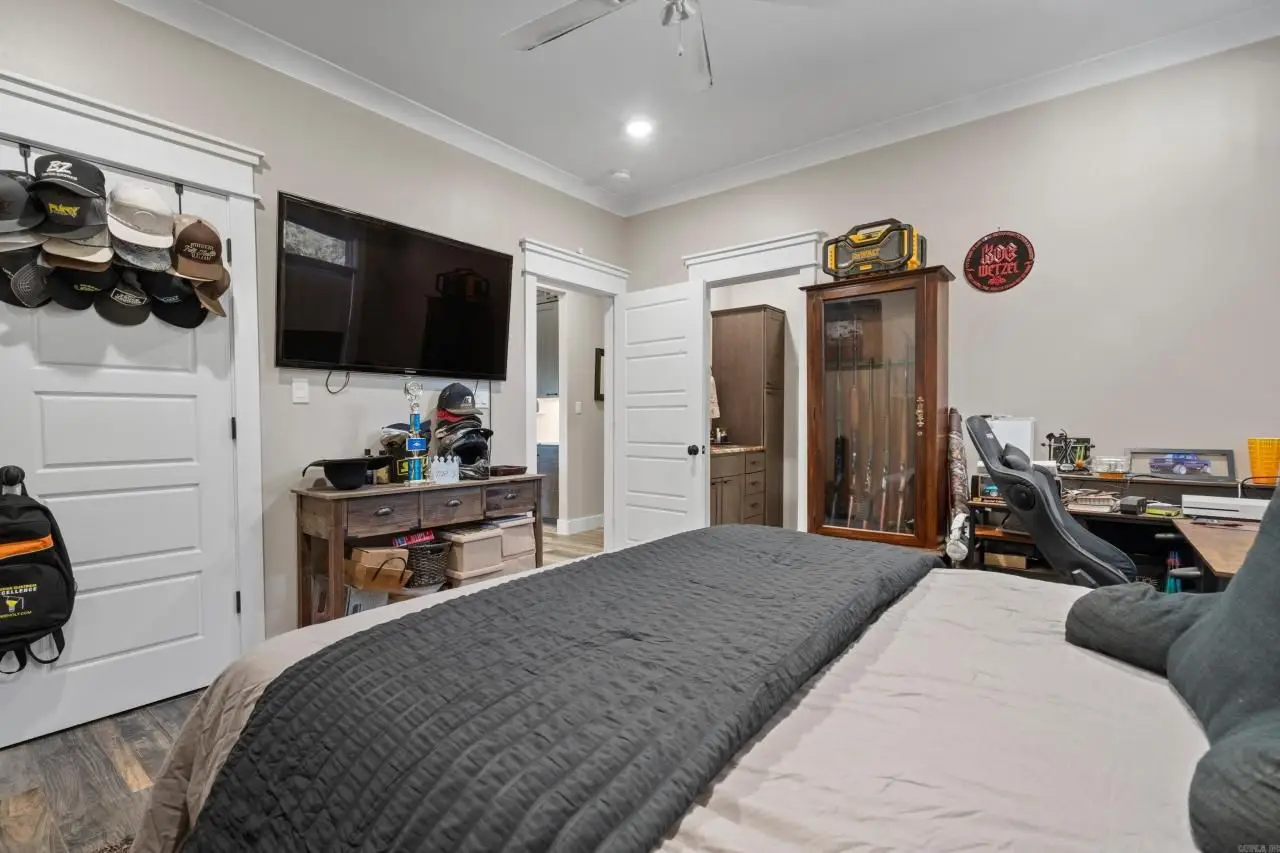 Discover the epitome of luxury living in the West Winds Subdivision with this meticulous 4-bedroom, 3.5-bathroom custom home.Spanning approximately 3,652 square feet, this spacious residence offers an impressive array of amenities. Enjoy movie nights in your private theater, or entertain guests in the outdoor area featuring a kitchen, fireplace, and a stunning swimming pool complete with a diving board and sun deck. The 3.5-car garage provides ample space for vehicles and storage. Inside, you'll find exquisite Italian porcelain rectified plank flooring with Ditra underlayment, ensuring both durability and elegance. The home is equipped with spray foam envelope insulation and advanced HVAC inverter technology for extreme efficiency. Additional features include tankless water heaters, 21kw whole house generator, and a smart home system with WiFi-controlled thermostat, garage doors, light switches, appliances, andRing security cameras. The climate-controlled garage adds to the convenience and comfort of this home, all situated within the highly sought-after Lake Hamilton School District. Lake Access