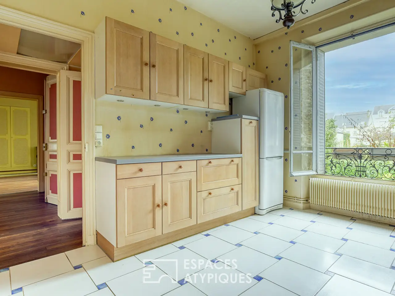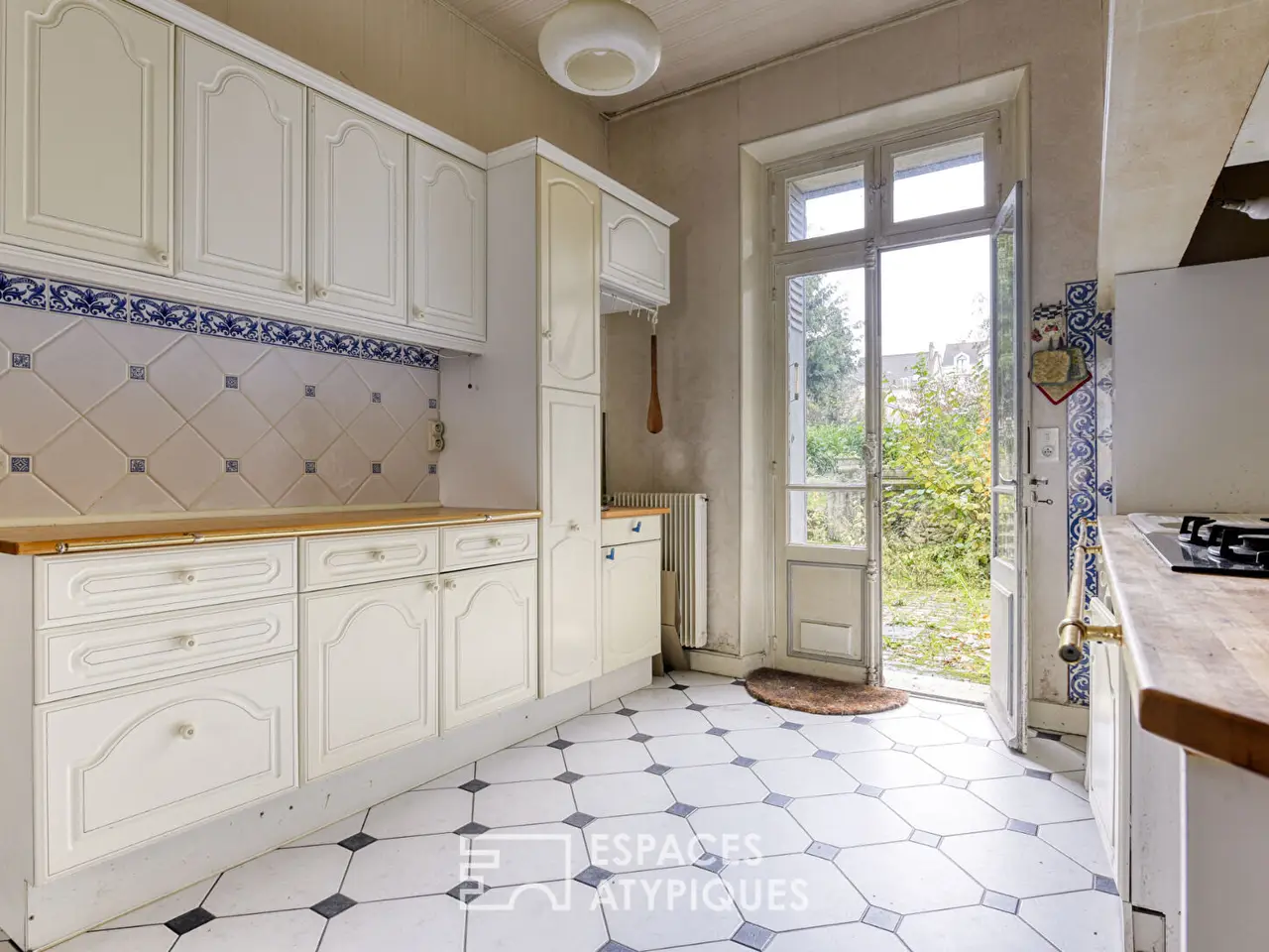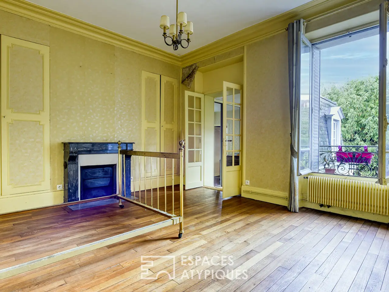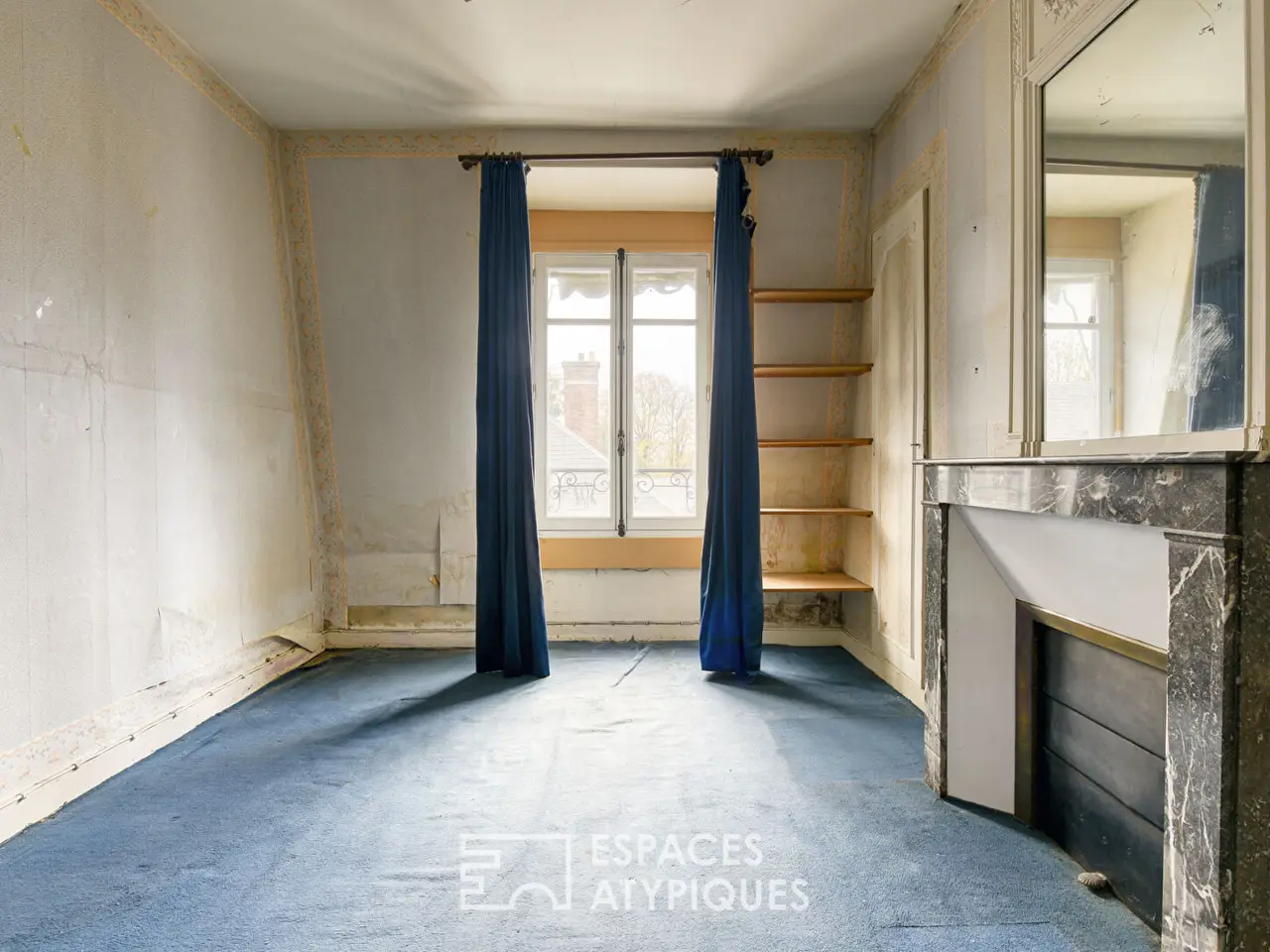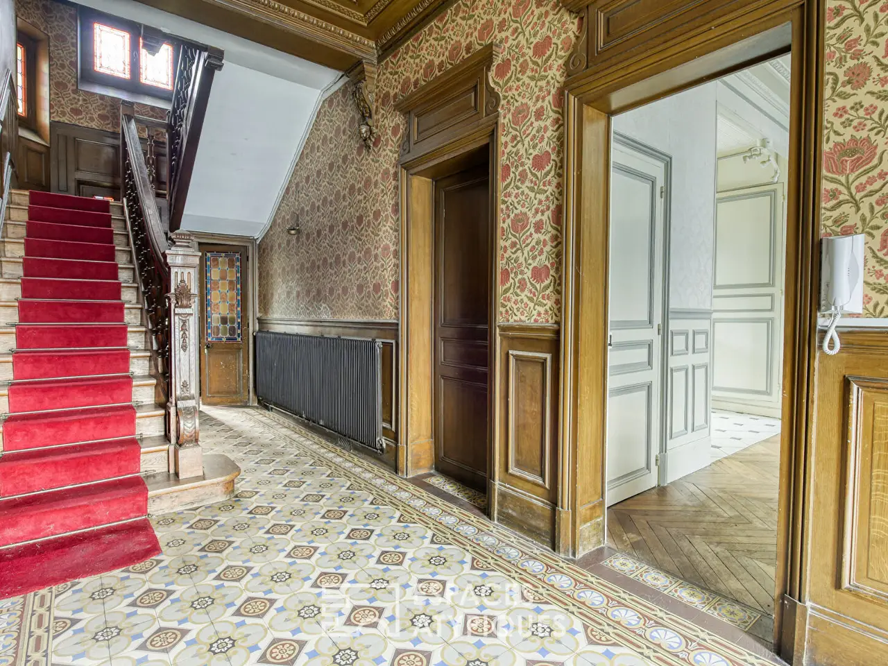 Behind its large and discreet town house facade hides a real treasure: Built on an enclosed garden of 1324 m2 with small outbuildings and garage, in one of the city's shopping streets, this large family house stands out as a blank page to re-write. Its beautiful volumes and period materials provide inspiration for imagining a unique decor. Its vast entrance hall worthy of a cinema set, serves on the ground floor a fitted kitchen overlooking the garden, a dining room with fireplace, a living room with fireplace and a master suite consisting of a bedroom, a dressing room and a bathroom. The upper floors are accessed via a beautiful period wooden staircase. The first floor is currently converted into an apartment including: an entrance, a fitted kitchen, a dining room, an office, a living room, a bedroom, a dressing room, a bathroom and toilets. Finally, the second floor accommodates 5 bedrooms, 2 bathrooms and toilet. Several cellars in the basement complete this rare and atypical property. Wooden moldings, solid parquet floors, cement tiles and marble fireplaces could be the starting point of a new life for this unique family home. Shops and schools on foot. Rambouillet station 9 minutes walk. Middle and high schools 10 minutes away on foot. ENERGY CLASS: E 46 / CLIMATE CLASS: D 46. Estimated average amount of annual energy expenditure for standard use, established based on energy prices for the year 2021: between EUR4,030 and EUR5,520 REF. 0945EY Additional information * 12 rooms * 9 bedrooms * 2 bathrooms * 2 shower rooms * 3 floors in the building * Outdoor space : 1324 SQM * Parking : 2 parking spaces * Property tax : 3 000 €