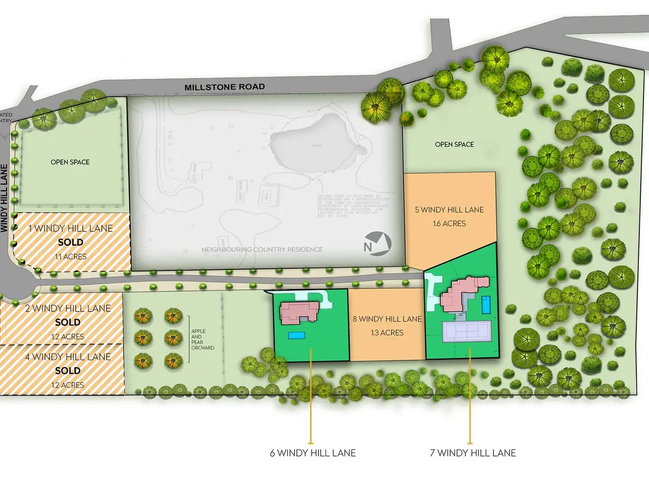 Exceptional, newly constructed and state of the art. A gorgeous new home in an equally stunning setting. Located within the private, 23+/- acre community of Windy Hill Farm in Bridgehampton the property is a sprawling 1.6+/- acre parcel, with pool and tennis, at the end of a cul-de-sac and overlooking open fields. The residence will be built to the highest standards of design and feature 9 bedrooms, 8 full bathrooms and one half bath across 6,875+/- sf of living space as well as a host of amenities including a rock climbing wall and sauna on the lower level, Tesla charging station, hydronic radiant floor heat in the garage and basement, a solar energy system and smart home tech. Finest materials and exquisite craftsmanship melding with architectural details including high ceilings, walls of glass, indoor and outdoor fireplaces, and a standing seam metal roof. The foyer opens into a perfectly designed floor plan. The east wing of the home features a living room, beautiful office, and 2 bedrooms suites. The west side offers a professional chef's kitchen, open to the family room, with large butler's pantry and breakfast area. An expansive covered porch, right off the kitchen and family room is stylish place to lounge in the glow of the outdoor fireplace. State of the art tech can be found throughout, adding to a sense of comfort and convenience. The entire home is prewired for Sonos. The bedrooms are elegant, nearly all with en suite baths. Both the primary and junior primary suites offer luxurious accommodation to relax and unwind. The walk-out lower level features a glassed gym area with access to the lower court and and Tennis beyond, sauna, game room wine closet, ample storage, and 2 bedrooms sharing a bath. Outside, the lush, well-manicured grounds will surround a gunite infinity swimming pool, tennis court, and offer pasture views. Option may be available during the pre-construction period to custom build a pool house or accessory structure for up to 3 horses with cost depending on the buyer's final choices of amenities. 13+ acres of the Windy Hill Farm community will be preserved as common open space for the exclusive use of the homeowners inclusive of a 100-year-old apple orchard and a planned horse pasture. A homeowner association will manage the usage of the space to insure it preserves the bucolic nature of the community. Located in Bridgehampton, NY, a hamlet long renowned for idyllic estates, historic horse farms and exceptional equestrian events.