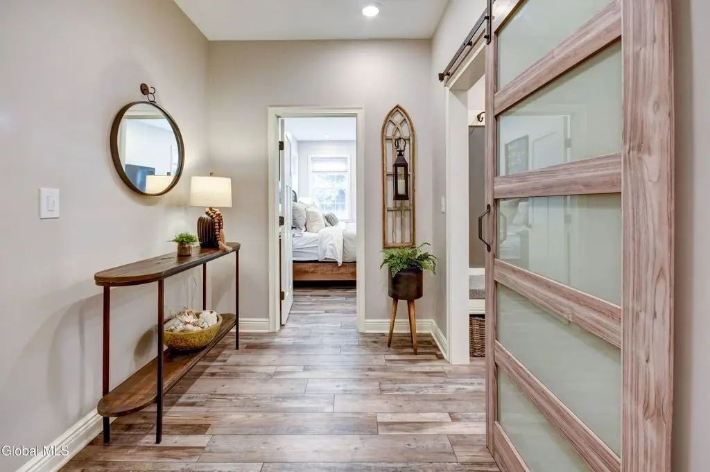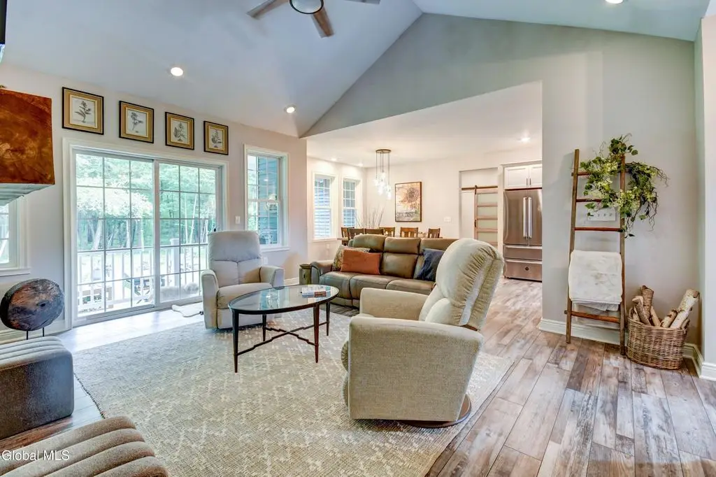 Set on 1.5 private acres in the Guilderland School District, this 1,800 sq ft 3-bed, 2-bath custom Craftsman-style ranch offers comfort and space in a serene setting. A long private driveway leads to a charming one-story home featuring a warm living room with gas-burning fireplace, spacious eat-in kitchen, and generous bedrooms. Enjoy the convenience of public water/sewer and an oversized 2-car garage. Surrounded by trees, yet minutes to shopping, schools, and highwaysC/B?B=this home blends quiet living with everyday access. Love the outdoors look no further, while staying close to home. Featuring beautiful wildlife & nature just outside your windows. a Complete wooded surrounding, A gardeners dream, driving an abundance of beauty & nature in your home Environment. ft. Perennial Garden & ...
