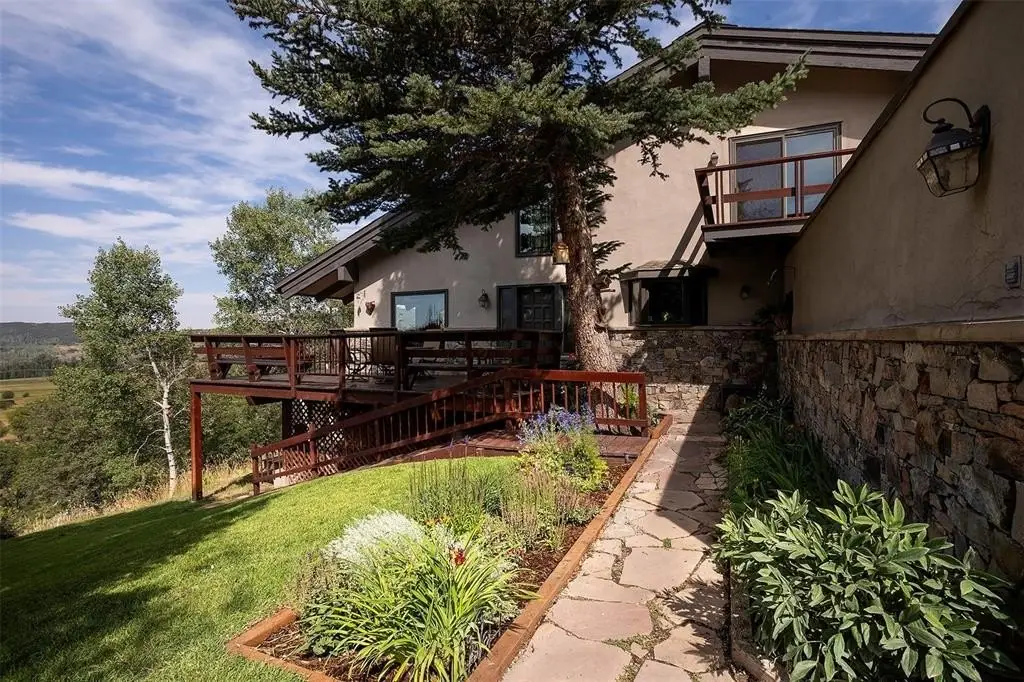 Strawberry Park Chalet – Iconic Steamboat Lifestyle in a Premier Setting. Enjoy living in the enchantment of Strawberry Park - one of Steamboat’s most coveted neighborhoods—where seclusion, tranquility, and natural beauty meet unmatched convenience. Just seven minutes from downtown, this serene retreat feels worlds away as the paved road winds past pastoral ranchlands to your private 1.48-acre haven above the valley floor. This four bed, four bath, 3,380 square foot chalet-style home captures breathtaking mountain vistas through expansive picture windows in the living, dining, and kitchen areas. A soaring cathedral ceiling with rough-hewn timbers centers on a floor-to-ceiling, two-way moss rock fireplace that warms both living and dining rooms. The spacious kitchen features a large island, newer appliances, and a smart layout for effortless cooking and entertaining. The main level also offers an office/sunroom, guest bedroom, full bath, laundry, and mudroom to the two-car garage. Upstairs, the primary suite boasts three large picture windows with spectacular views, and an ensuite bath, joined by another guest suite with private deck. The lower level includes a den with gas fireplace, fourth bedroom, bath, and a deck with hot tub. Enjoy al fresco dining and stargazing from the front deck or retreat to the shaded backyard patio with a cascading waterfall and built-in firepit. For adventure, a quick left turn from the driveway leads to the Continental Divide and Buffalo Pass - renowned for some of Colorado’s deepest snow and world-class recreation: snowmobiling, backcountry skiing, and snowshoeing in winter; mountain biking, hiking, fishing, and horseback riding in summer; and a blaze of golden aspens each fall. Whether it’s sunrise coffee, après-ski relaxation, or the pure peace of Strawberry Park, this home delivers the quintessential Steamboat lifestyle.