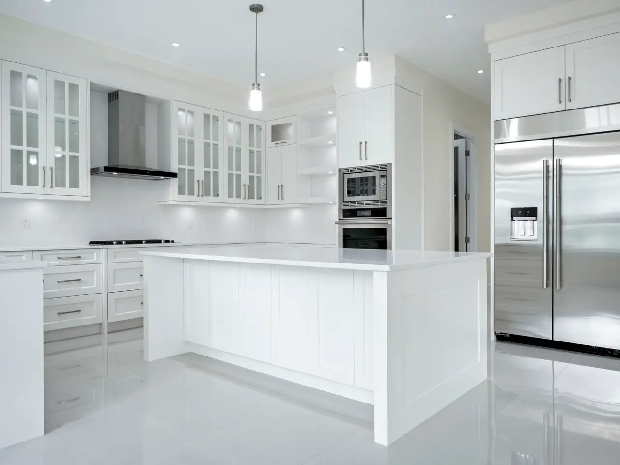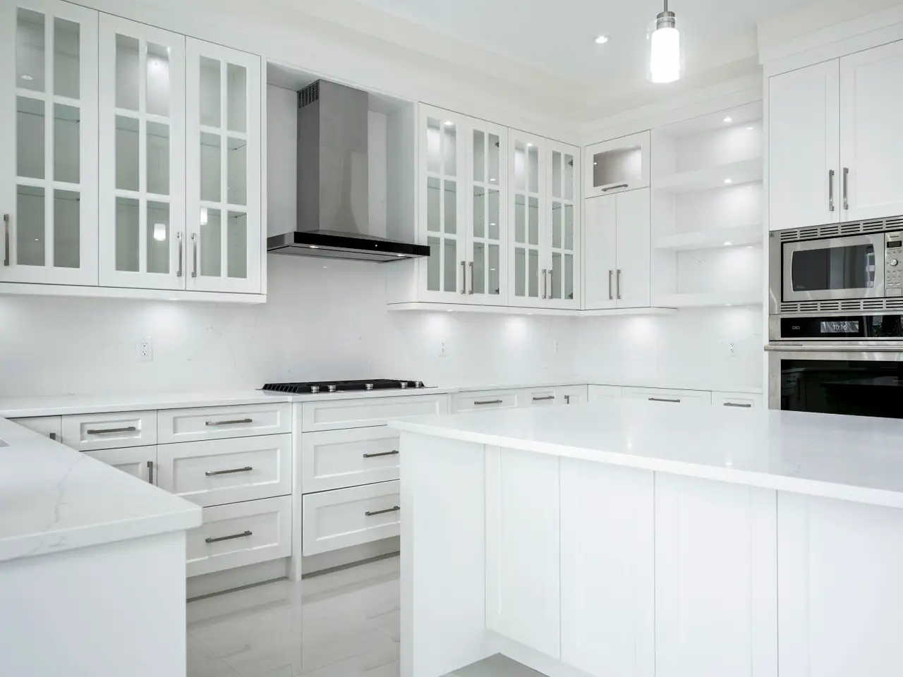 • Central island with stone countertops