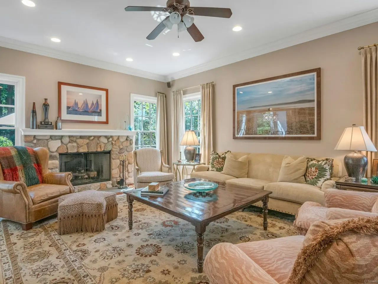 • Stone fireplace