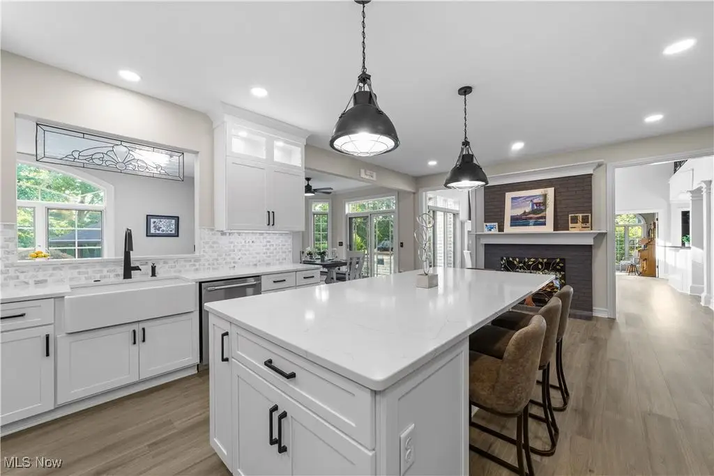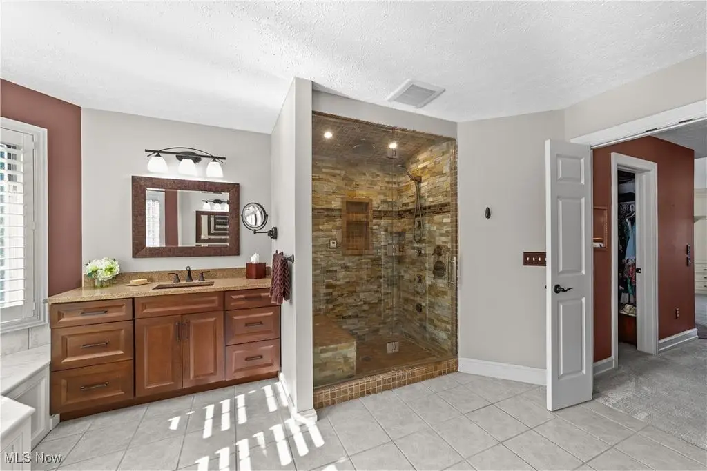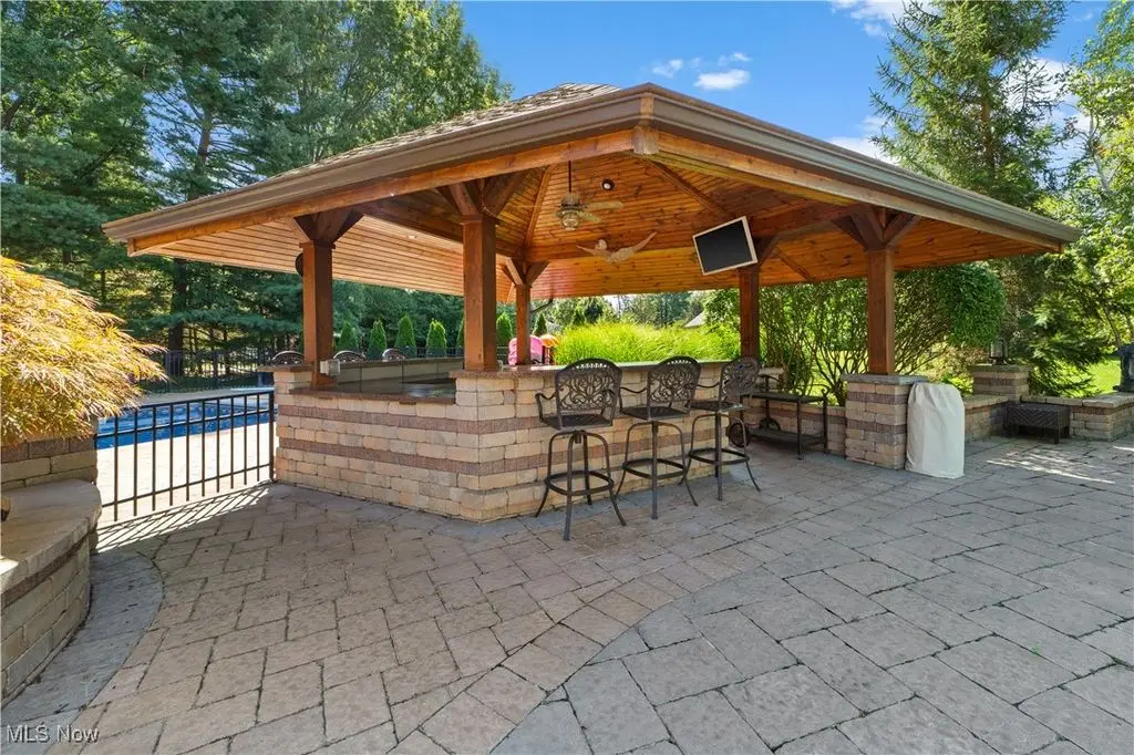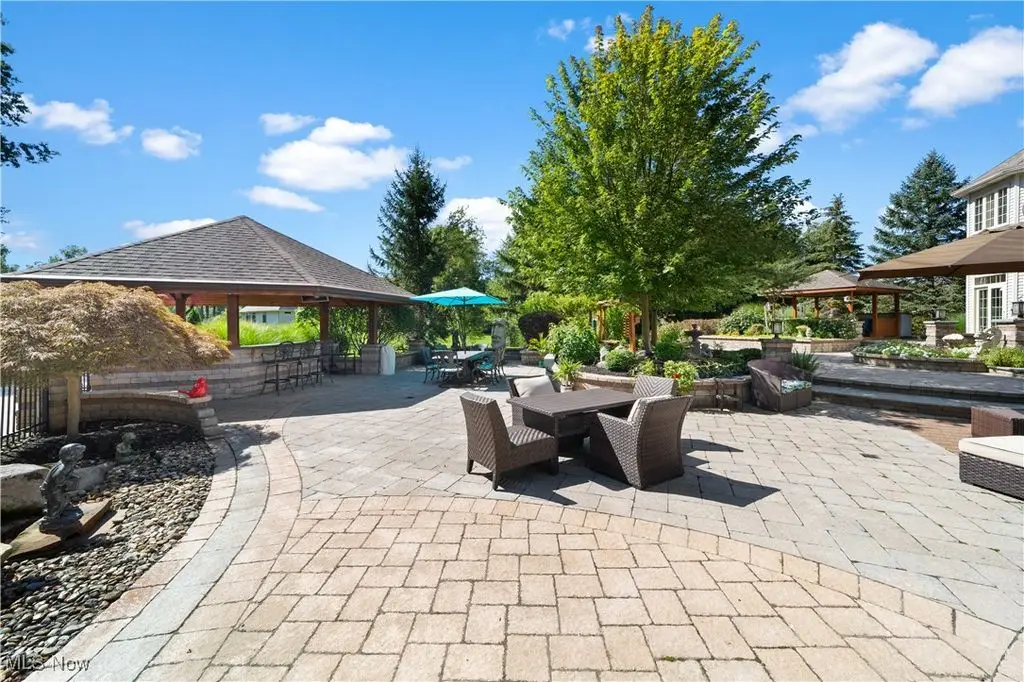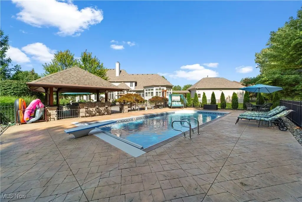 Welcome to a home where grandeur and comfort converge - a private retreat designed for both luxurious living and effortless entertaining. From the moment you enter the soaring marble foyer, every detail reveals an uncompromising commitment to craftsmanship and style. Elegant formal spaces flow seamlessly, including a richly appointed library with fireplace and a versatile dining/billiard room framed by French doors. The heart of the home is the stunning great room and chef's kitchen, where architectural drama meets everyday function. Towering ceilings, abundant natural light, and custom finishes create a space as beautiful as it is welcoming. Premium appliances, a sprawling granite island, and thoughtful touches like a butler's pantry and walk-in pantry make this kitchen a culinary dream. Retreat to the serene primary suite with its fireplace, dual walk-in closets, and spa-inspired bath, while family and guests enjoy spacious bedrooms each with private or shared designer baths. The lower level extends the lifestyle with a recreation room, fitness studio, full bath, and generous storage. Outside, resort living awaits: a sparkling heated pool with automatic cover, full outdoor kitchen with bar, two gazebos - including one with a built-in hot tub - stone patios, fire pit, and lush landscaped gardens with water features. A whole-house generator, integrated security, indoor/outdoor audio, and ample climate-controlled garage space complete this remarkable estate. This is not just a home - it's a lifestyle of elegance, sophistication, and unforgettable moments.