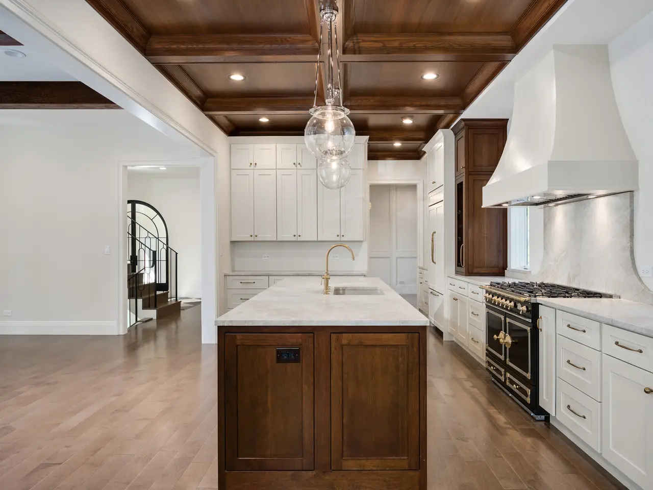 Welcome to 809 Lenox, a impressive 5 bedroom, 4.5 bathroom residence located in the highly sought-after East Glenview neighborhood, home to nationally recognized schools and a vibrant community. This home seamlessly blends timeless craftsmanship with modern luxury. The chef's kitchen is a true showpiece, featuring oak coffered ceilings, a La Cornue range, Perla Venata countertops, dual dishwashers inside of a beautiful oak island, and custom tower cabinets-designed for both everyday living and elegant entertaining. The thoughtful layout continues with expansive living spaces, a covered porch with fireplace and additional paver patio inside of the fully fenced yard, and a 3 car garage. The lower level is built for gatherings with a full bar and ample room for recreation. Upstairs, 4 spacious bedrooms provide comfort and privacy, notably in the luxurious primary suite retreat. 809 Lenox offers not only a prestigious east Glenview address but also unmatched amenities for today's lifestyle. The design team's intent is present throughout - from the custom steel work, to color palette, shape and so much more. This is more than a home - it's an experience in refined living.