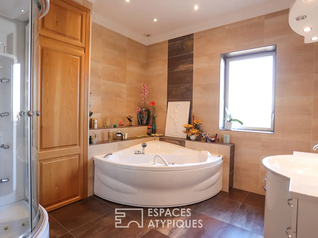 In a dynamic village at the gates of Macon, close to shops, motorways and the TGV, this sumptuous air-conditioned residence with a surface area of approximately 275sqm, seduces with its architecture inspired by Mediterranean country houses and haciendas.Nestled in a carefully landscaped green setting of almost 6000sqm with swimming pool, it offers an exceptional living environment, where luxury and the art of living come together in perfect harmony.From the entrance, the atmosphere is striking: generous volumes, omnipresent light, noble materials, and impeccable finishes give this property a rare presence. A beautiful, sober and elegant semi-open kitchen, with access to its terrace, connects a vast and bright living room, perfectly oriented, with a majestic fireplace and large openings to the outside and a lounge / billiard room for truly convivial moments.The sleeping area consists of four large bedrooms offering absolute comfort, including a sumptuous master suite with dressing room and private bathroom. An office can also offer an additional bedroom.The exterior is an invitation to idleness and relaxation, evoking the most beautiful properties in the South of France by offering a vast landscaped plot, where elegance and the sweetness of life blend together.A sparkling swimming pool, accompanied by its refined pool house, designed to prolong moments of pleasure under a beautiful shaded terrace, will be perfect for savoring the moment in a soothing and exclusive setting.Several garages and other additional spaces complete this unique place, designed for a family looking for a high-end property, both refined and warm.ENERGY CLASS: C / CLIMATE CLASS A: . Average energy prices indexed for the years 2021, 2022, 2023 (subscriptions included): between EUR2,550 and EUR3,500. Information on the risks to which this property is exposed is available on the Georisques website for the areas concerned.Jean-Charles BUATOIS, 06.27.47.49.38. Commercial agent (EI), 911 278 737 RSAC. Bourg en Bresse.REF. 779EBAdditional information* 10 rooms* 4 bedrooms* 1 bathroom* 1 bathroom* Outdoor space : 5911 SQM* Property tax : 1 685 €Energy Performance CertificatePrimary energy consumptionc : 115 kWh/m2.yearHigh performance housing*A*B*115kWh/m2.year3*kg CO2/m2.yearC*D*E*F*GExtremely poor housing performance* Of which greenhouse gas emissionsa : 3 kg CO2/m2.yearLow CO2 emissions*3kg CO2/m2.yearA*B*C*D*E*F*GVery high CO2 emissionsEstimated average annual energy costs for standard use, indexed to specific years 2021, 2022, 2023 : between 2550 € and 3500 € Subscription IncludedAgency feesThe fees include VAT and are payable by the vendorMediatorMediation Franchise-Consommateurswww.mediation-franchise.com29 Boulevard de Courcelles 75008 ParisInformation on the risks to which this property is exposed is available on the Geohazards website : www.georisques.gouv.fr