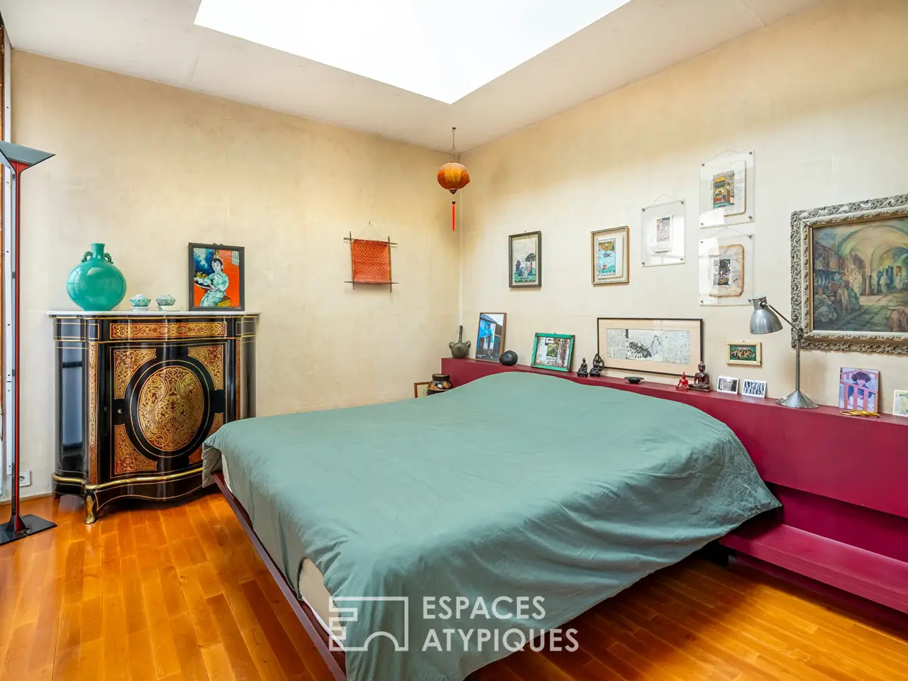 Ideally located in Les Lilas, set back from the street and in a quiet setting, this 136.28 m2 (Carrez law) loft boasts a 53 m2 (580 sq ft) rooftop, a monumental glass roof, and generous volumes.The entrance on the second and top floor leads to a vast 65 m2 (680 sq ft) living room topped by a large 4.65-meter (15 ft) skylight. This pleasantly distributes constant light throughout the space, while ensuring no overlooked views. The entire space is organized into several areas, including the dining room, the living room, and a reading nook. The 11 m2 (128 sq ft) kitchen, semi-open to the living room, features a pantry and a laundry area.Two bedrooms, measuring 15 m2 (170 sq ft) and 18 m2 (188 sq ft) respectively, a bathroom with a shower, and a separate toilet complete this level.Accessible via a spiral staircase, the 53 m2 rooftop offers a sky view and overlooks the living space through the glass roof.The ideal location, tranquility, and generous space make this loft a unique living space in the area.Metro line 11: Maire des Lilas and Serge Gainsbourg are 400 meters away.REF. 11878Additional information* 4 rooms* 2 bedrooms* 1 bathroom* Outdoor spaces : 53 SQM* 8 co-ownership lots* Annual co-ownership fees : 1 451 €* Property tax : 2 192 €* Proceeding : NonEnergy Performance CertificatePrimary energy consumptiond : 231 kWh/m2.yearHigh performance housing*A*B*C*231kWh/m2.year47*kg CO2/m2.yearD*E*F*GExtremely poor housing performance* Of which greenhouse gas emissionsd : 47 kg CO2/m2.yearLow CO2 emissions*A*B*C*47kg CO2/m2.yearD*E*F*GVery high CO2 emissionsEstimated average annual energy costs for standard use, indexed to specific years 2021, 2022, 2023 : between 2780 € and 3800 € Subscription IncludedAgency feesThe fees include VAT and are payable by the vendorMediatorMediation Franchise-Consommateurswww.mediation-franchise.com29 Boulevard de Courcelles 75008 ParisInformation on the risks to which this property is exposed is available on the Geohazards website : www.georisques.gouv.fr