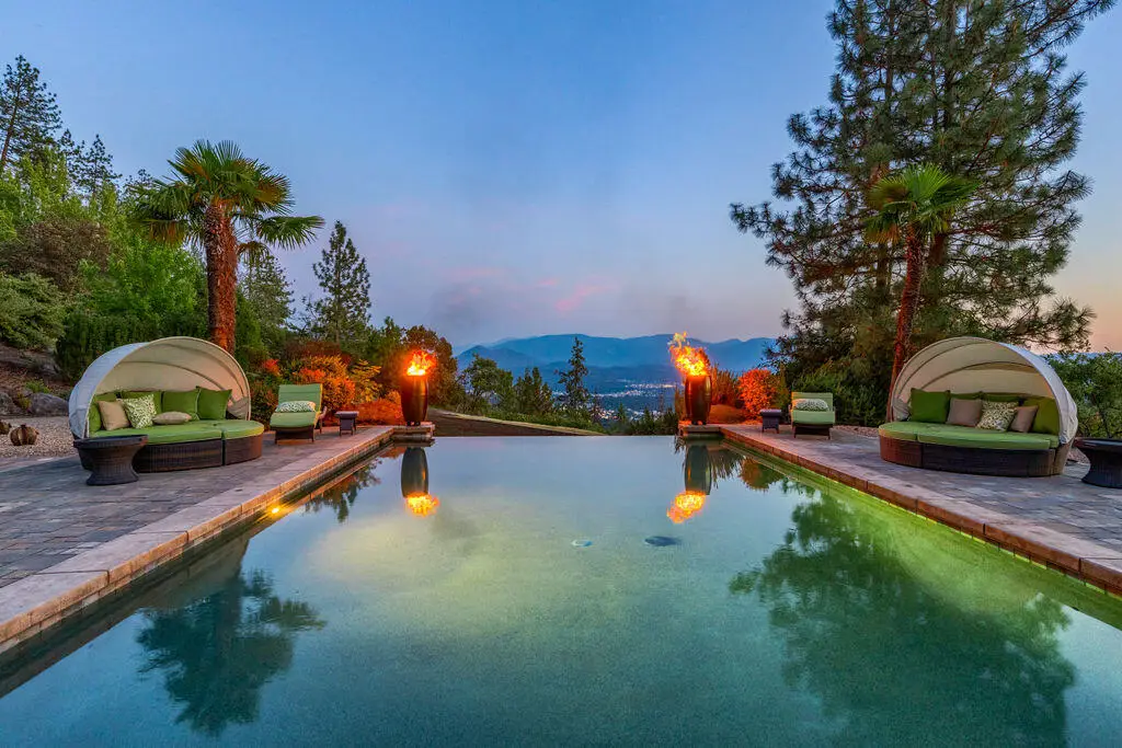 Welcome to Granite Hills Estate. Truly exceptional property. 20 Acres back to BLM & County land, Paved driveway w/gated entry, water feature & year-round spring fed pond w/a dock & Bass fishing. Gorgeous landscaping w/ lighted pathways. 4 Bdrm, 4 bath, Office/Library w/built-ins, 6400 SQ Ft, 3 Car Garage w/Portico. Grand entry, lg vaulted ceilings, floor to ceiling windows to take in the stunning views of Mts & City lights. Lg kitchen w/island, main floor primary suite w/spa like bath, door to private deck w/hot tub w/skylight & views. Good size bdrms, lg pantry. Downstairs w/10' ceilings, French Doors to covered patios, lg family rm w/fireplace, lg bar & entertaining area w/mini kitchen, Guest quarters w/kitchenette, bedroom, living rm & door to patio. Infinity Pebble Tec heated pool, lg pavers patio w/Gazebo & fire torches. 5600 SQ FT detached Shop w/RV storage w/dump, water & electricity, office space, 1/2 bath, 4 Car carport. Country living close to town!