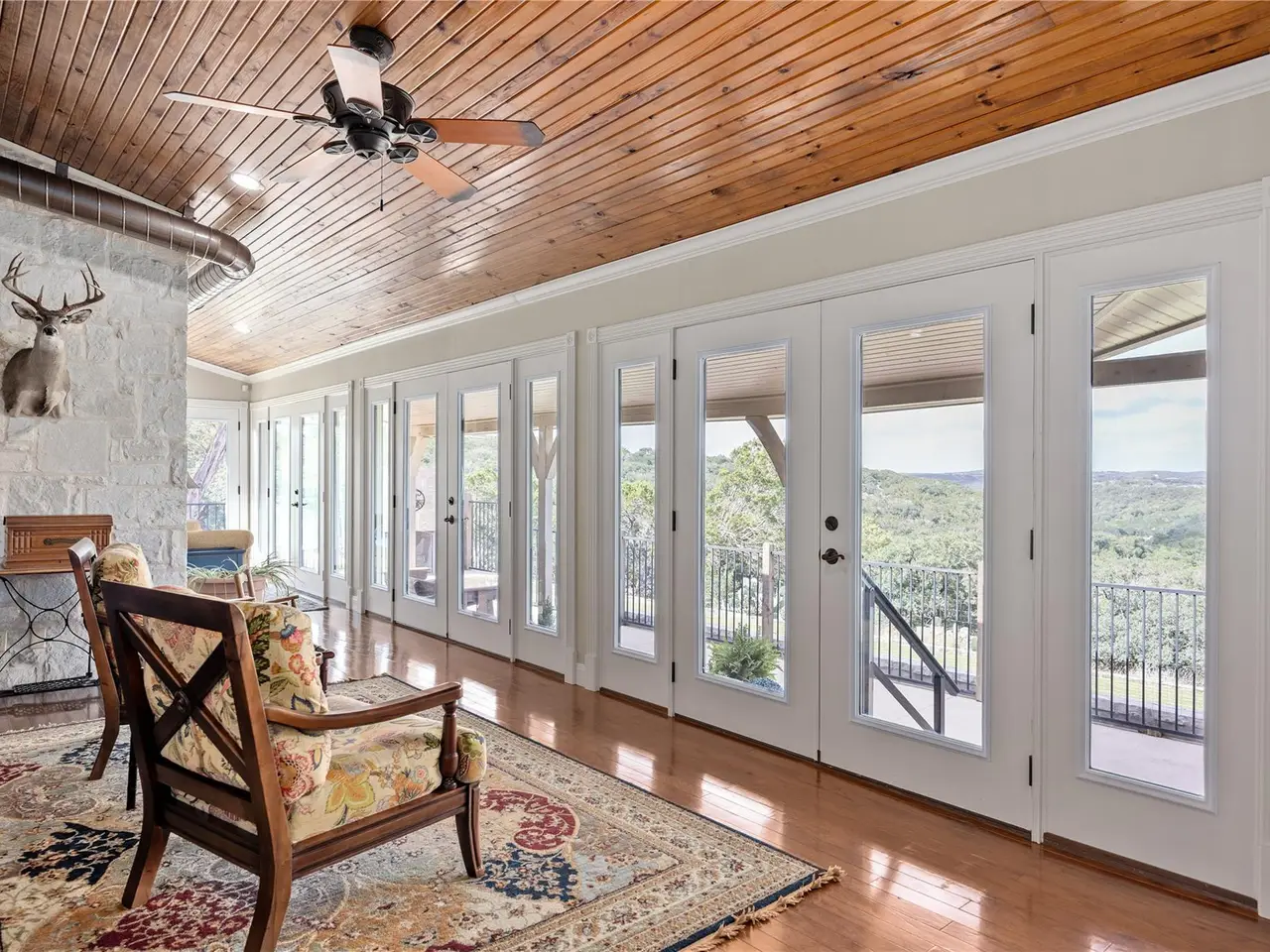 Enjoy peaceful privacy with panoramic views at this beautiful two-story rock home on 6+ acres in Cave Canyon Springs, Hunt. With an open living floor plan, stone fireplace, high ceilings this home features 4 bedrooms and 3 and a half baths. The second floors features a flex space that could be a media room, office/ study or guest suite with tons of storage. Enjoy stunning valley views from the covered porches, an outdoor fireplace, a large climate-controlled shop, and a charming cottage currently used as an exercise room. Neighborhood amenities include private gated access to one of the most beautiful and scenic sections of the Guadalupe River, as well as a private 96-acre Wilderness Park for hiking. Come see this high-quality, beautiful home. Just bring your furniture and start enjoying the relaxing tranquility of the Hill Country.