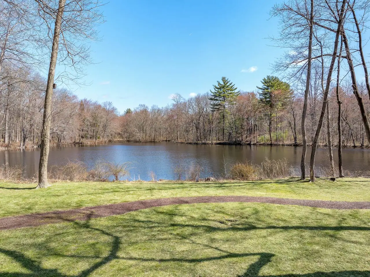 Breathtaking lake, waterfall and nature views enhance this architecturally stunning, sundrenched Colonial with unrivaled amenities on 19.69 private acres-best location in Conyers Farm. On the market for the 1st time, this custom designed home by architect Robert Lamb Hart takes full advantage of the beautiful setting with walls of windows overlooking the lake in a stunning open floor plan. Easy access to 55' pool, in-ground spa, outdoor kitchen, fireplace, 2-bath pool house, tennis court and 125-yard par 3 golf hole. Showcases expansive living room, dramatic 2-story family room open to striking 15' high kitchen and breakfast room, wood-clad office, 6 bedrooms, plus 1-bedroom apartment with office and private entrance, lower level with practice squash court, gym, rec room, 24-hour security.